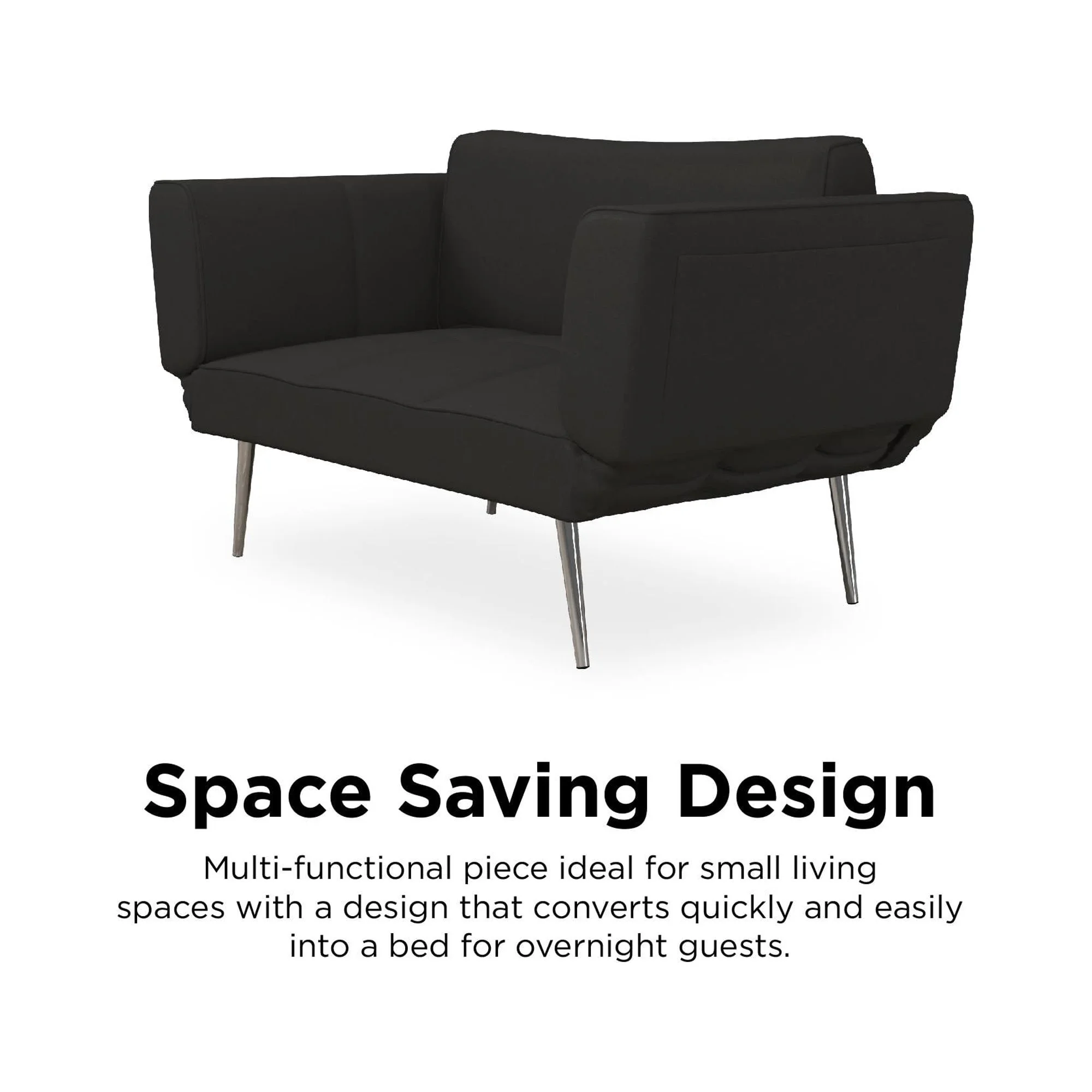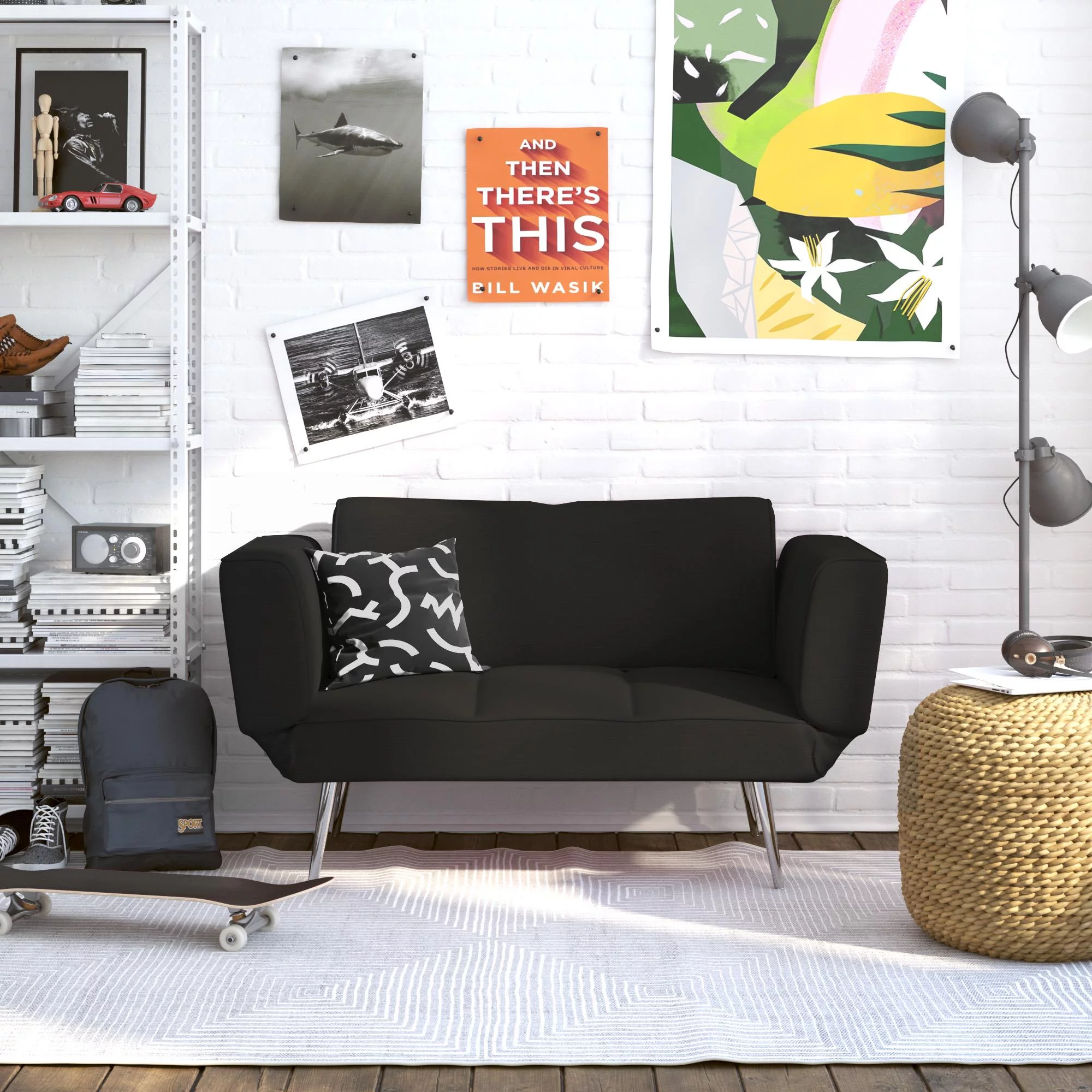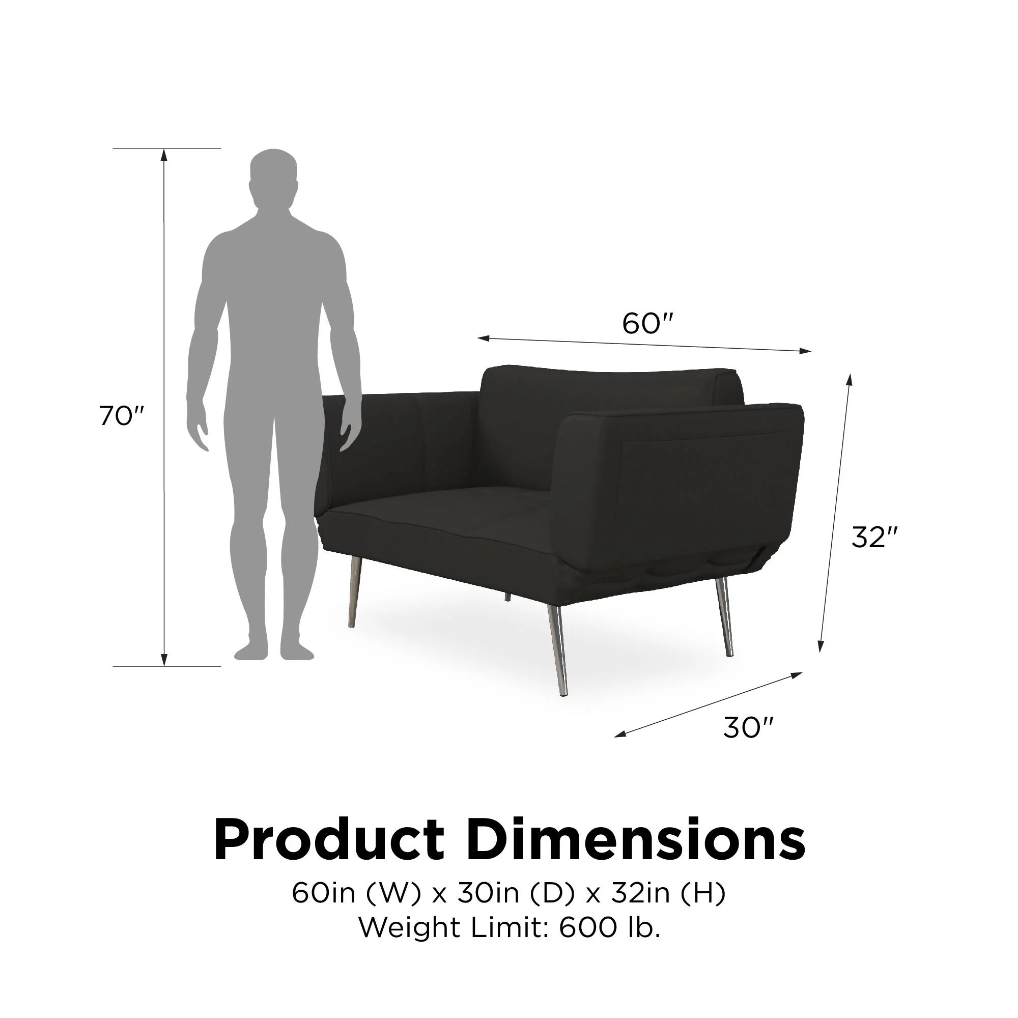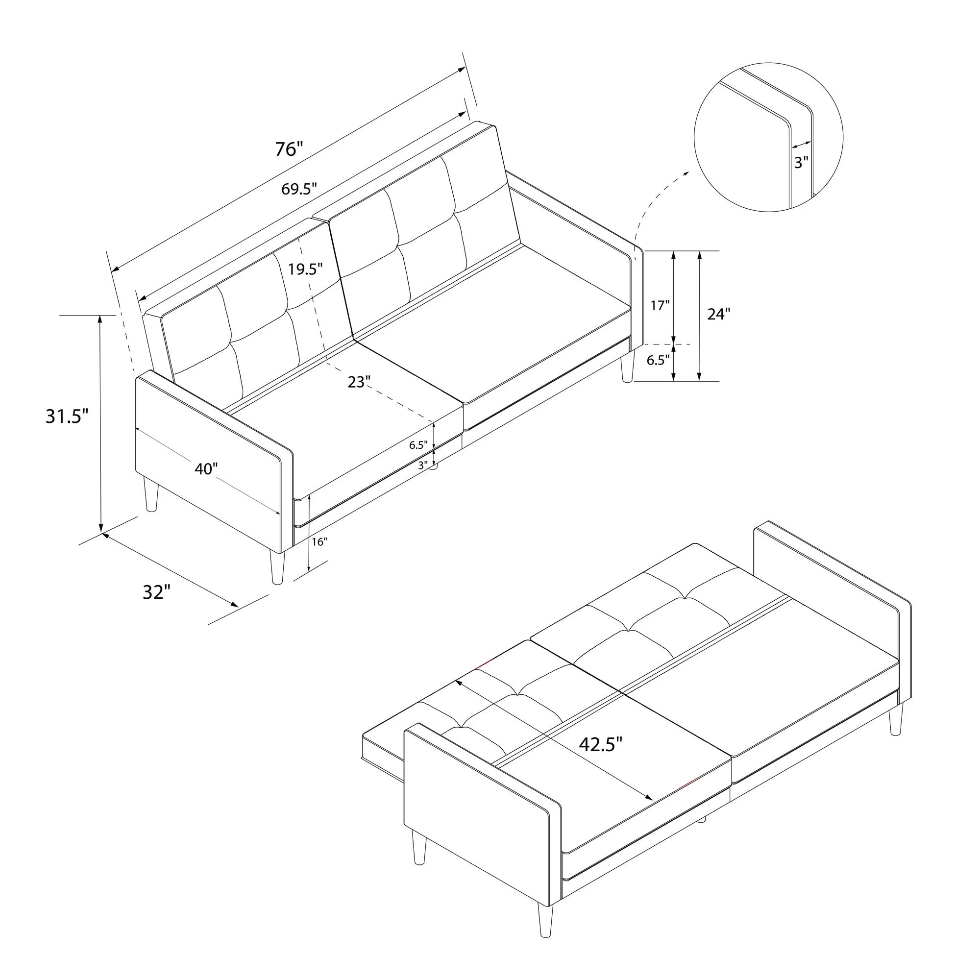 Naomi Home Convertible Tufted Split Back Futon Sofa-Color:Black,Fabric:Faux Leather