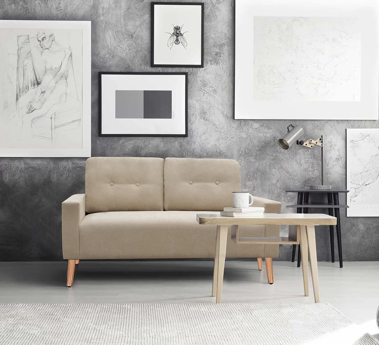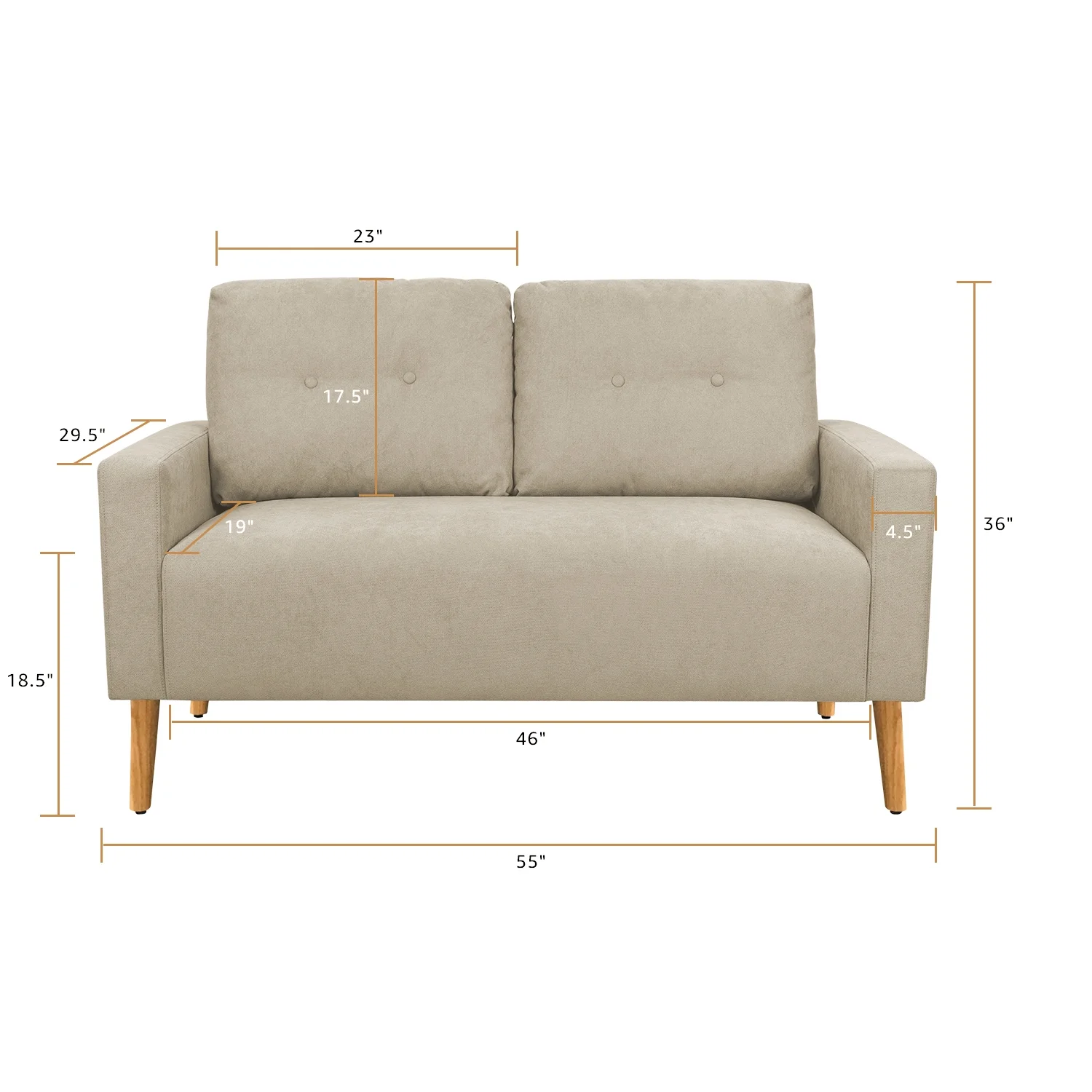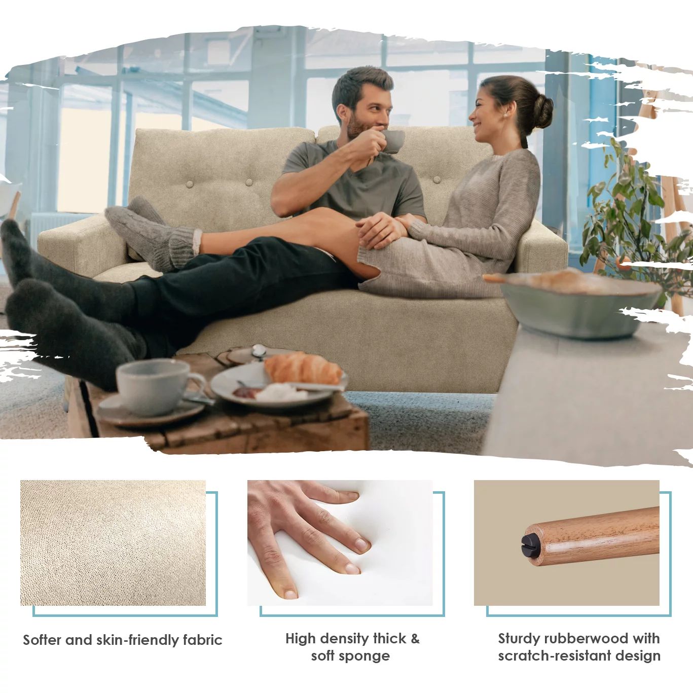 Lacoo Mid-Century Loveseat Sleeper Button Tufted 2 Seater Sofa, Beige Fabric