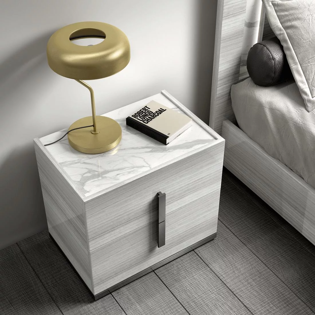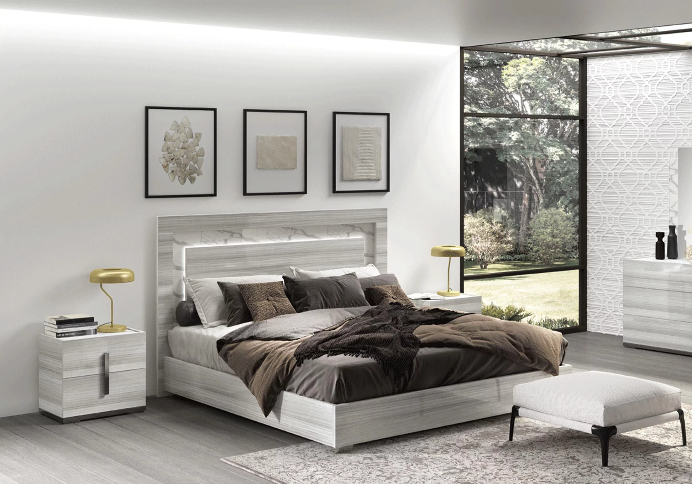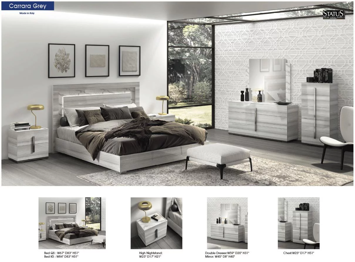Glossy Gray King Bed Set 3Pcs w/ LED Headboard CARRARA ESF Modern MADE IN ITALY