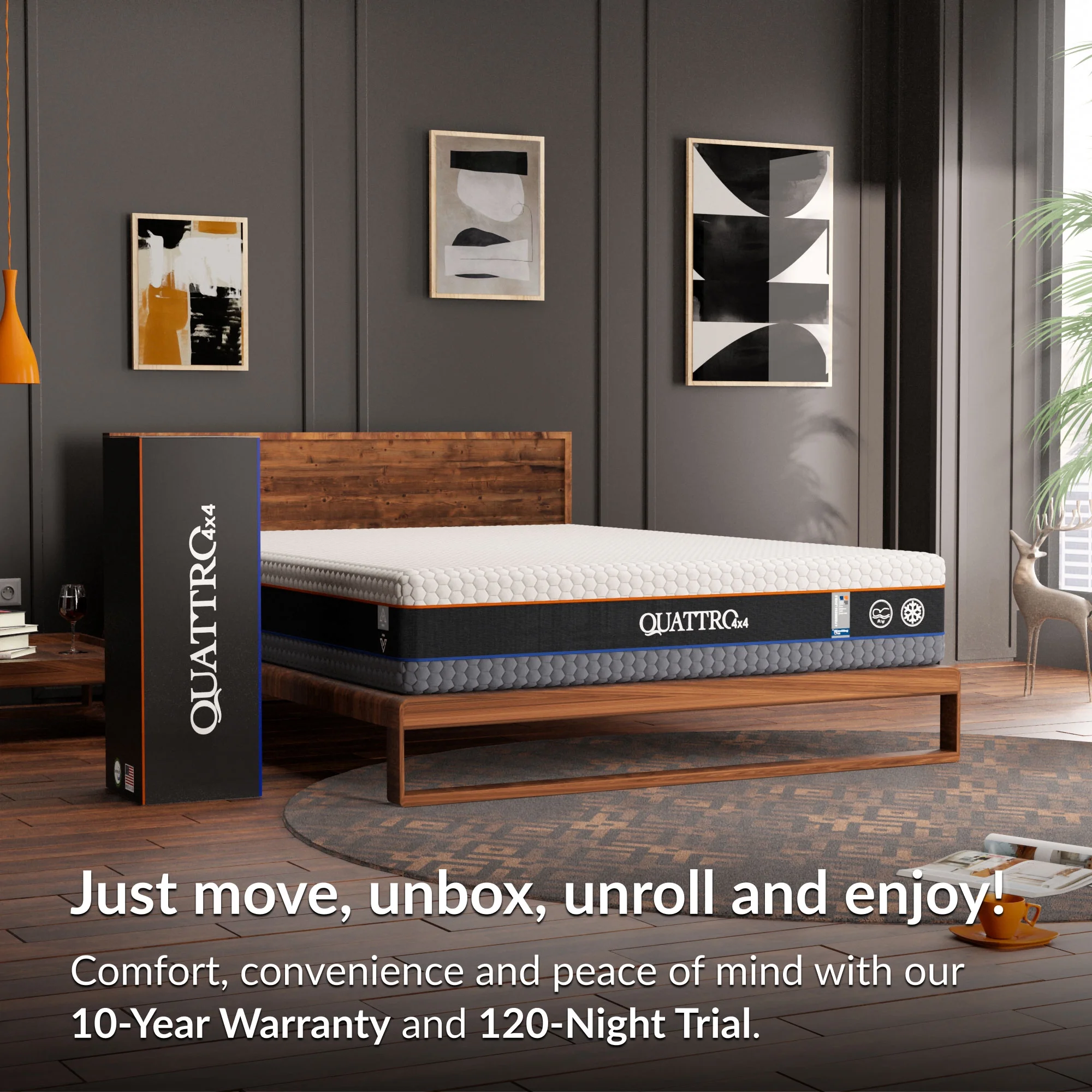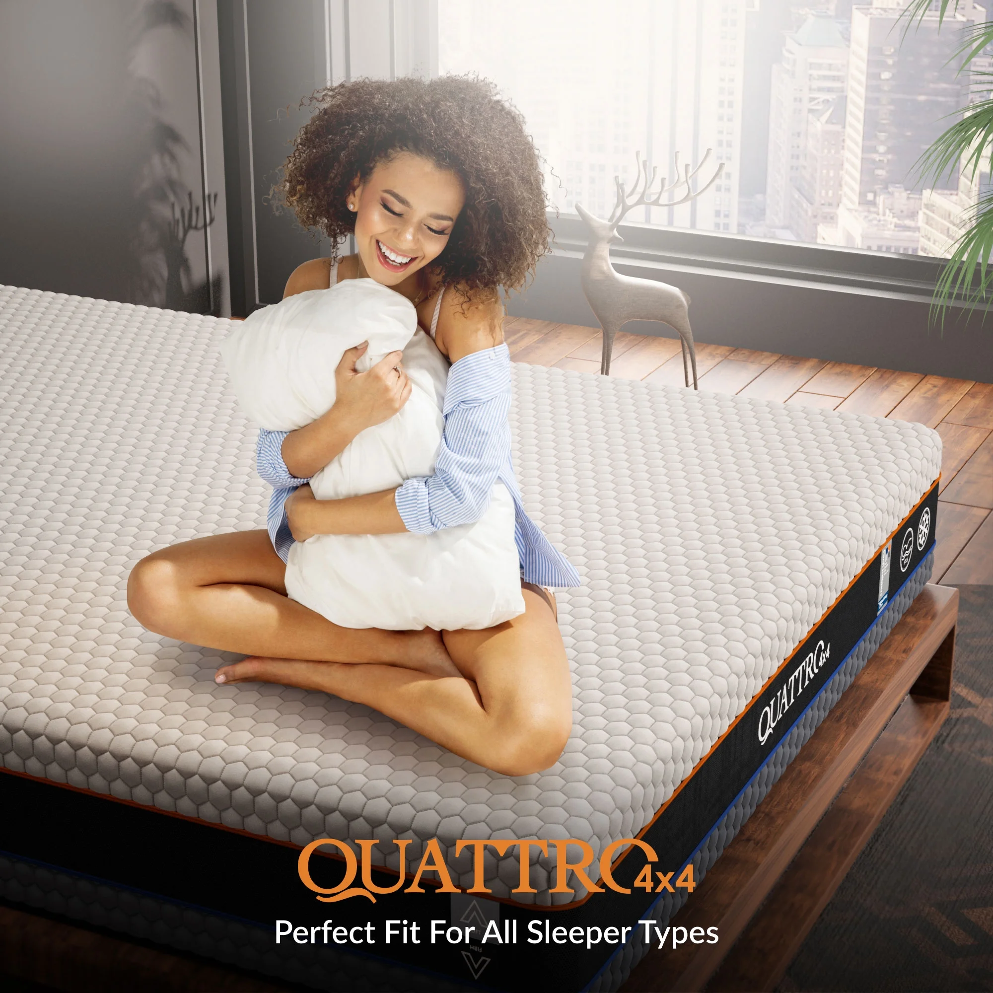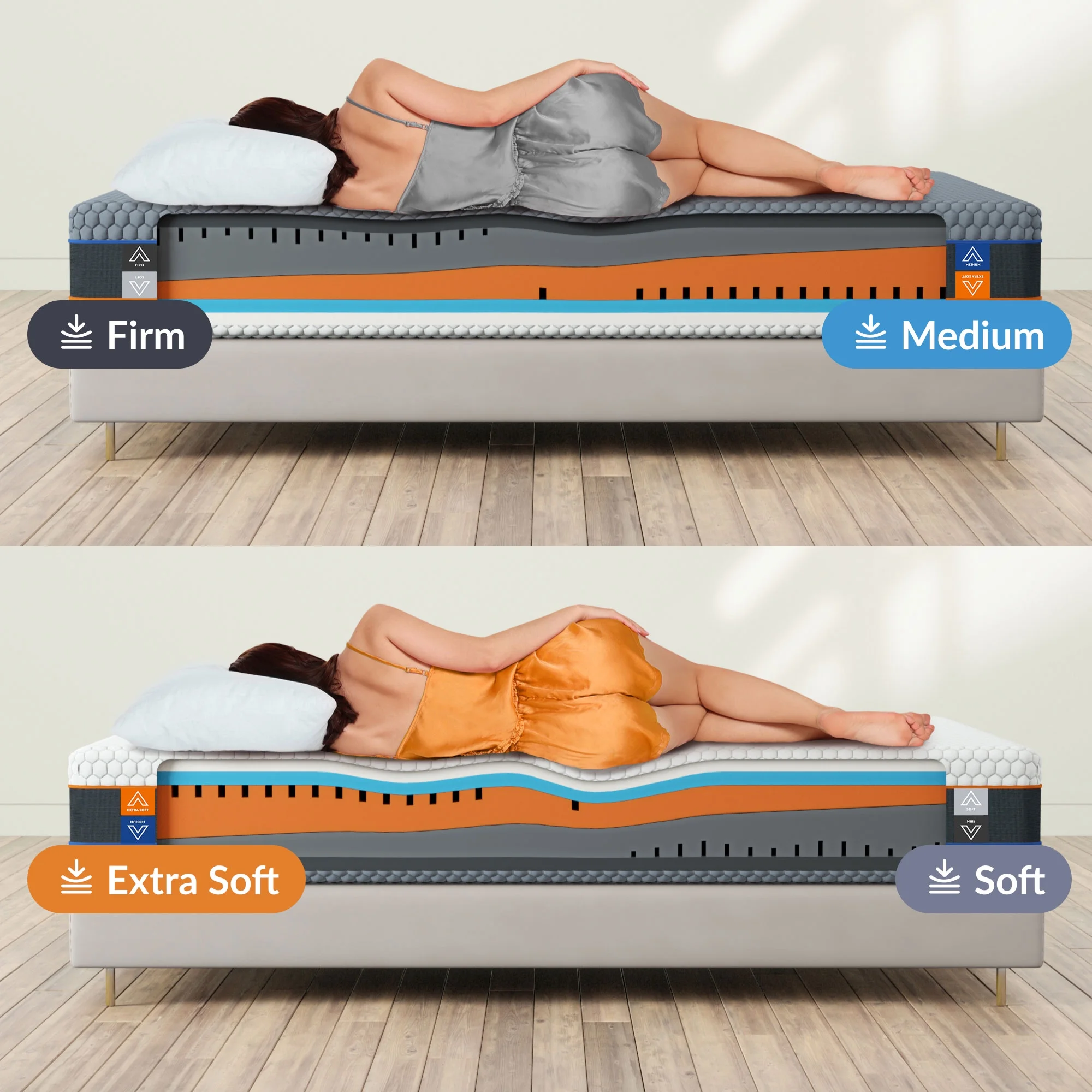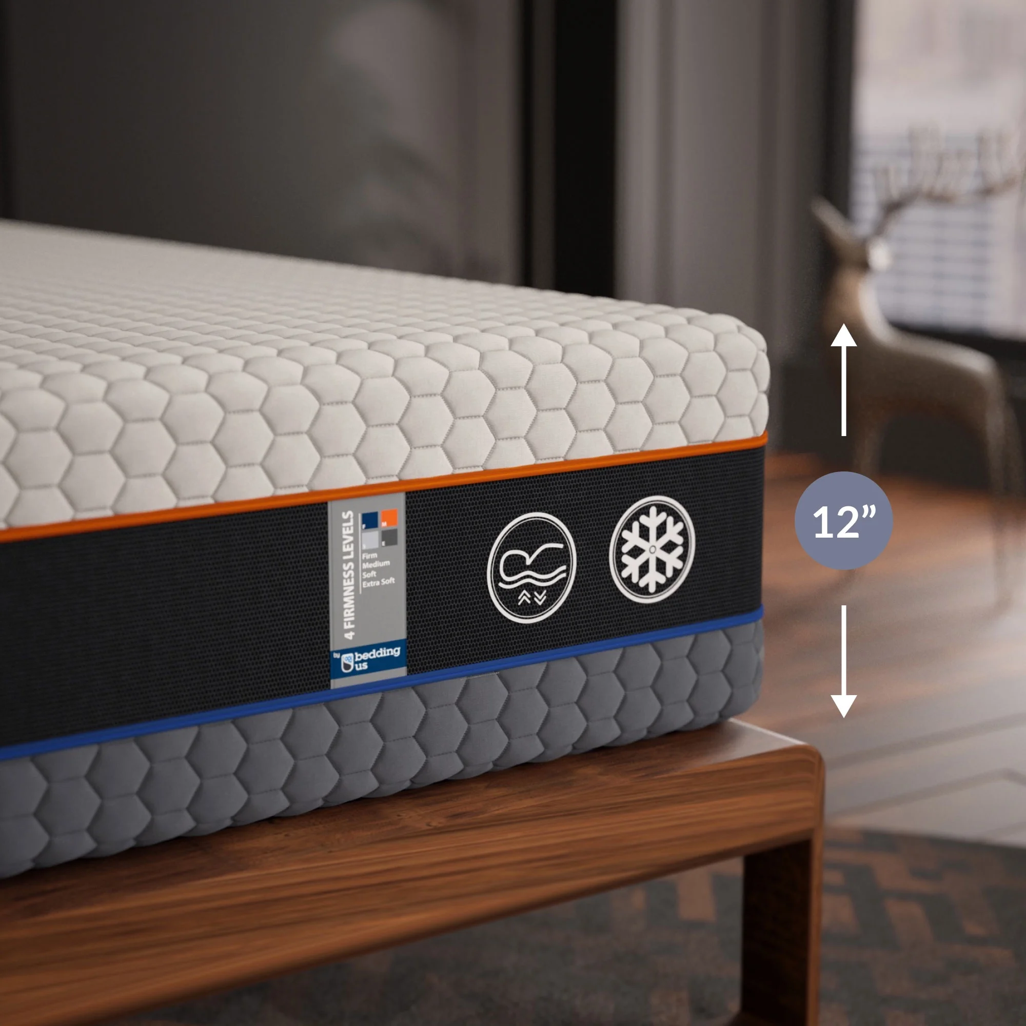 Quattro 4x4 Flippable Mattress 12 Inch|Adjustable Firmness |Cool Gel Memory Foam |Fits All Sleeper Types | Double-Sided | King