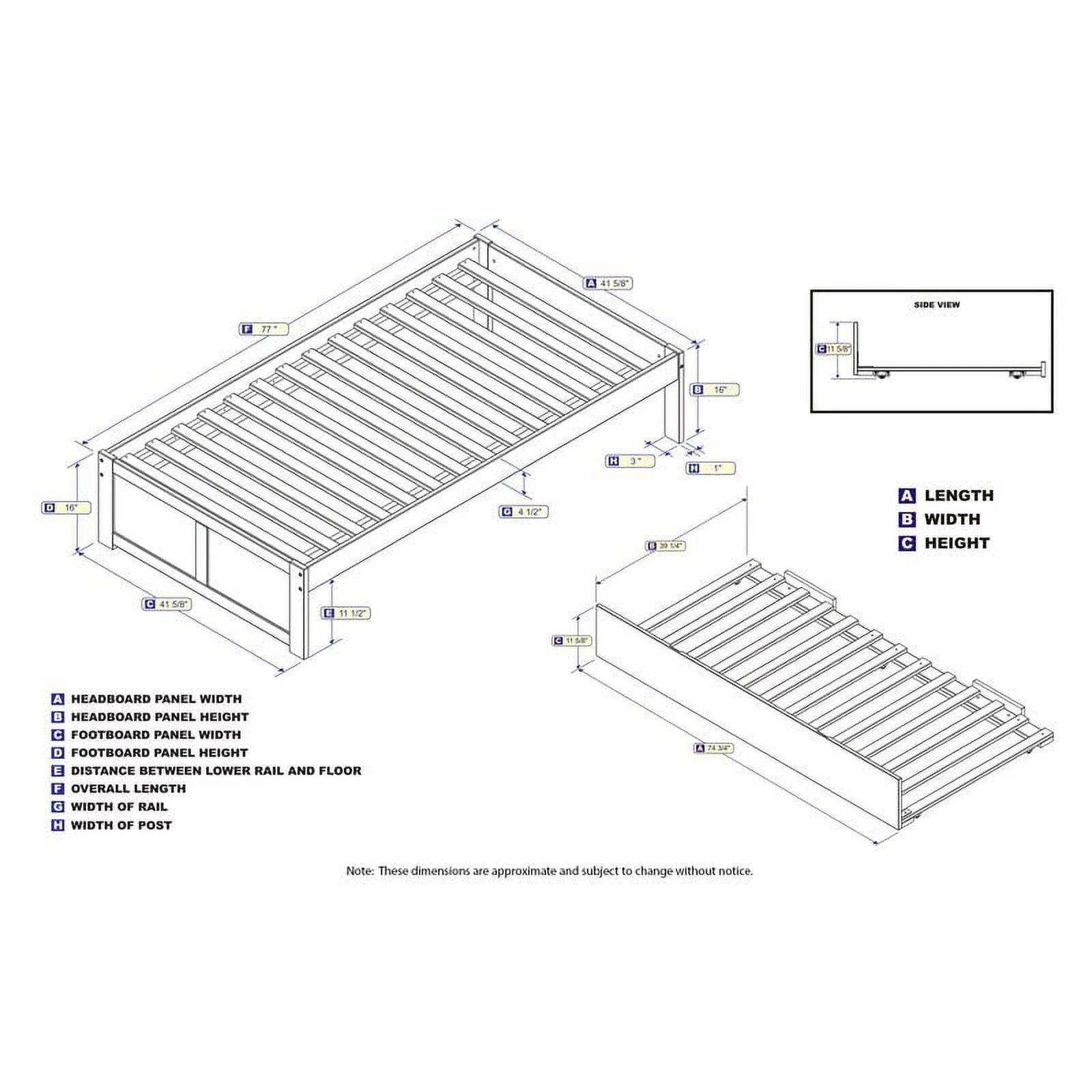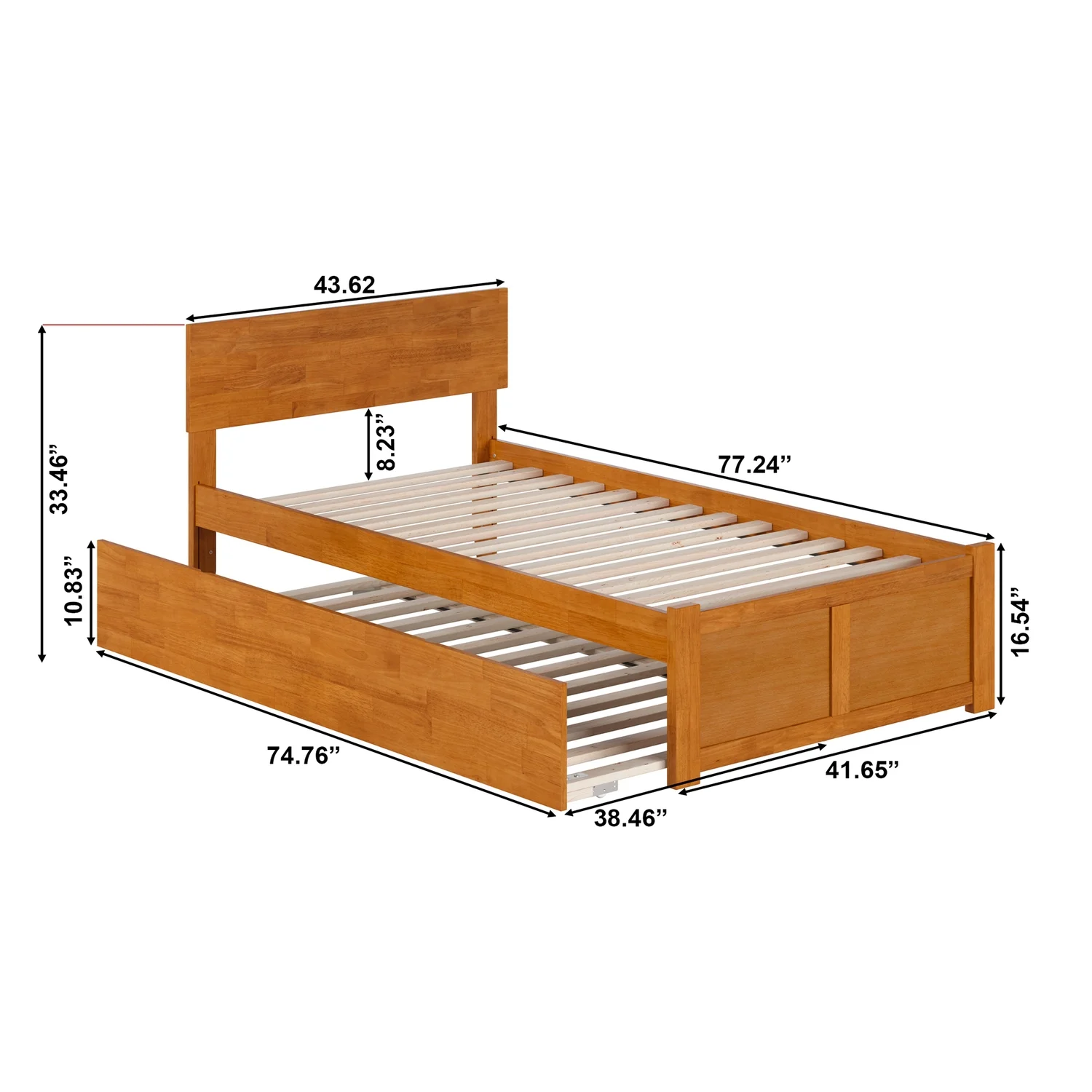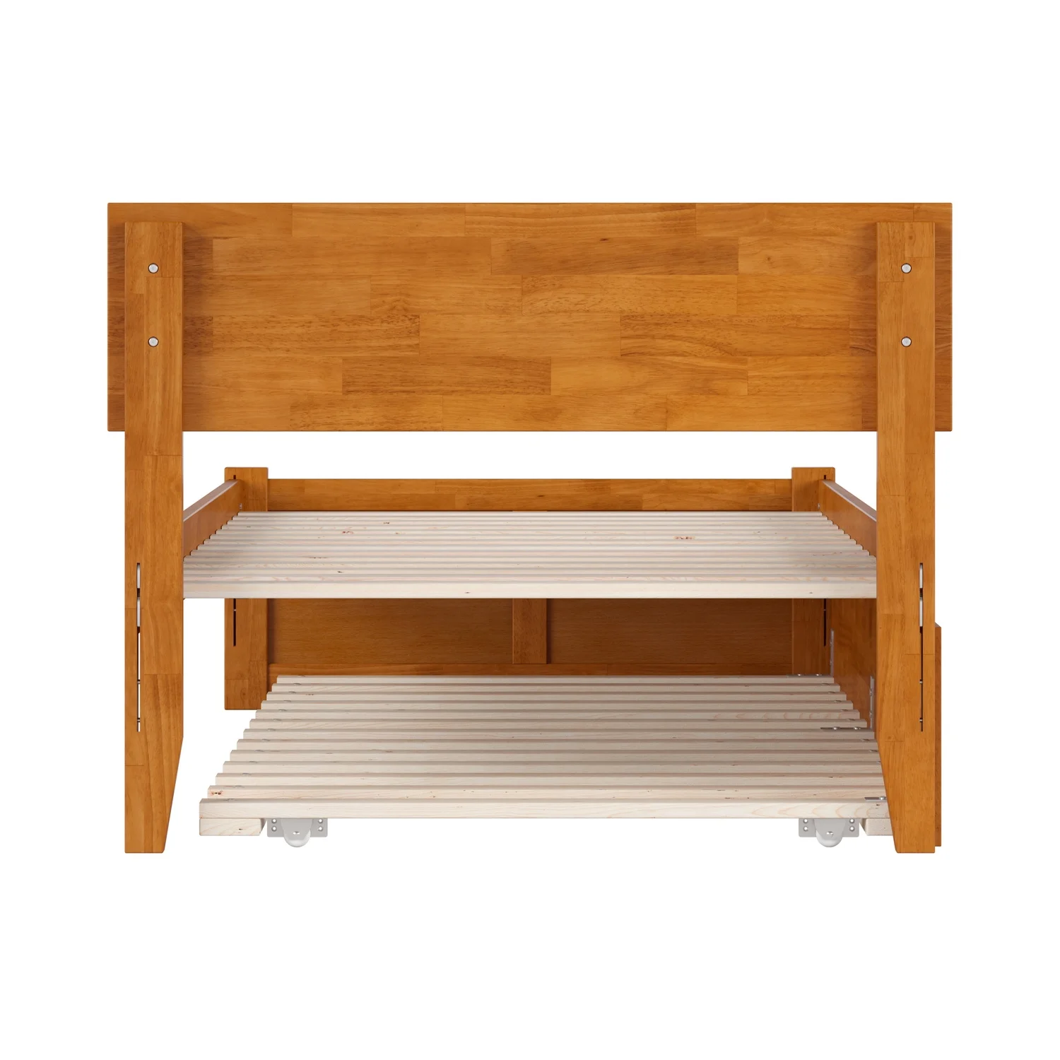 Orlando Twin Wood Platform Bed with Footboard and Twin Trundle in Light Toffee