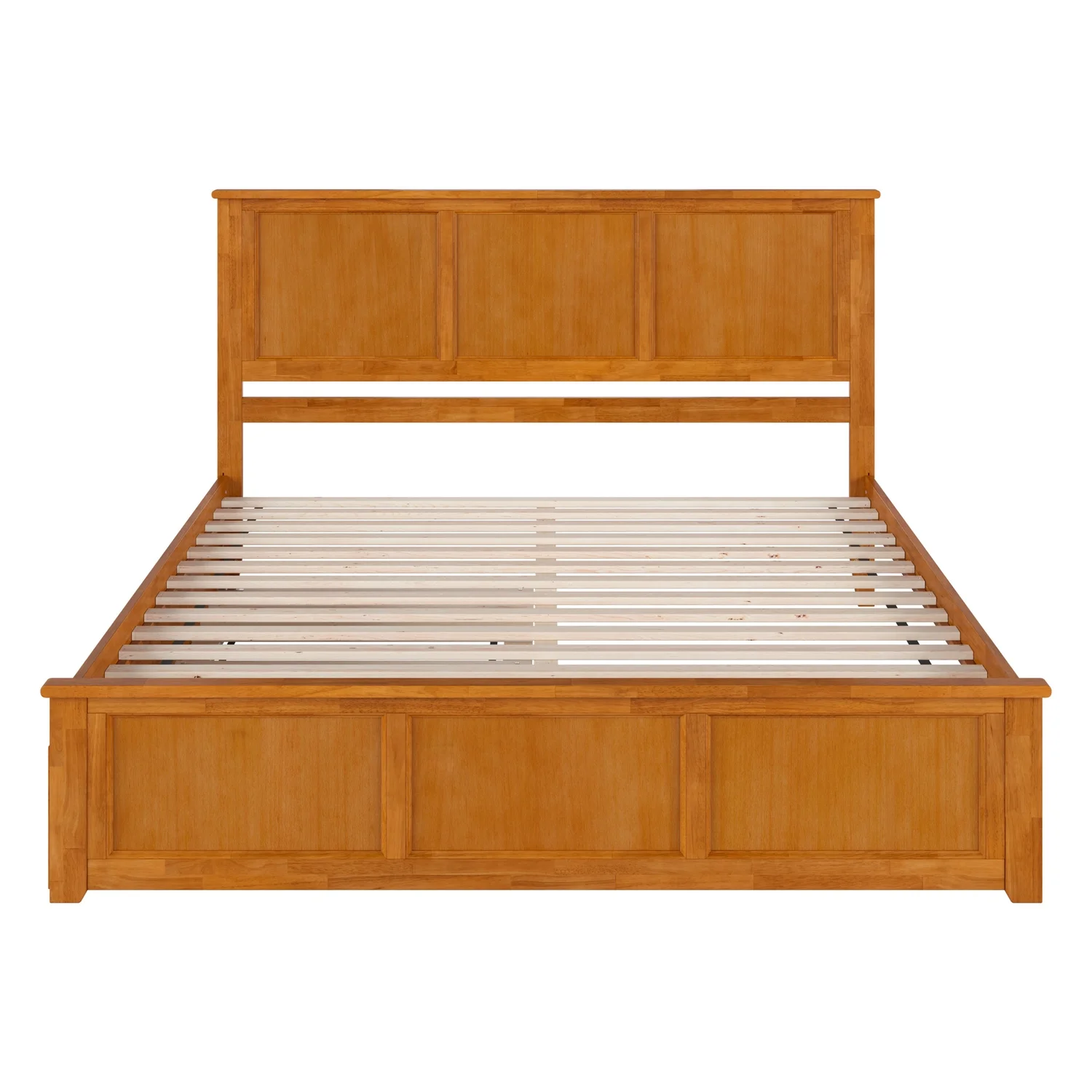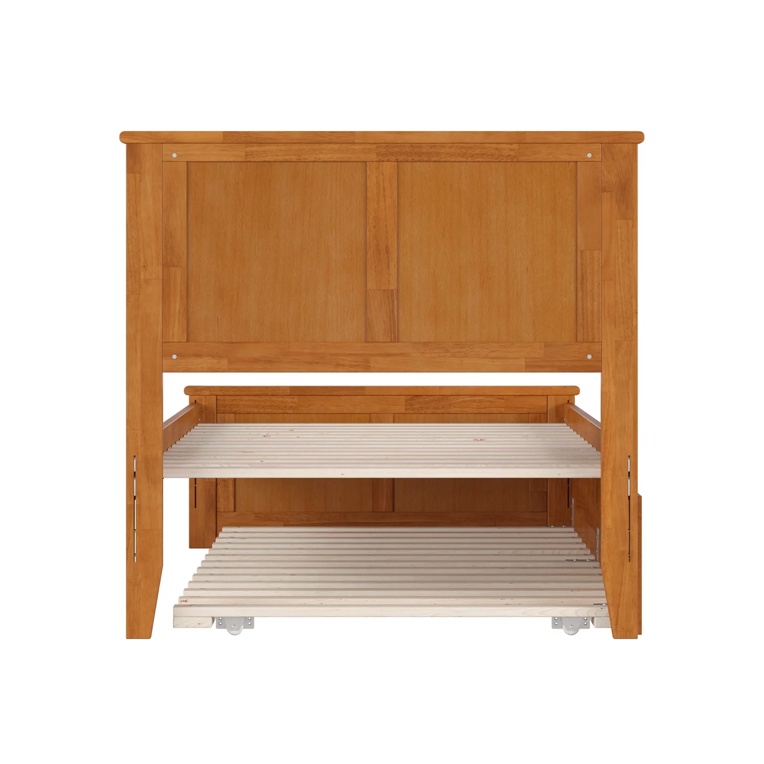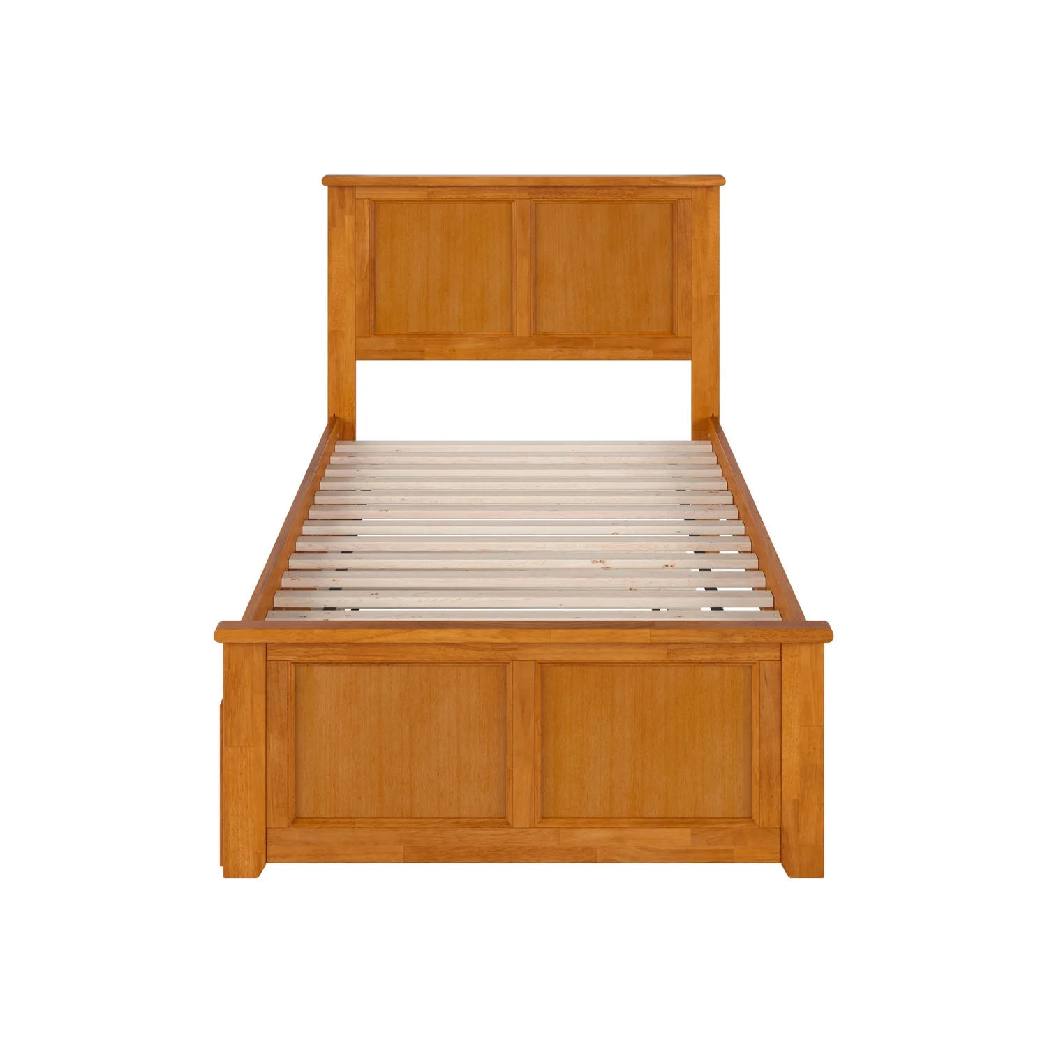Madison Twin Wood Platform Bed with Footboard and Twin Trundle in Light Toffee