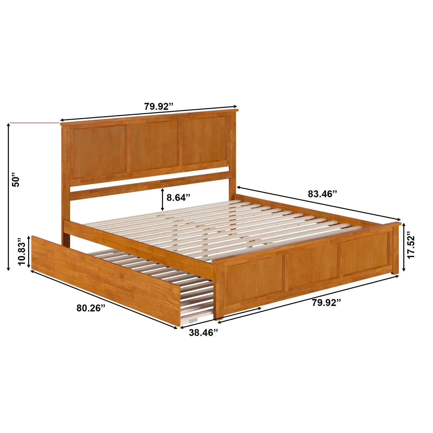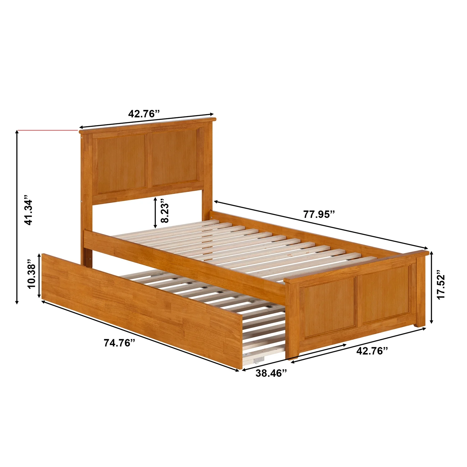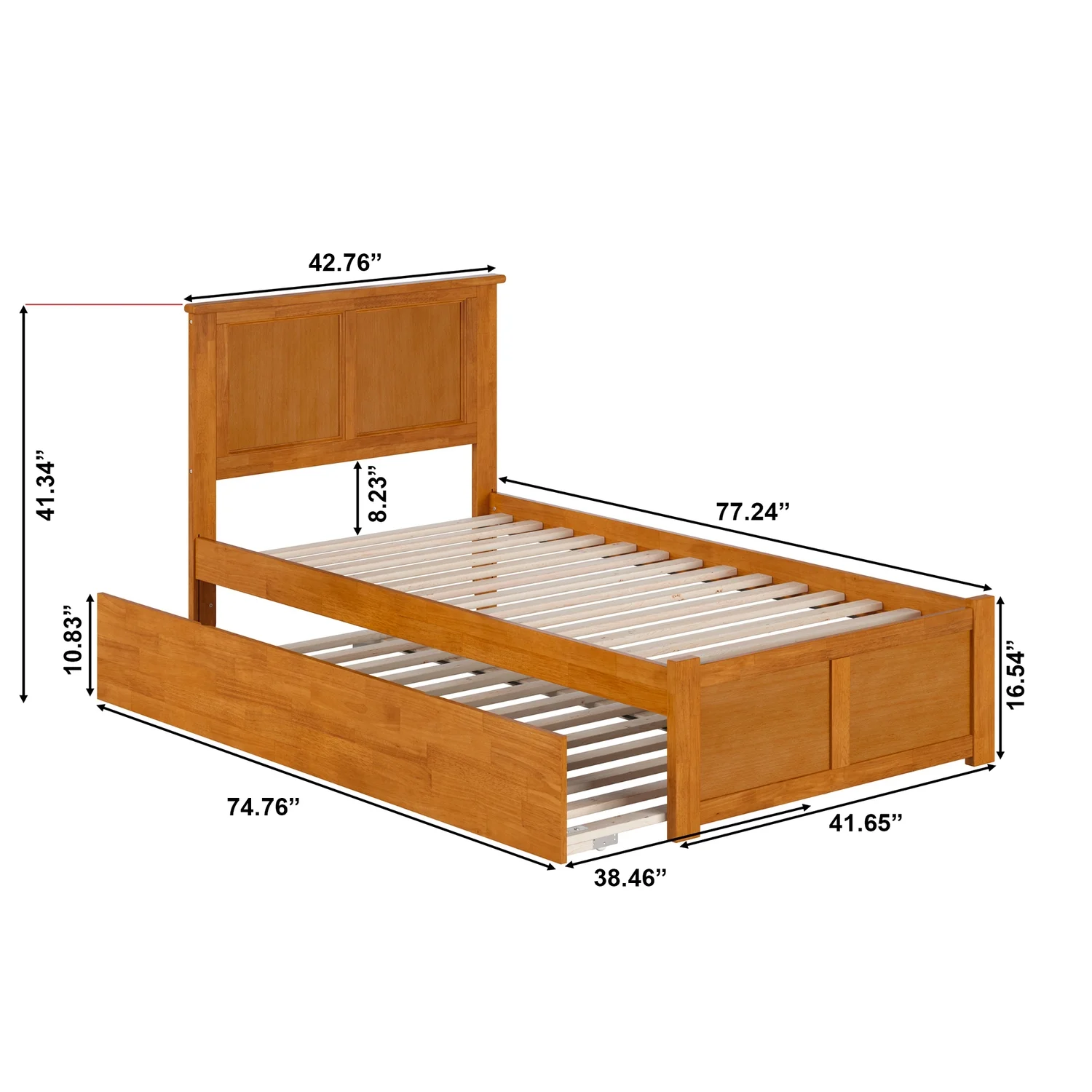 Madison Twin Wood Platform Bed with Footboard and Twin Trundle in Light Toffee