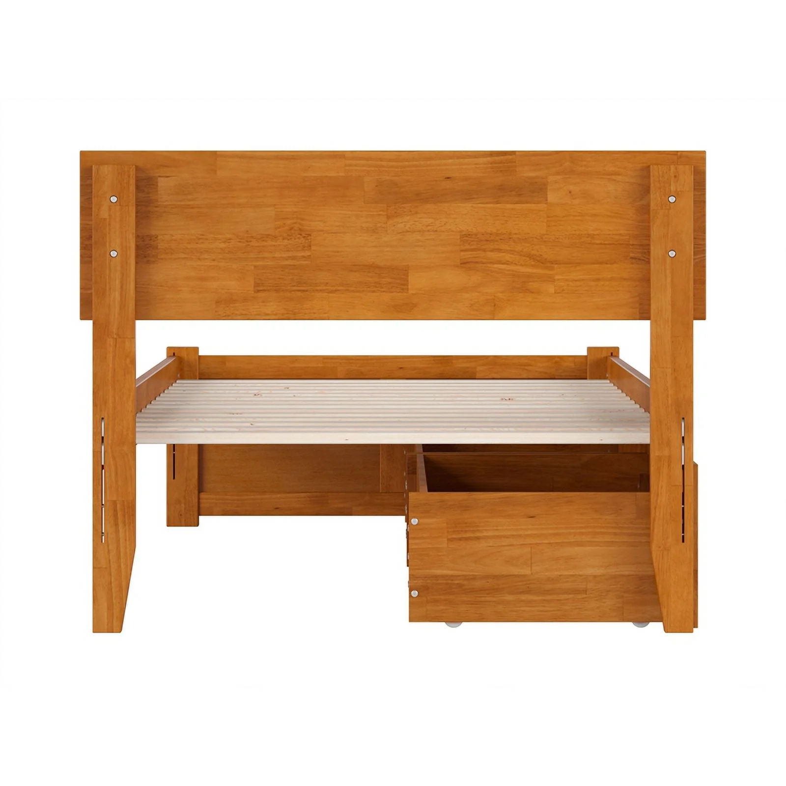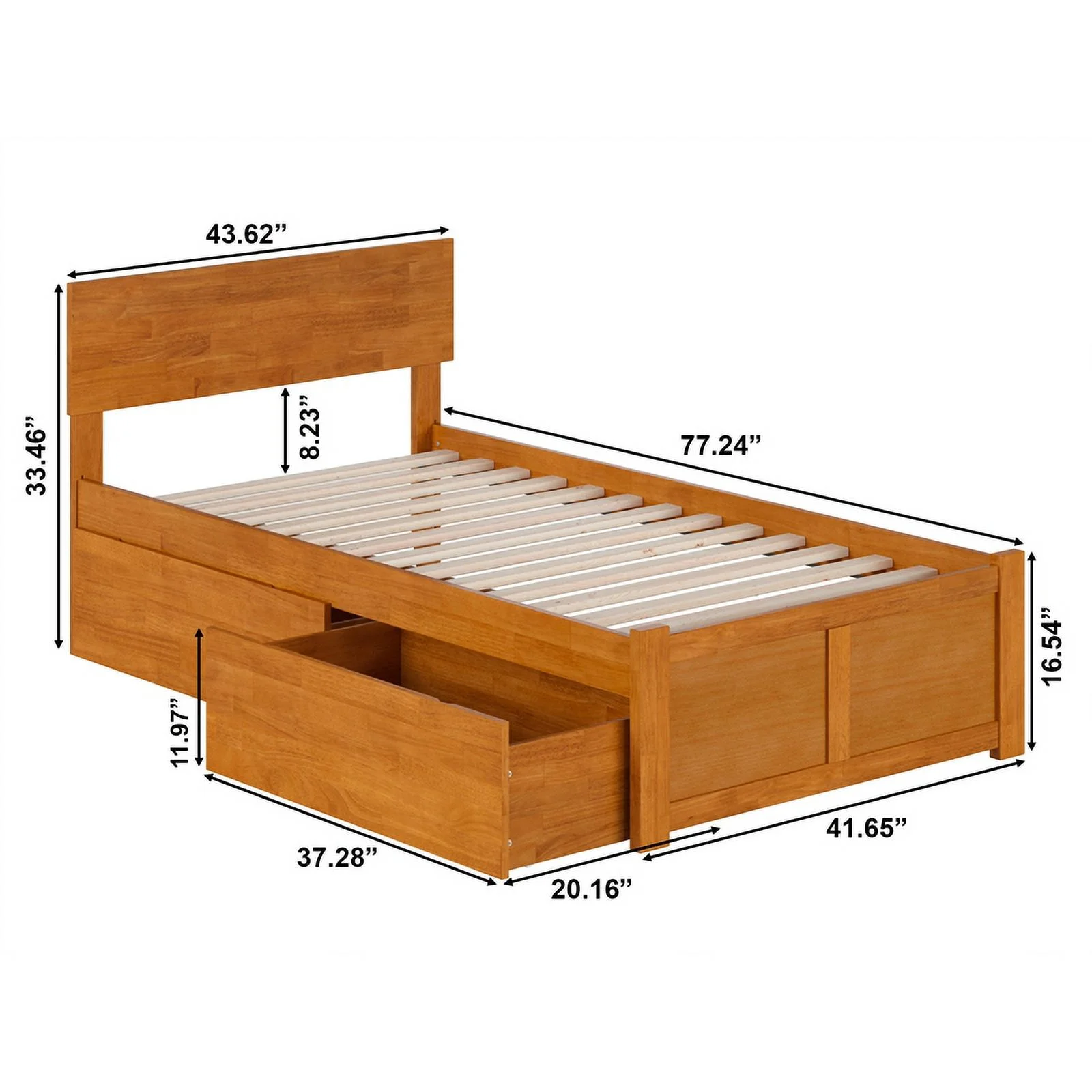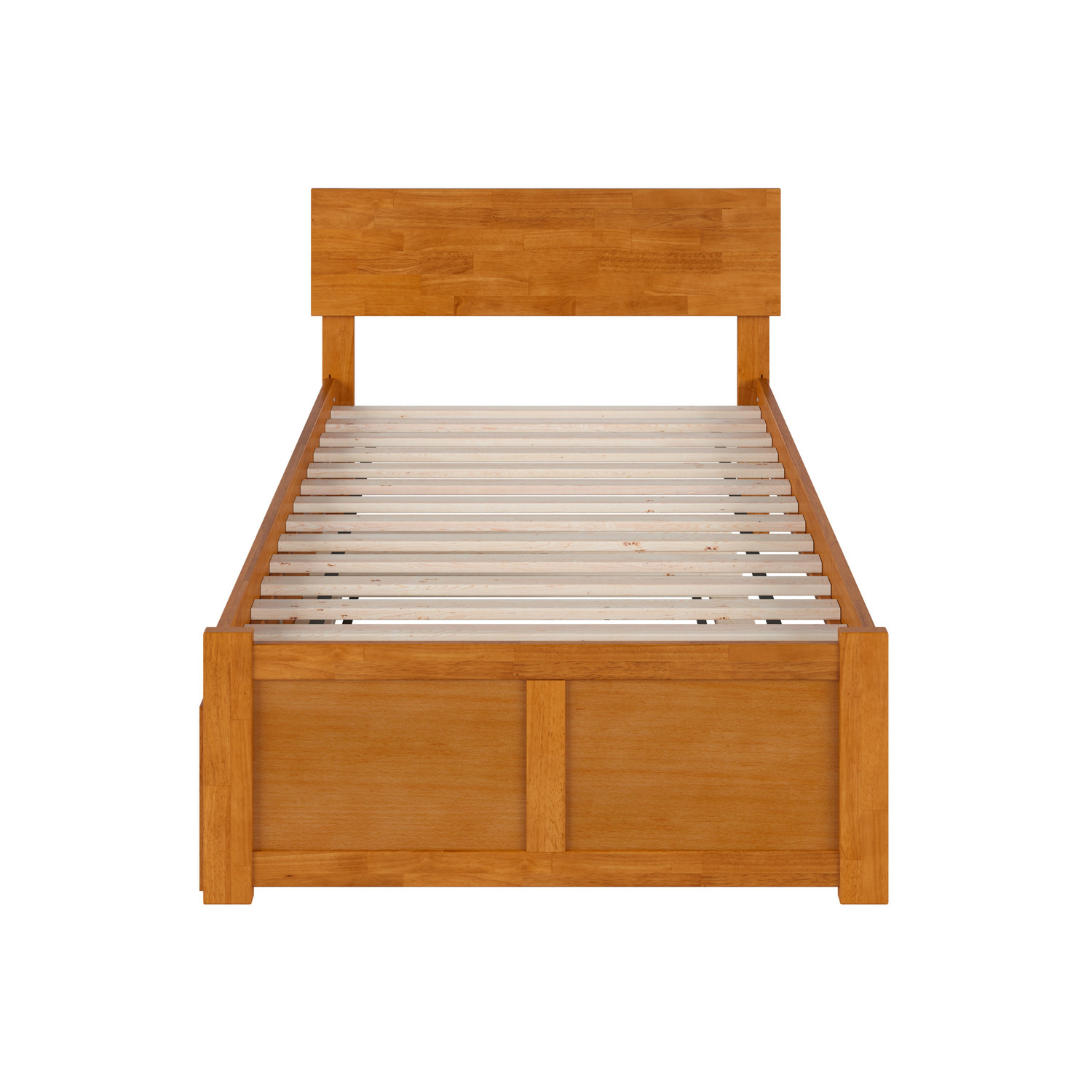 Orlando Twin Wood Platform Bed with Footboard and Drawers in Light Toffee