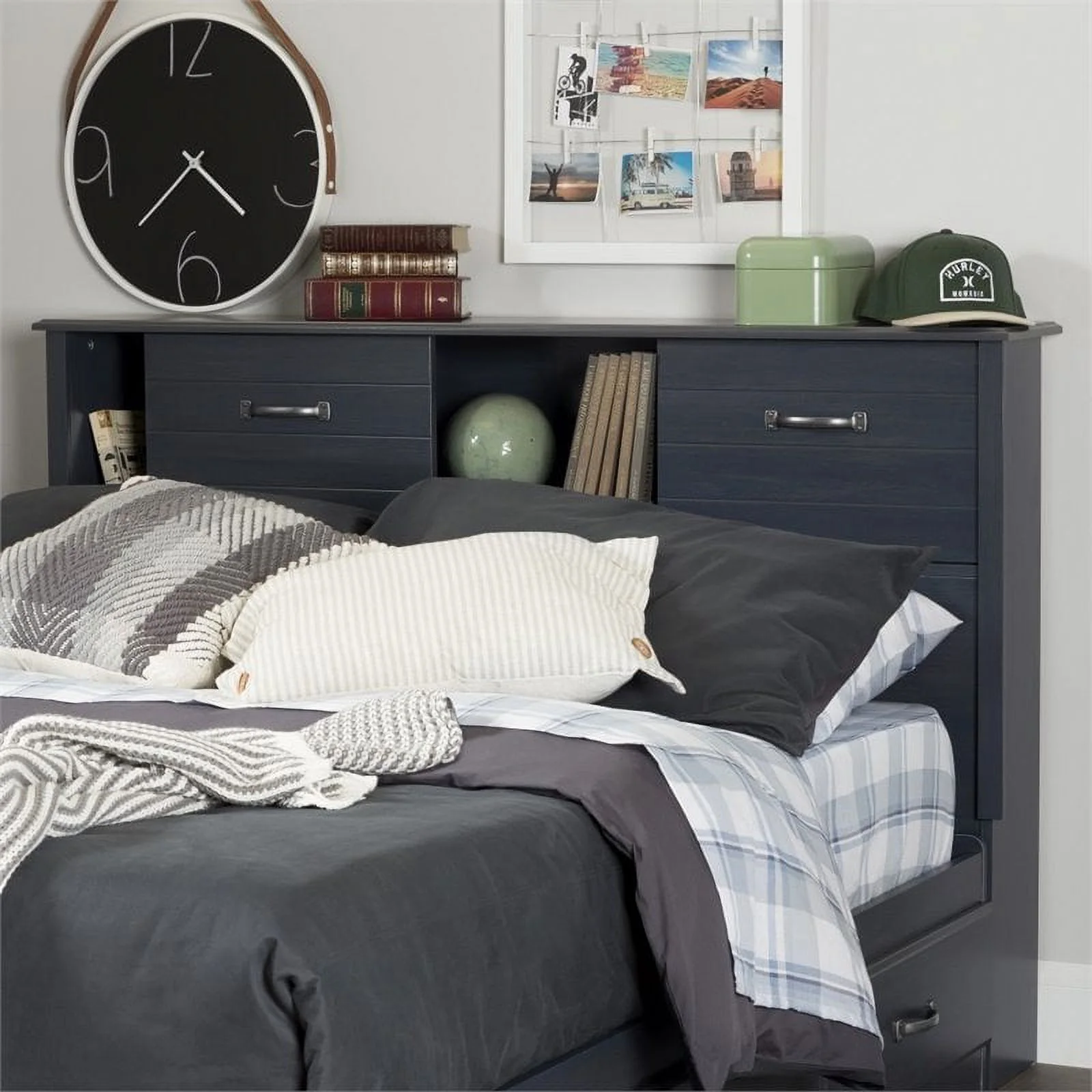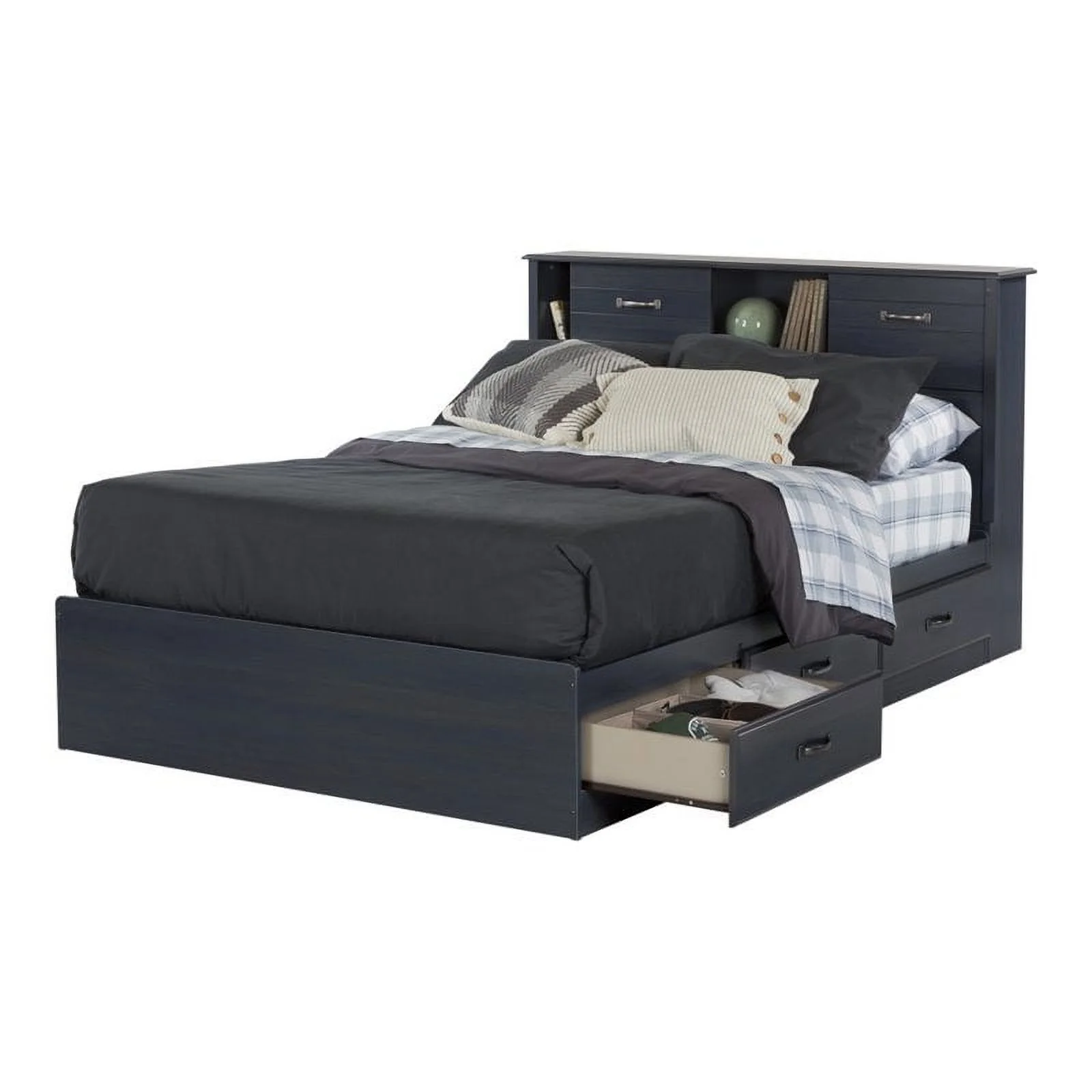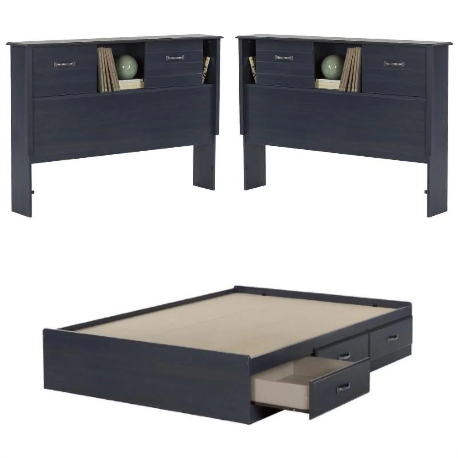 Home Square 3-Piece Set with Full Mates Bed and 2 Headboards in Blueberry