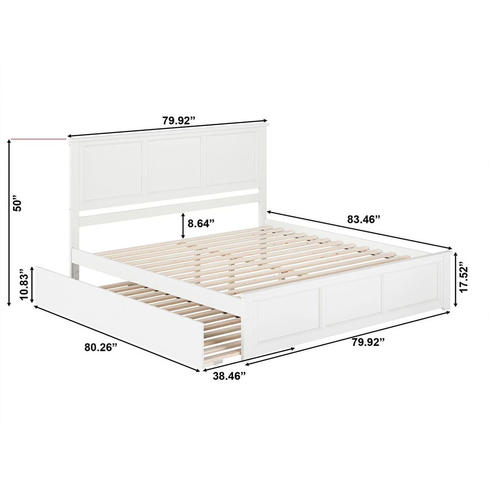 Madison King Wood Platform Bed with Matching Footboard and TXL Trundle in White