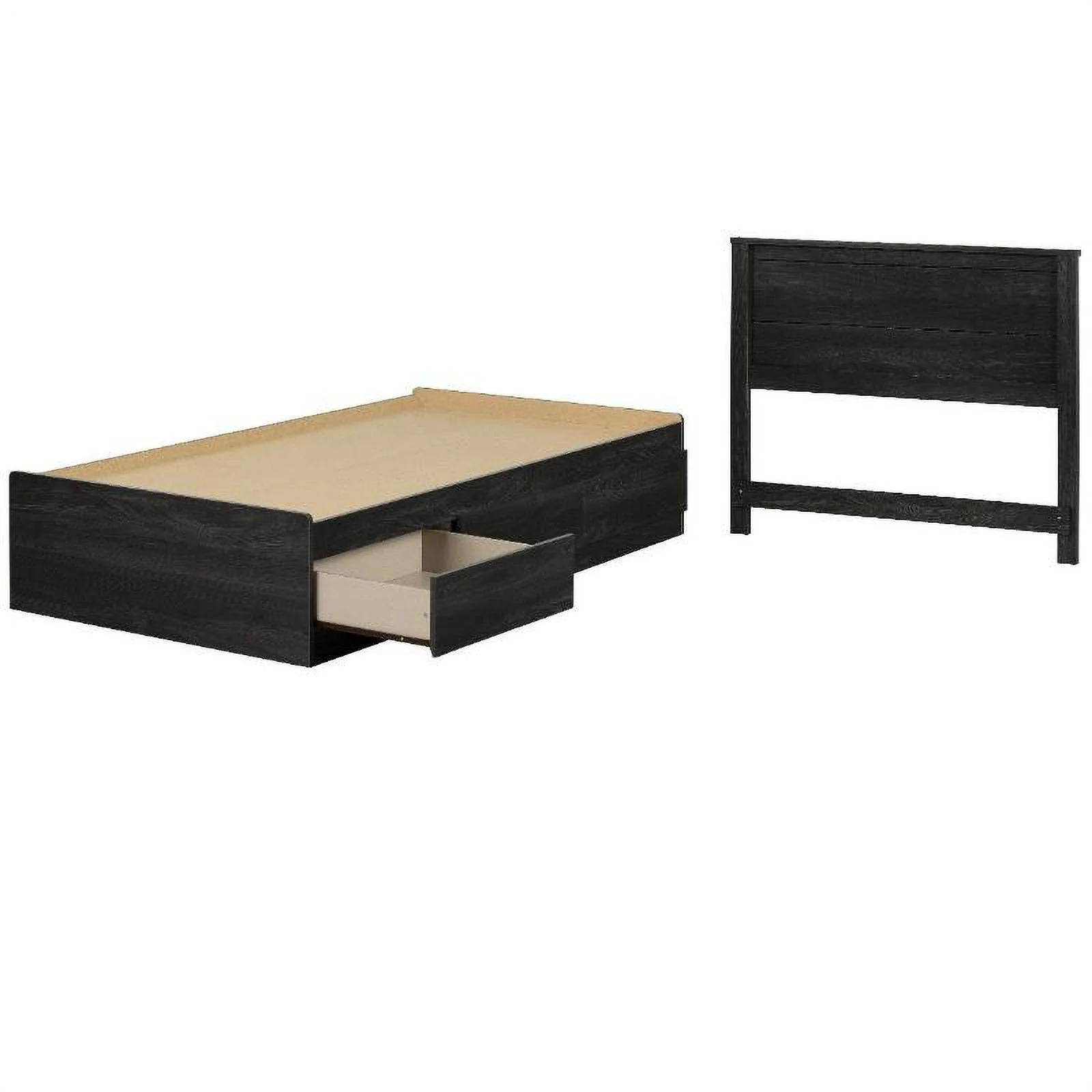 Madison Twin Platform Bed with Matching Footboard and Drawers in Light Toffee