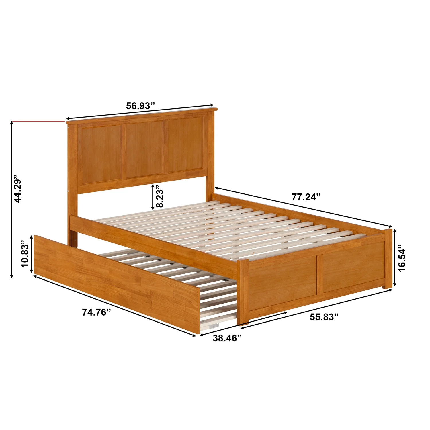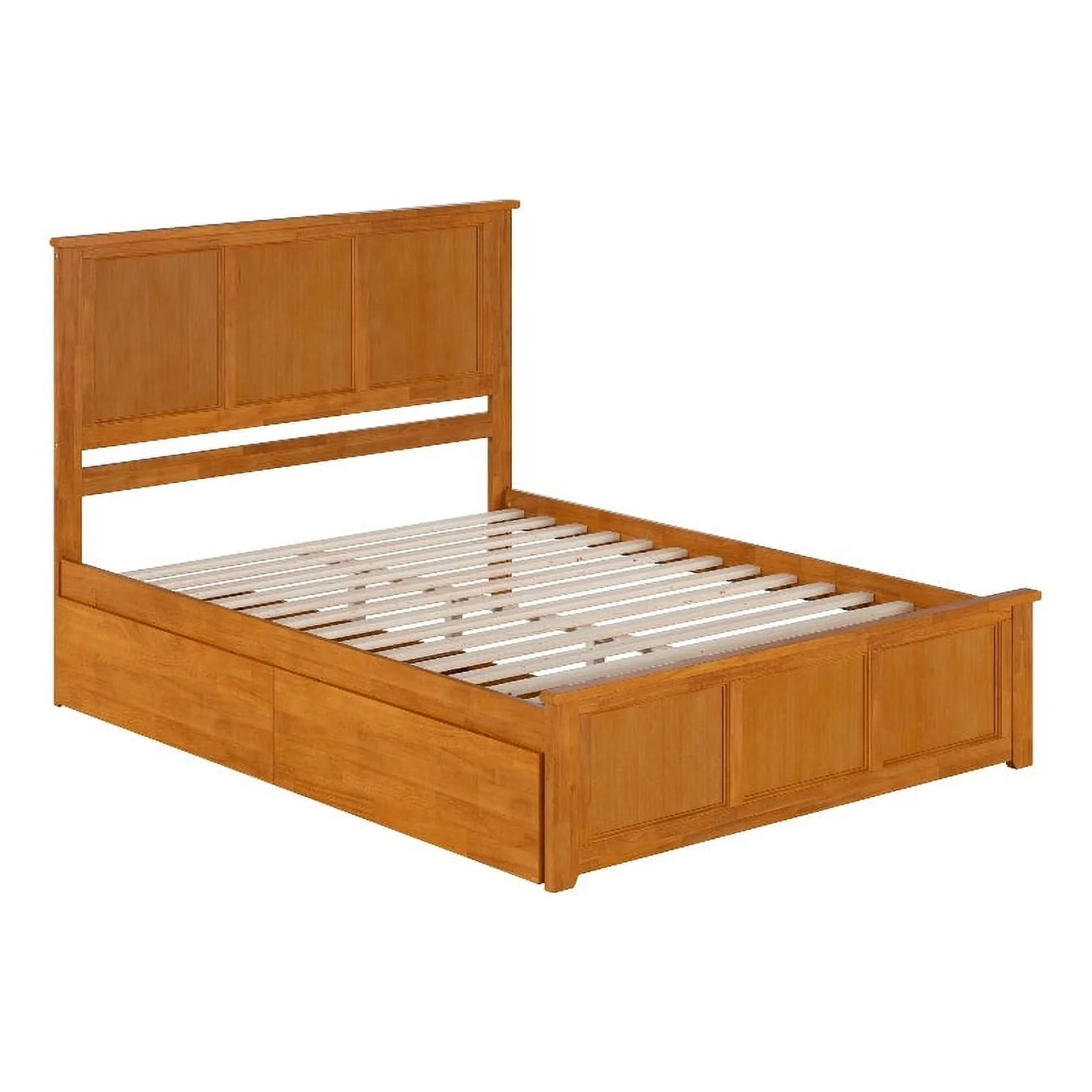 Madison Full Wood Platform Bed with Footboard and Twin Trundle in Light Toffee