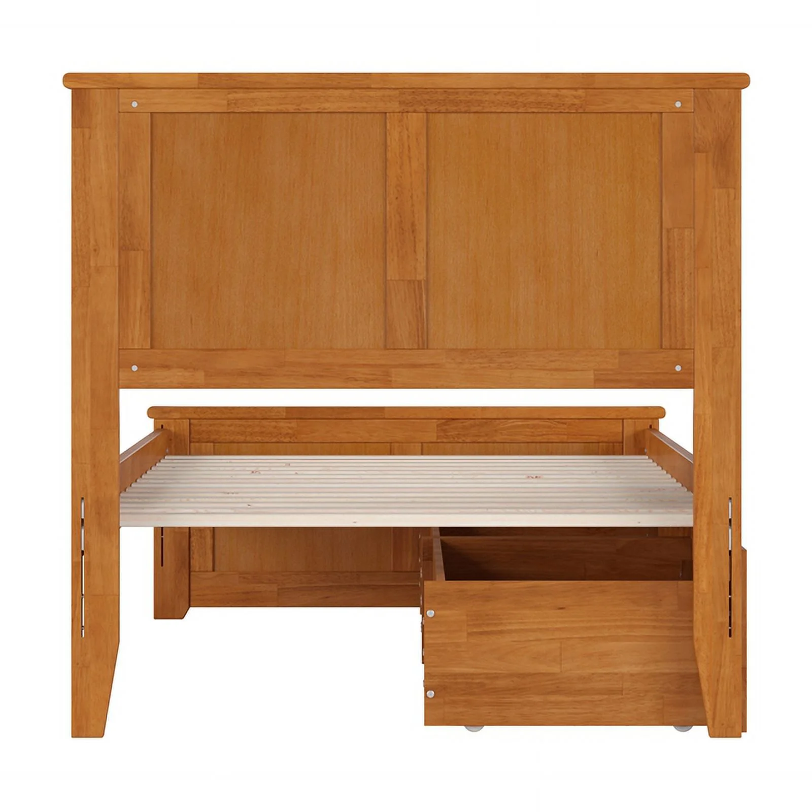 Madison Twin Wood Platform Bed with Footboard & Storage Drawers in Light Toffee