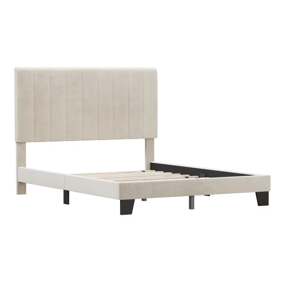 Hillsdale Crestone Upholstered Fabric Adjustable Height Queen Platform Bed Cream