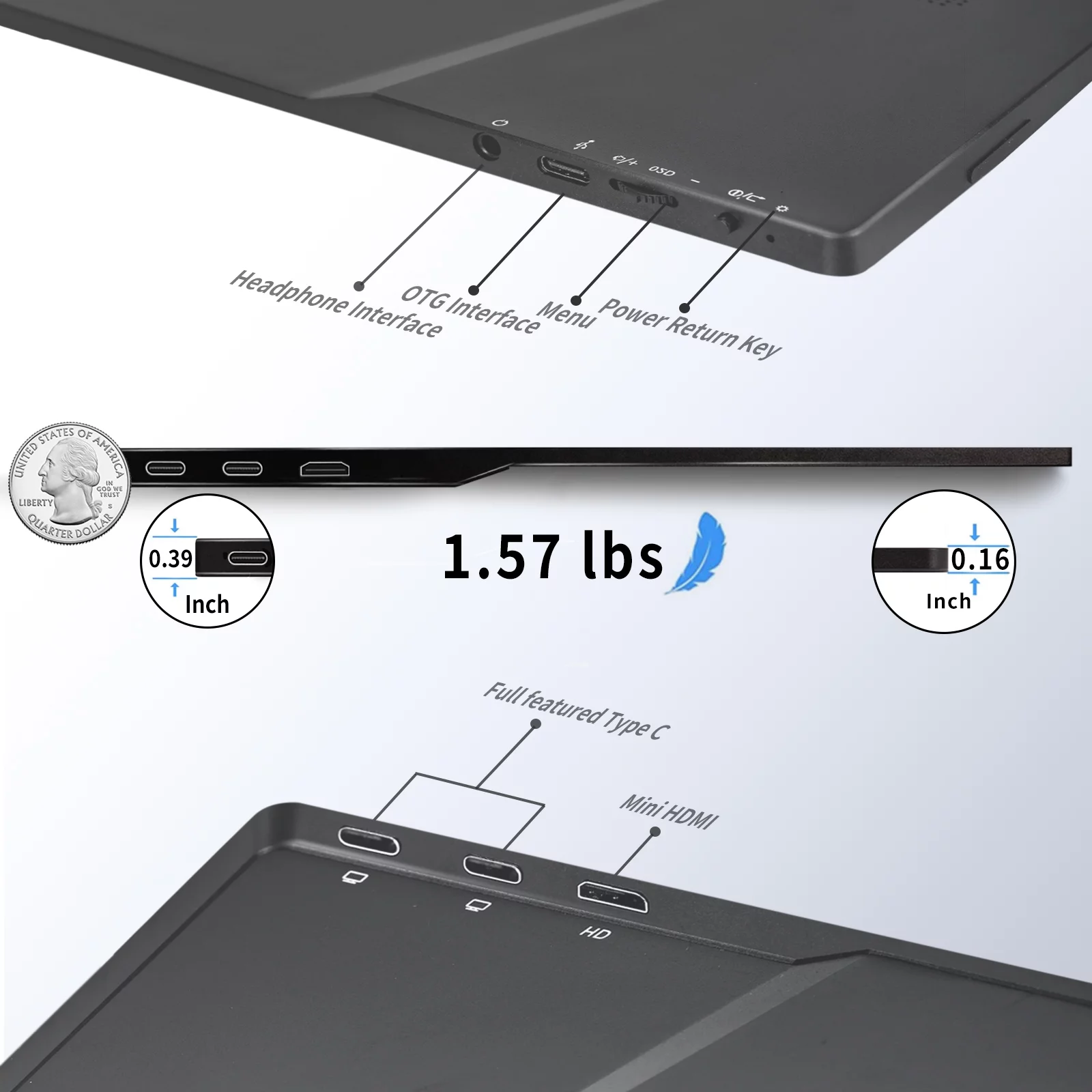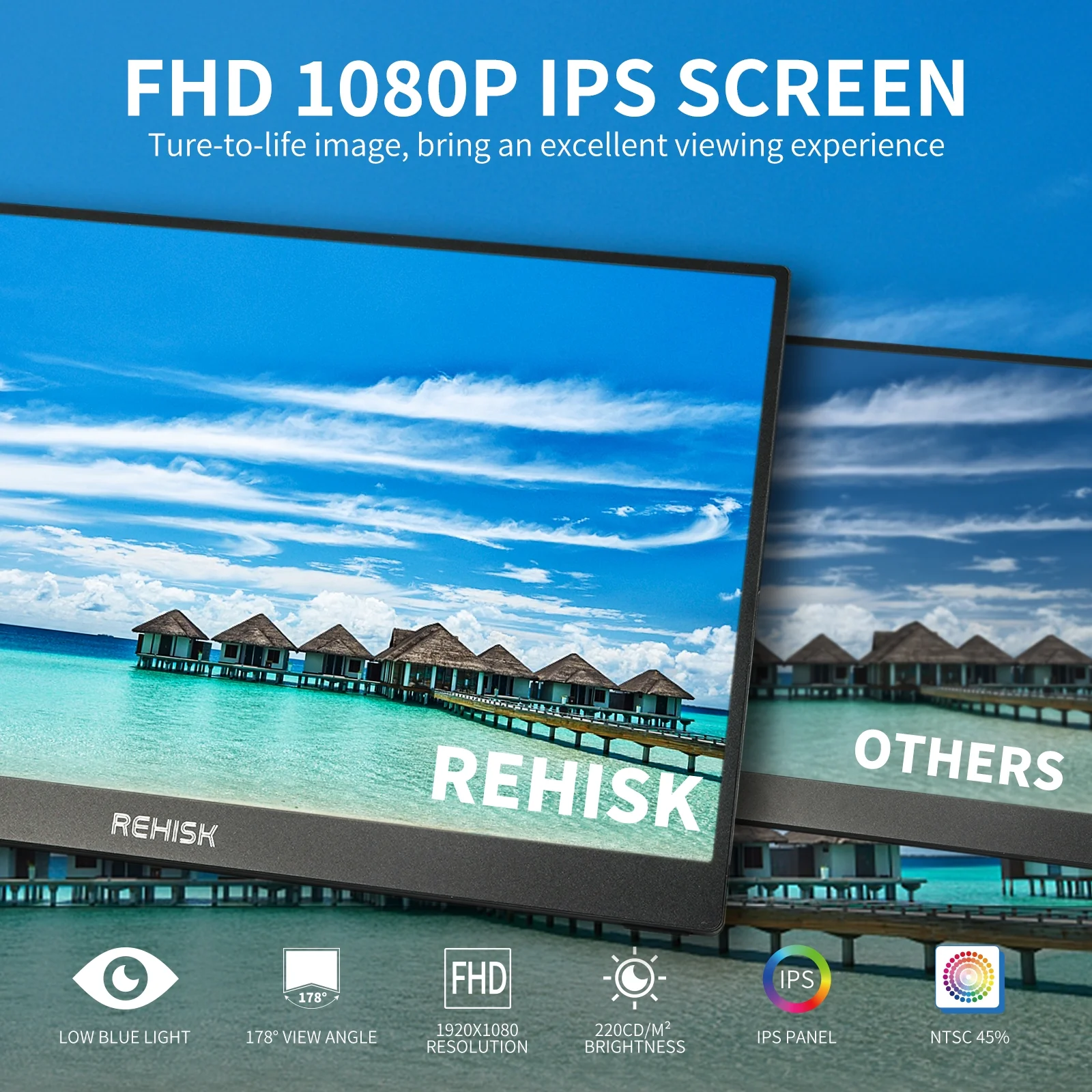 Rehisk 15.6" inch Portable Monitor FHD 1080P Build in stand Gaming Monitor with HDMI USB-C Display for Laptop