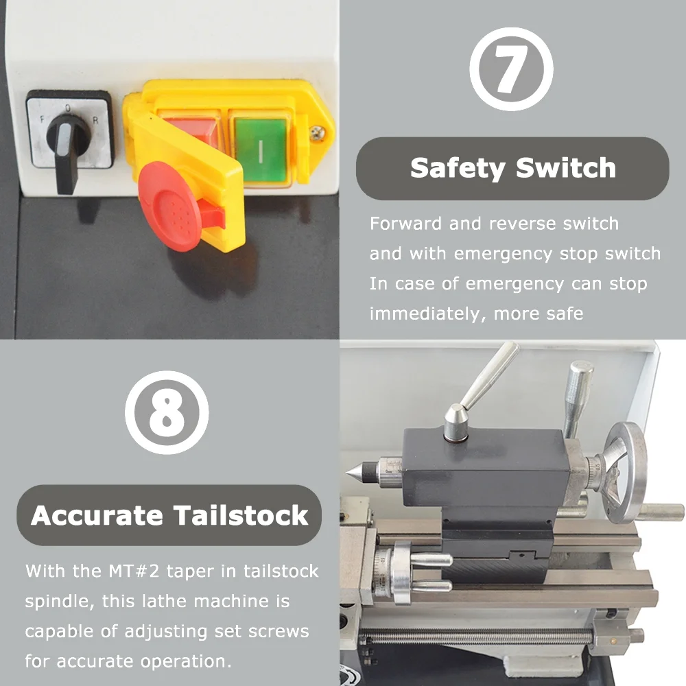 Mini Metal Bench Lathe Variable Speed Precision Inch Instrument Machine Threaded Version WM210V 900W 8"*32"