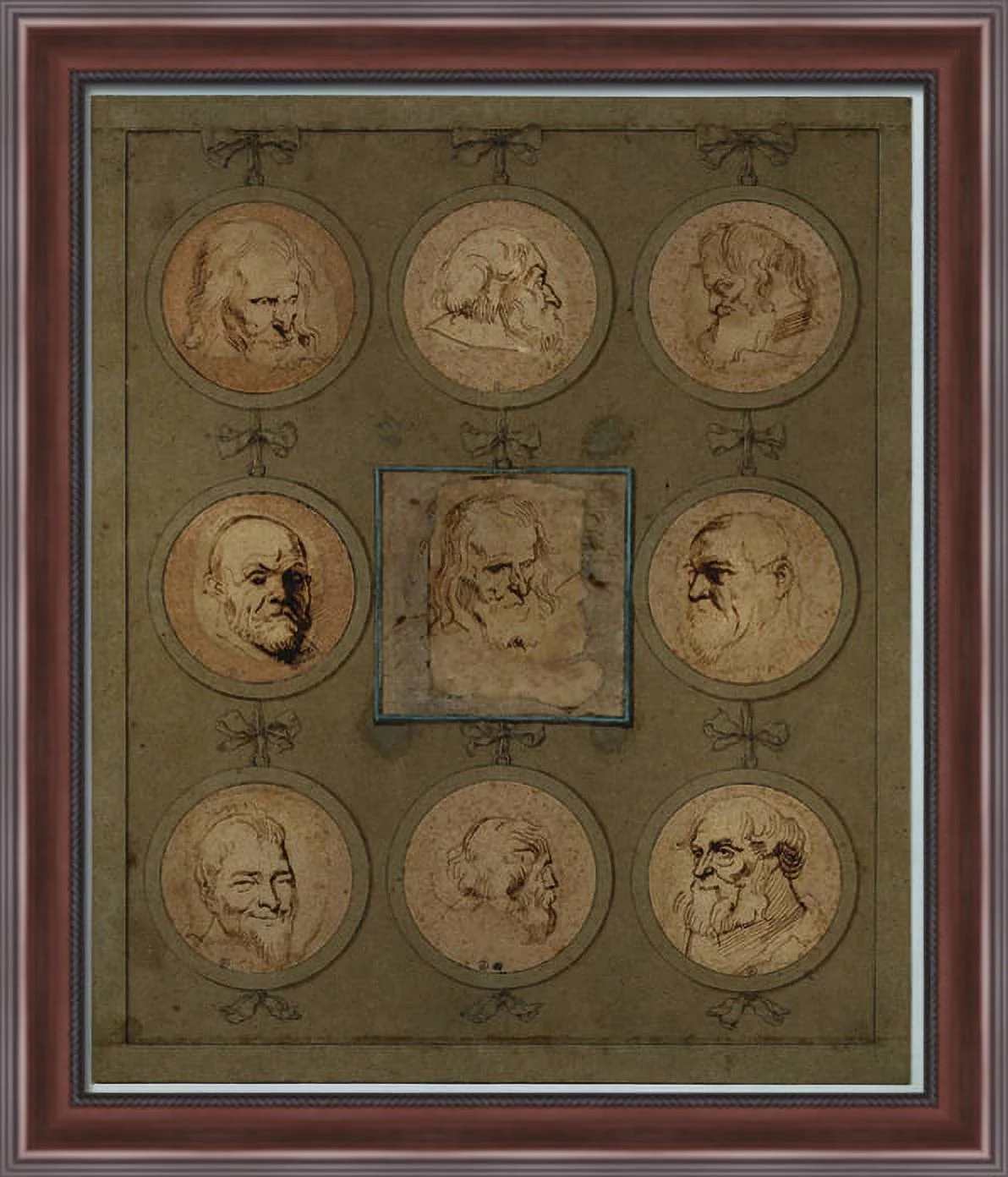 Sheet of Studies 28x34 Large Walnut Ornate Wood Framed Canvas Art by Anthony van Dyck