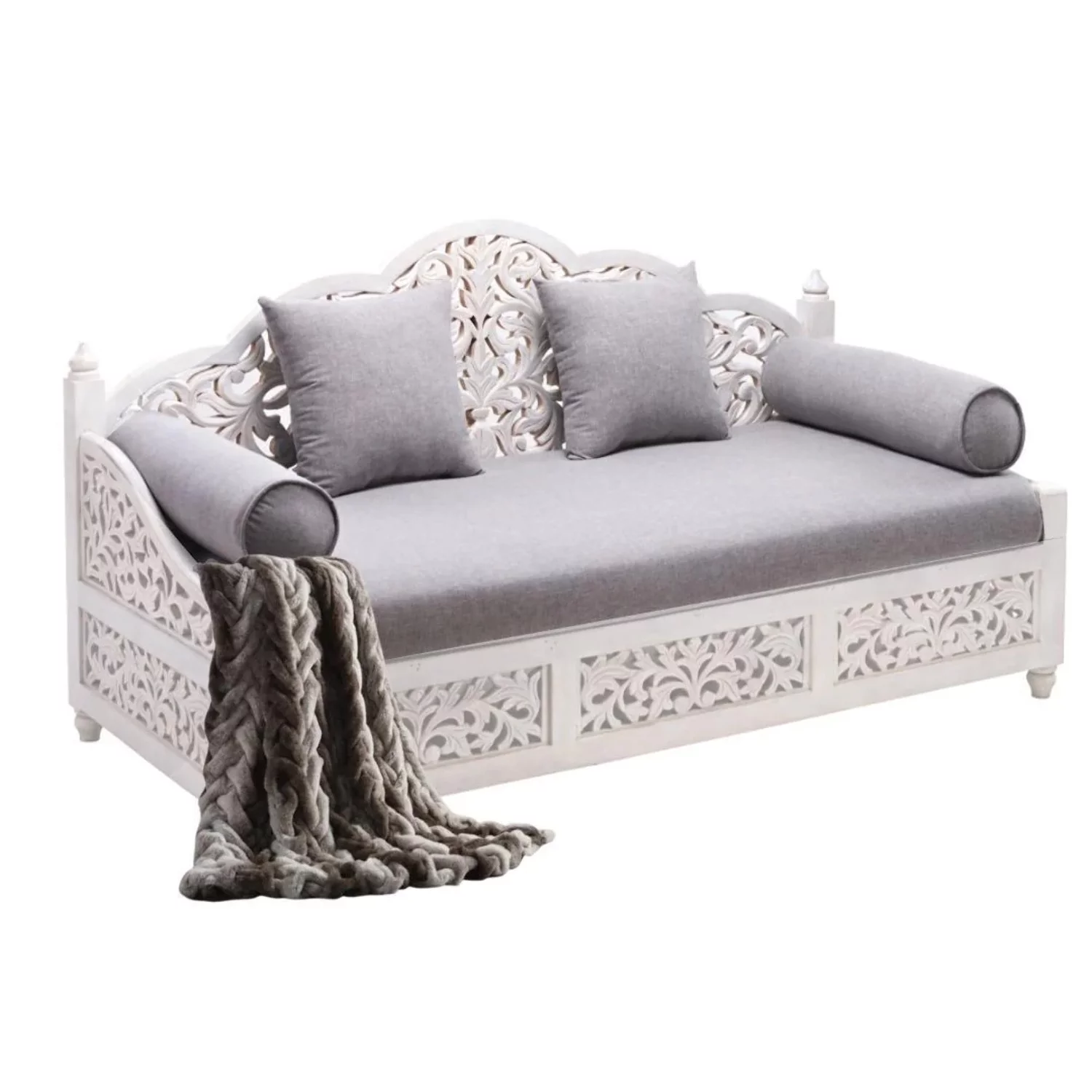 Loungie Resty Memory Foam Sofa Nylon Indoor/ Outdoor Self Expanding Water Resistant Sleeper Couch, Light Grey