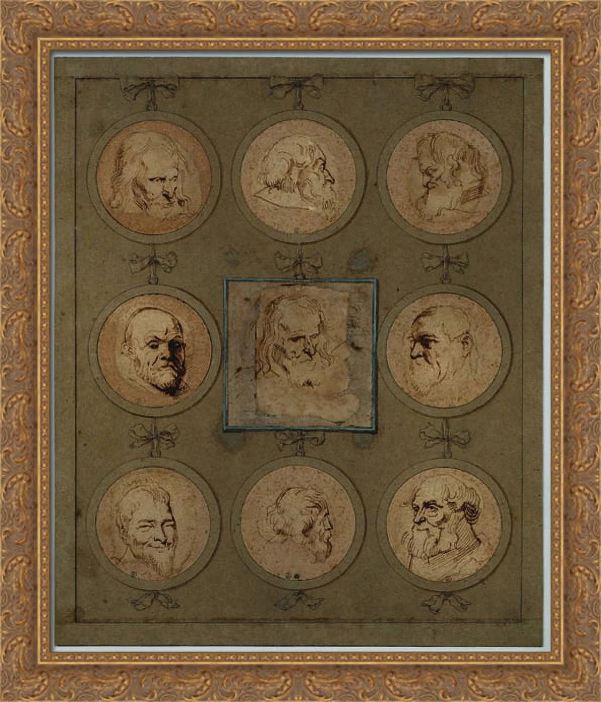 Sheet of Studies 28x34 Large Gold Ornate Wood Framed Canvas Art by Sir Anthony van Dyck