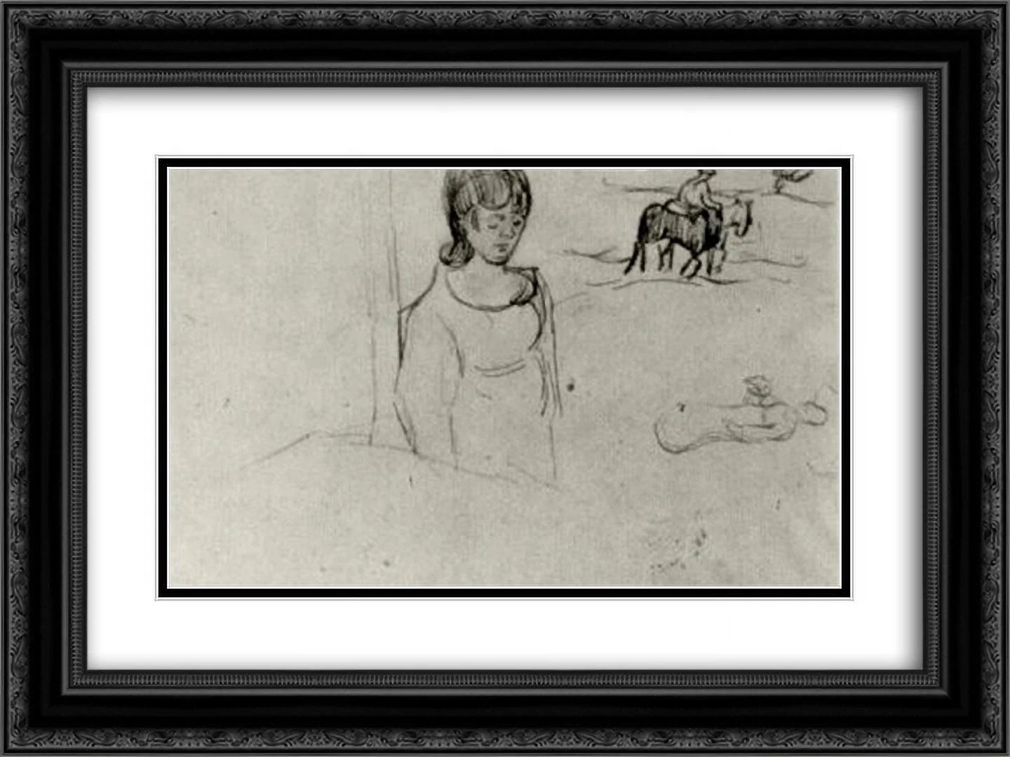 Vincent van Gogh 2x Matted 24x18 Black Ornate Framed Art Print 'Sheet with a Few Sketches of Figures'