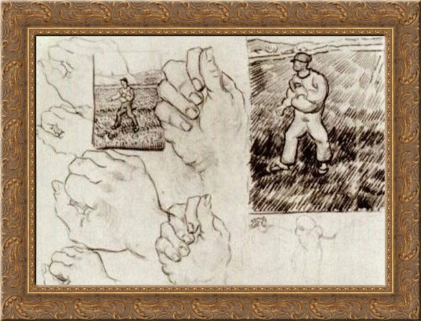 Sheet with Two Sowers and Hands 24x18 Gold Ornate Wood Framed Canvas Art by Vincent van Gogh
