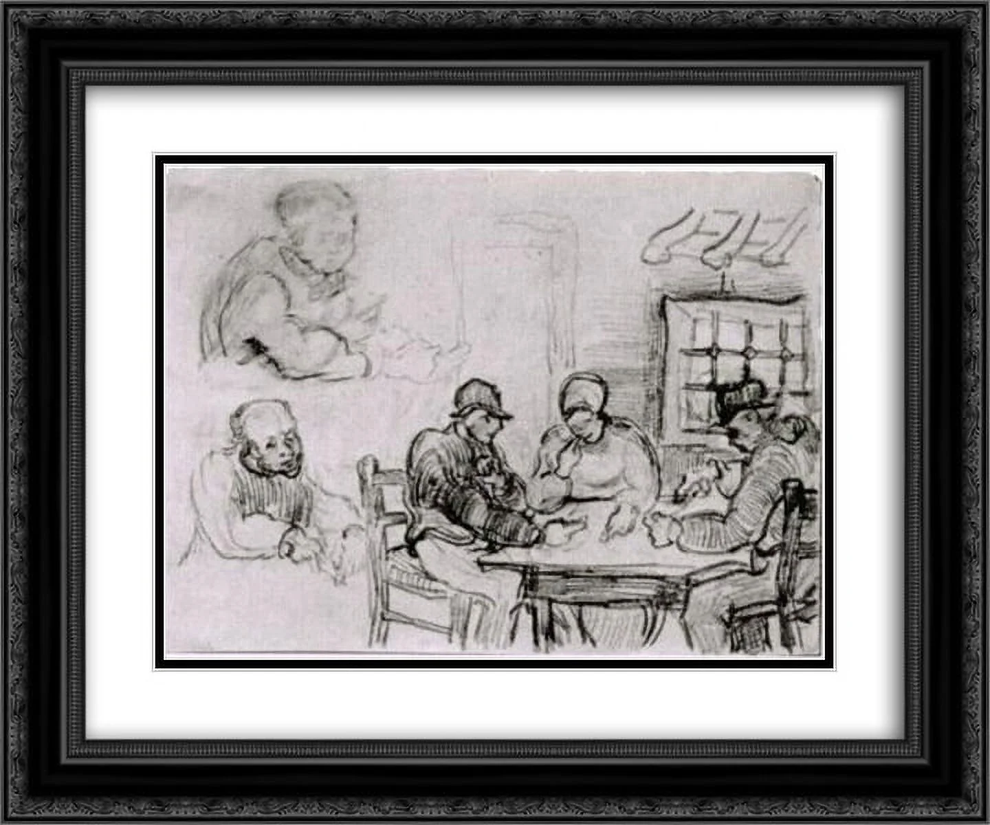 Vincent van Gogh 2x Matted 24x20 Black Ornate Framed Art Print 'Sheet with Peasants Eating and Other Figures'