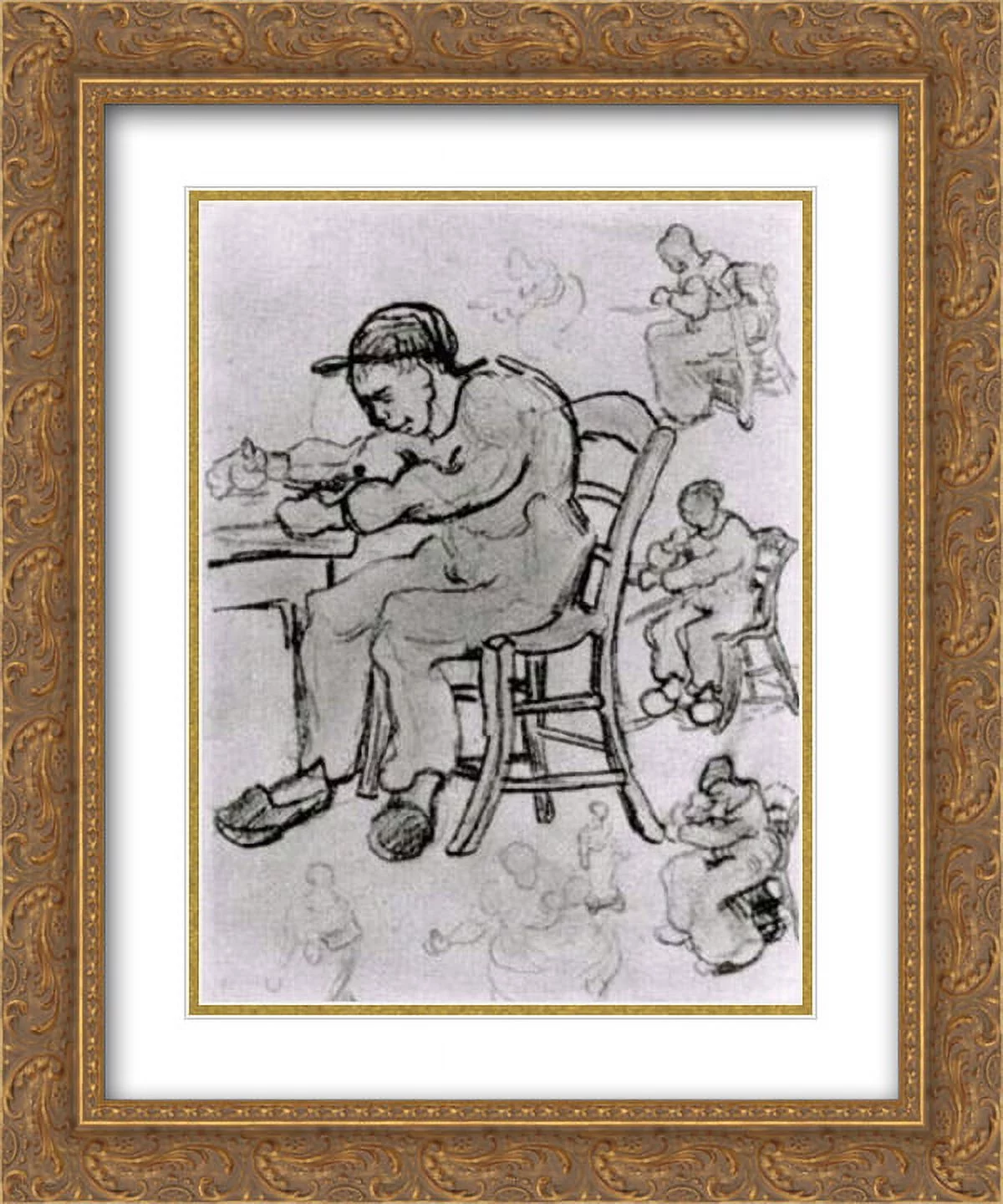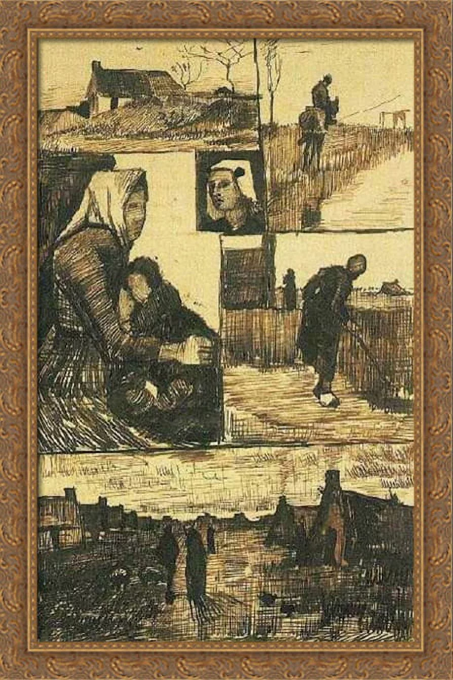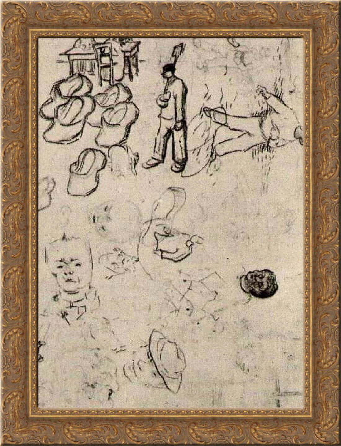 Sheet with Figures at a Table, a Sower, Clogs, etc 24x18 Gold Ornate Wood Framed Canvas Art by Vincent van Gogh