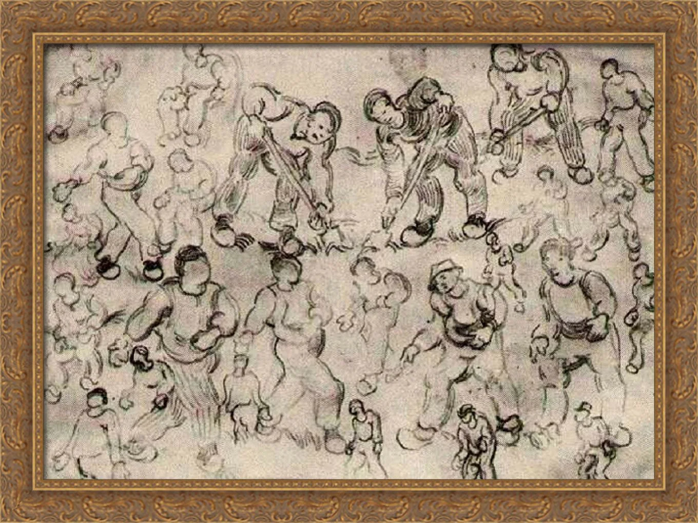 Sheet with Numerous Figure Sketches 36x28 Large Gold Ornate Wood Framed Canvas Art by Vincent van Gogh