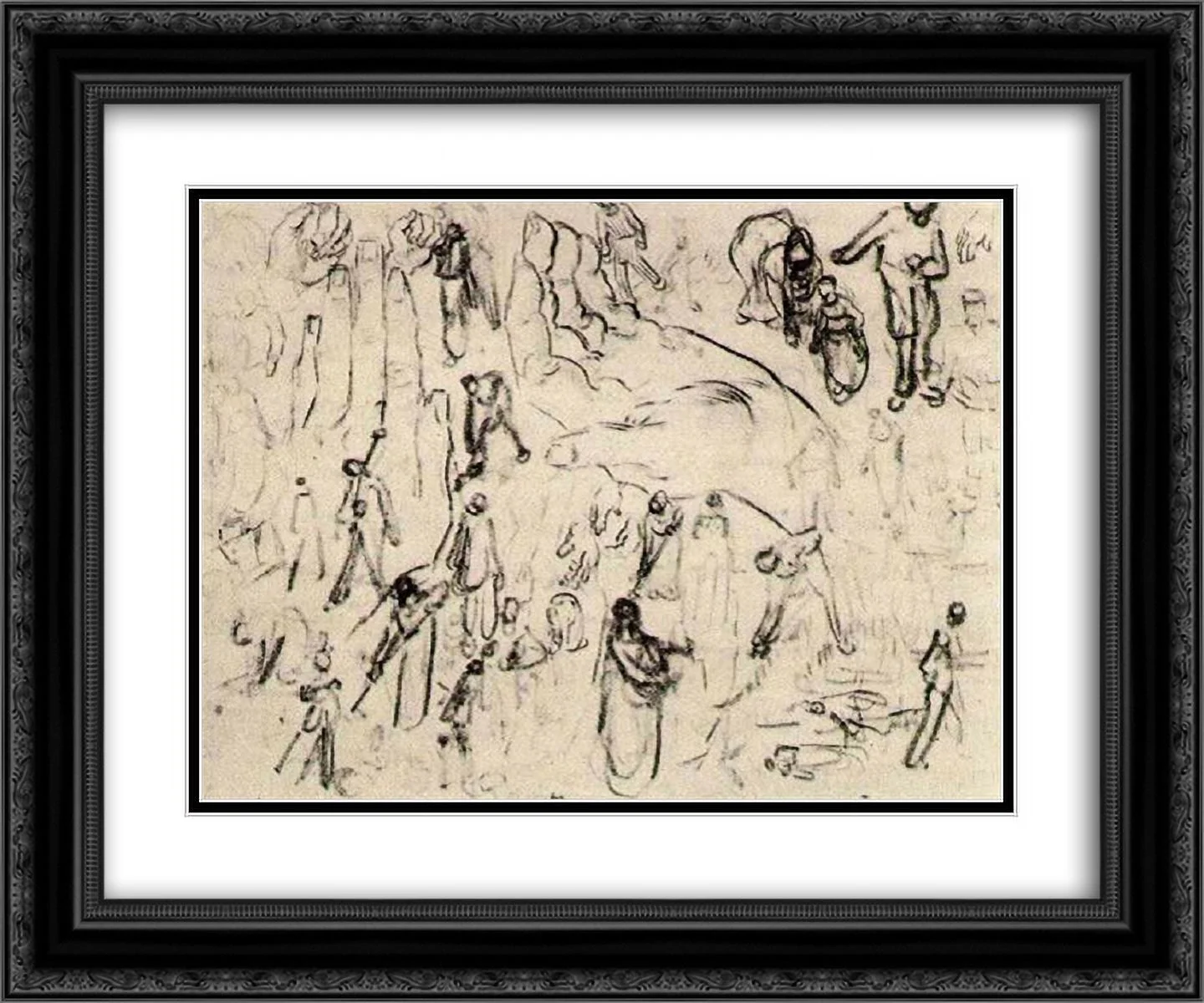 Sheet with Numerous Figure Sketches 36x28 Large Black Wood Framed Print Art by Vincent van Gogh