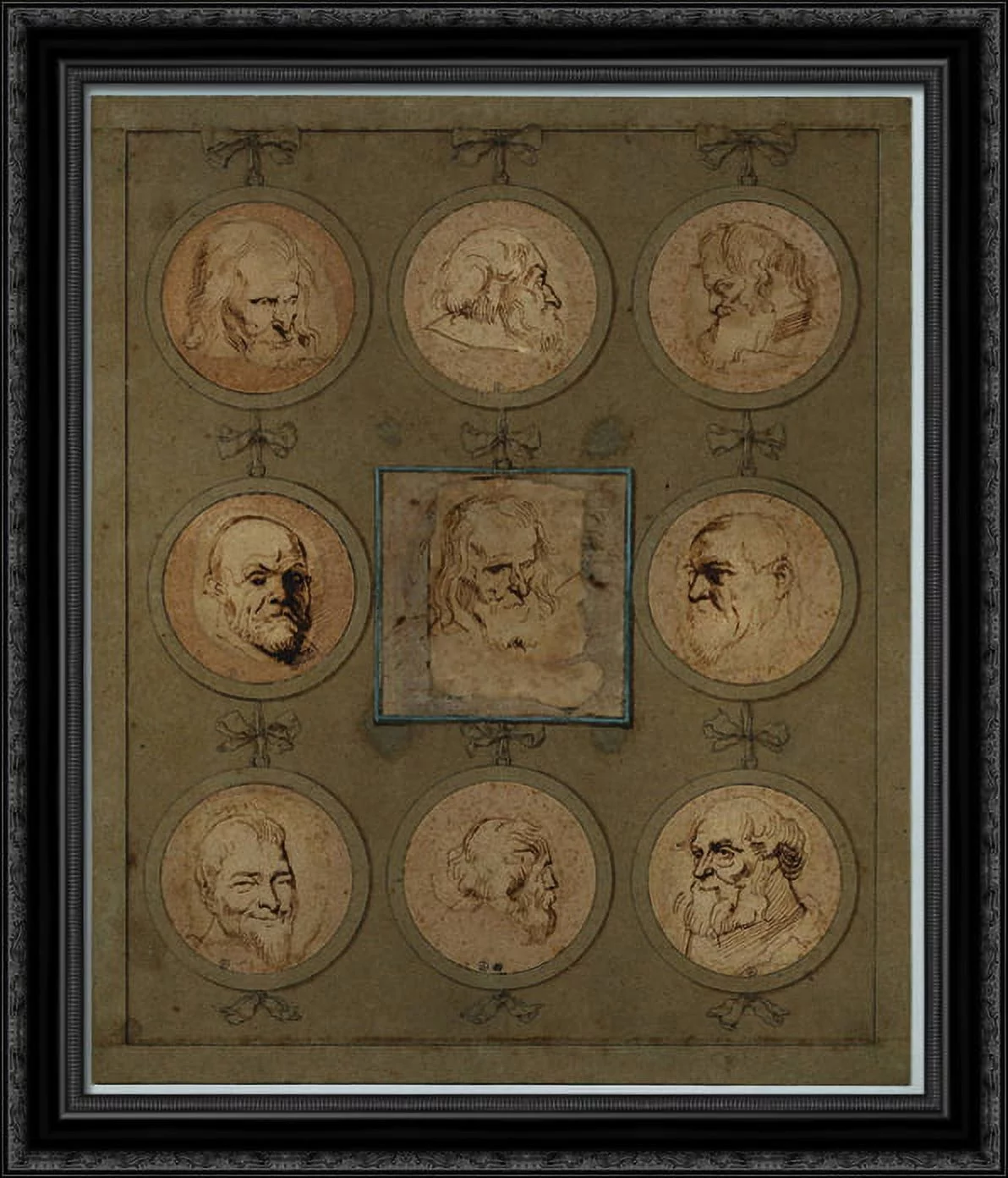 Sheet of Studies 28x34 Large Black Ornate Wood Framed Canvas Art by Sir Anthony van Dyck