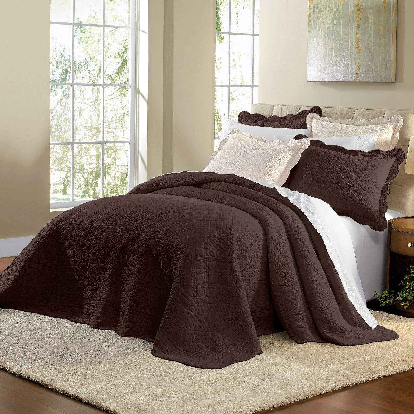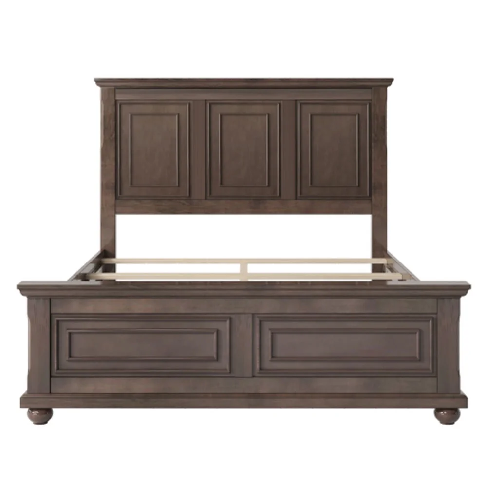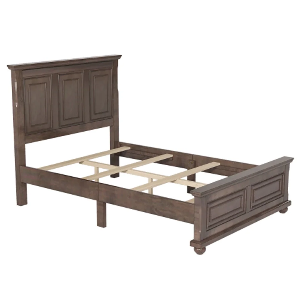 Traditional Town and Country Style Pinewood Vintage Queen Bed, Rich Brown