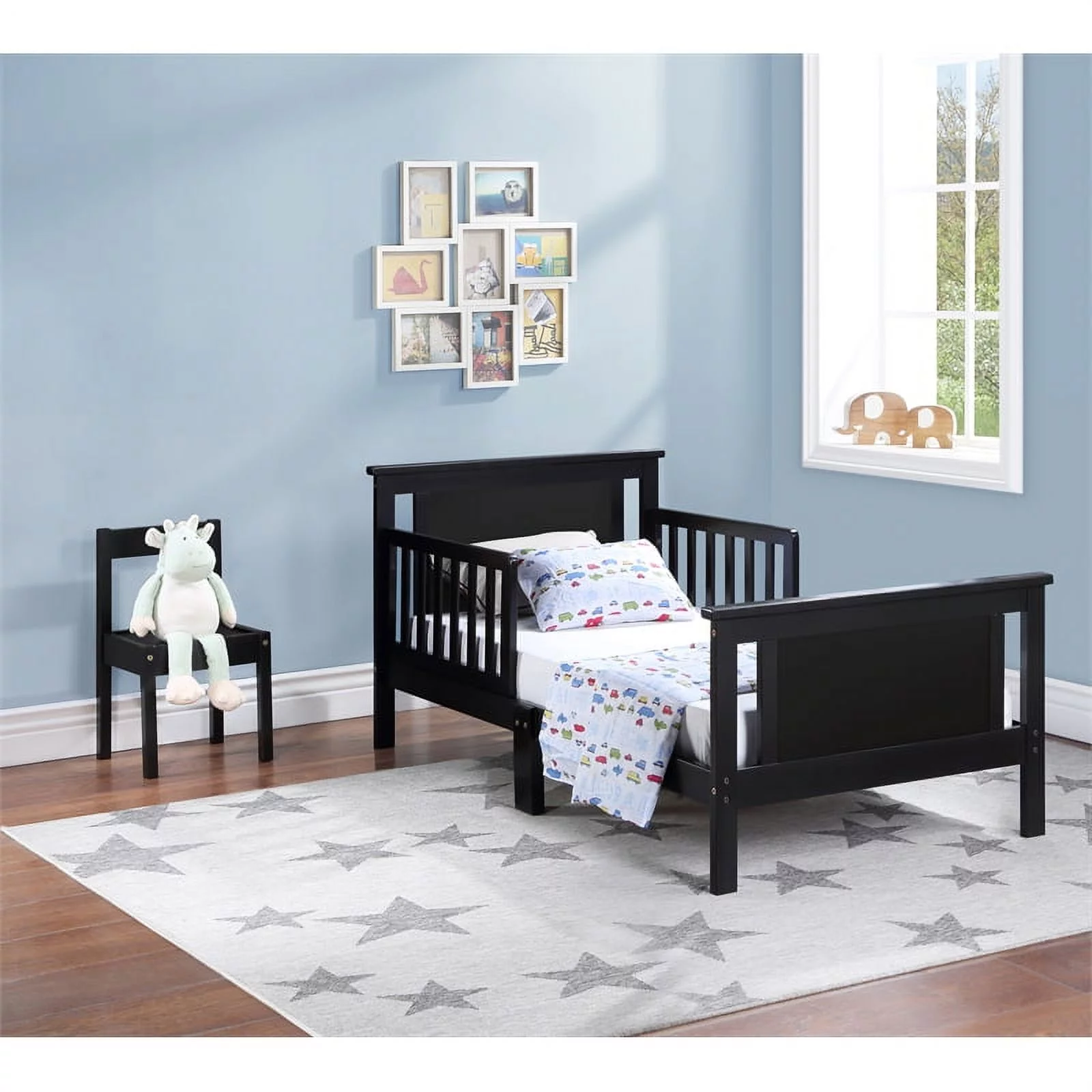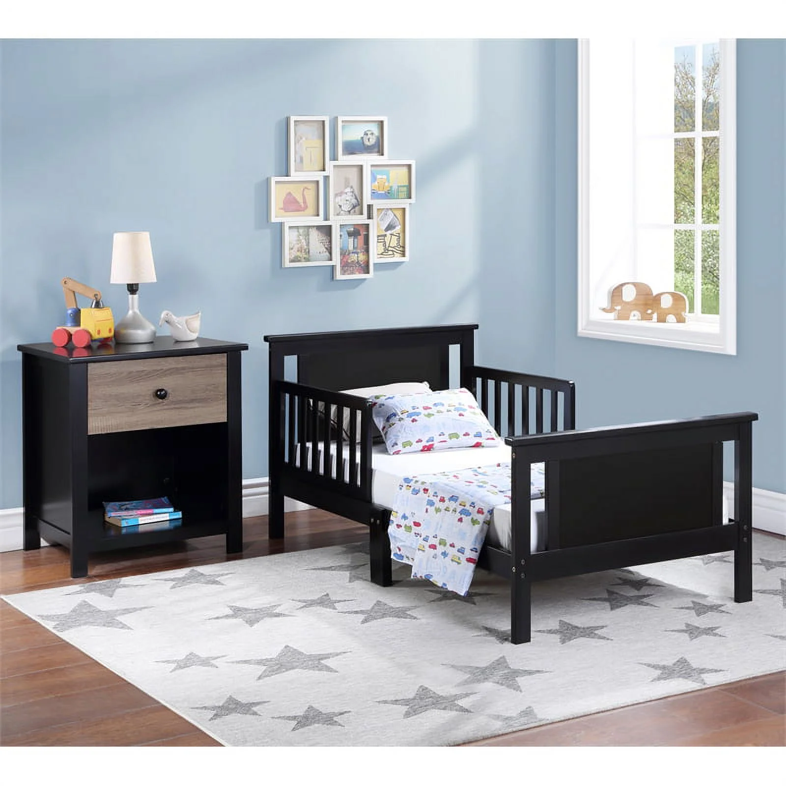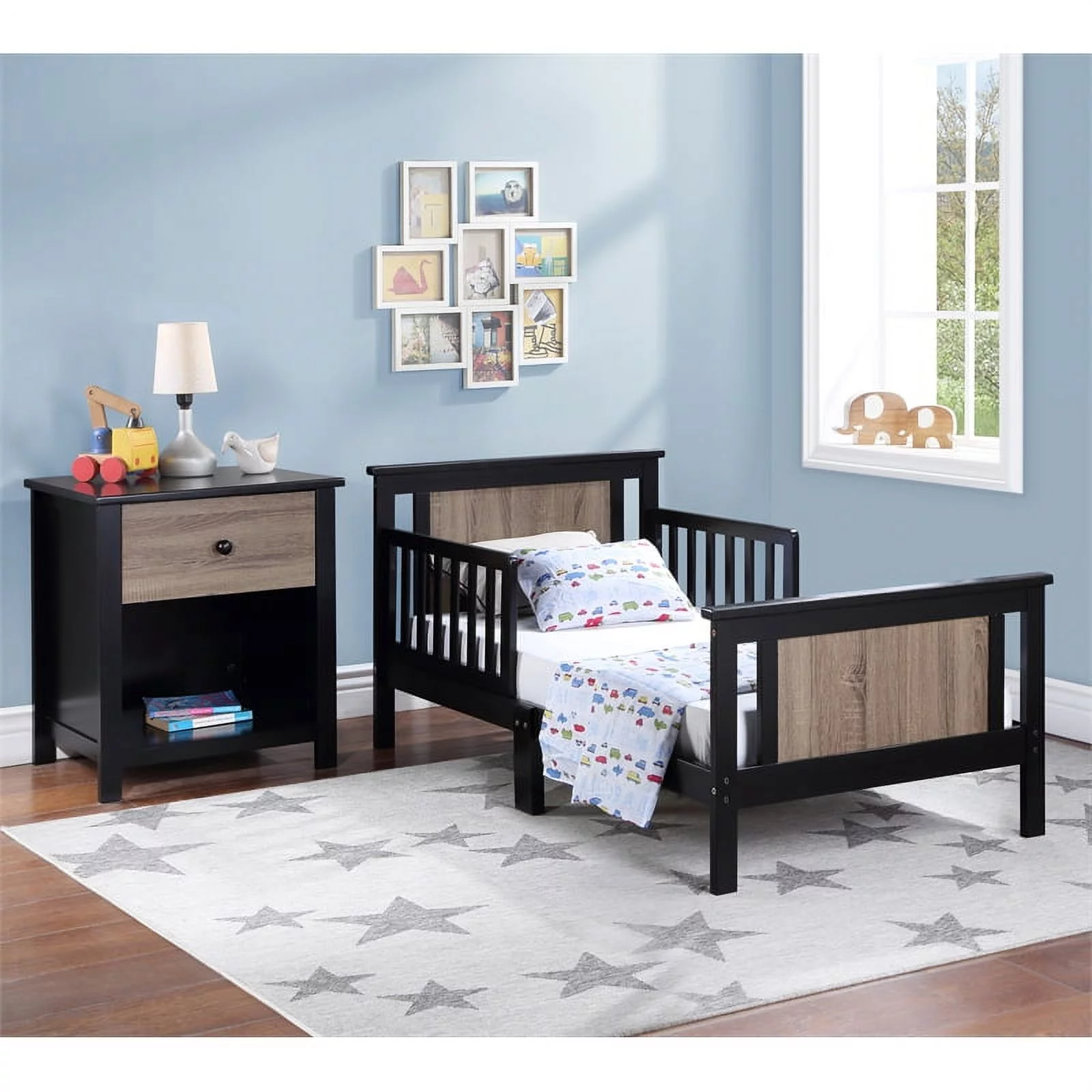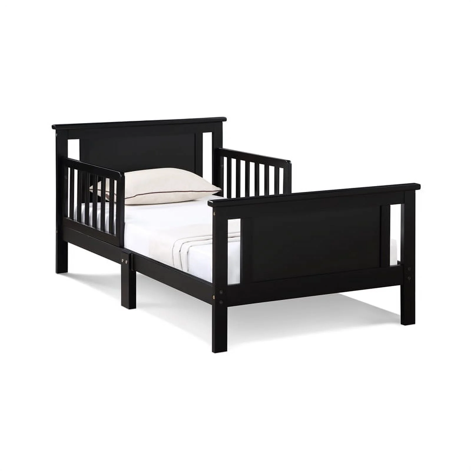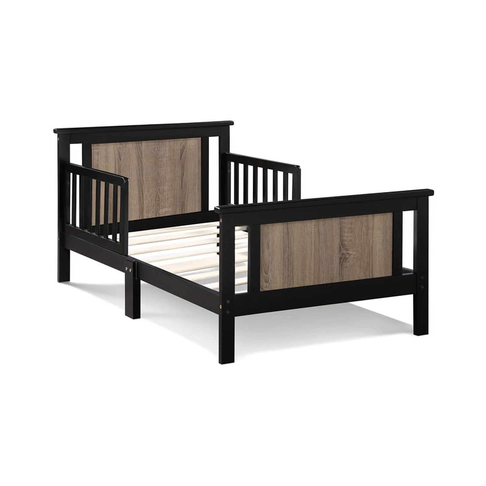 Olive & Opie Connelly Wood Reversible Panel Toddler Bed in Black/Vintage Walnut