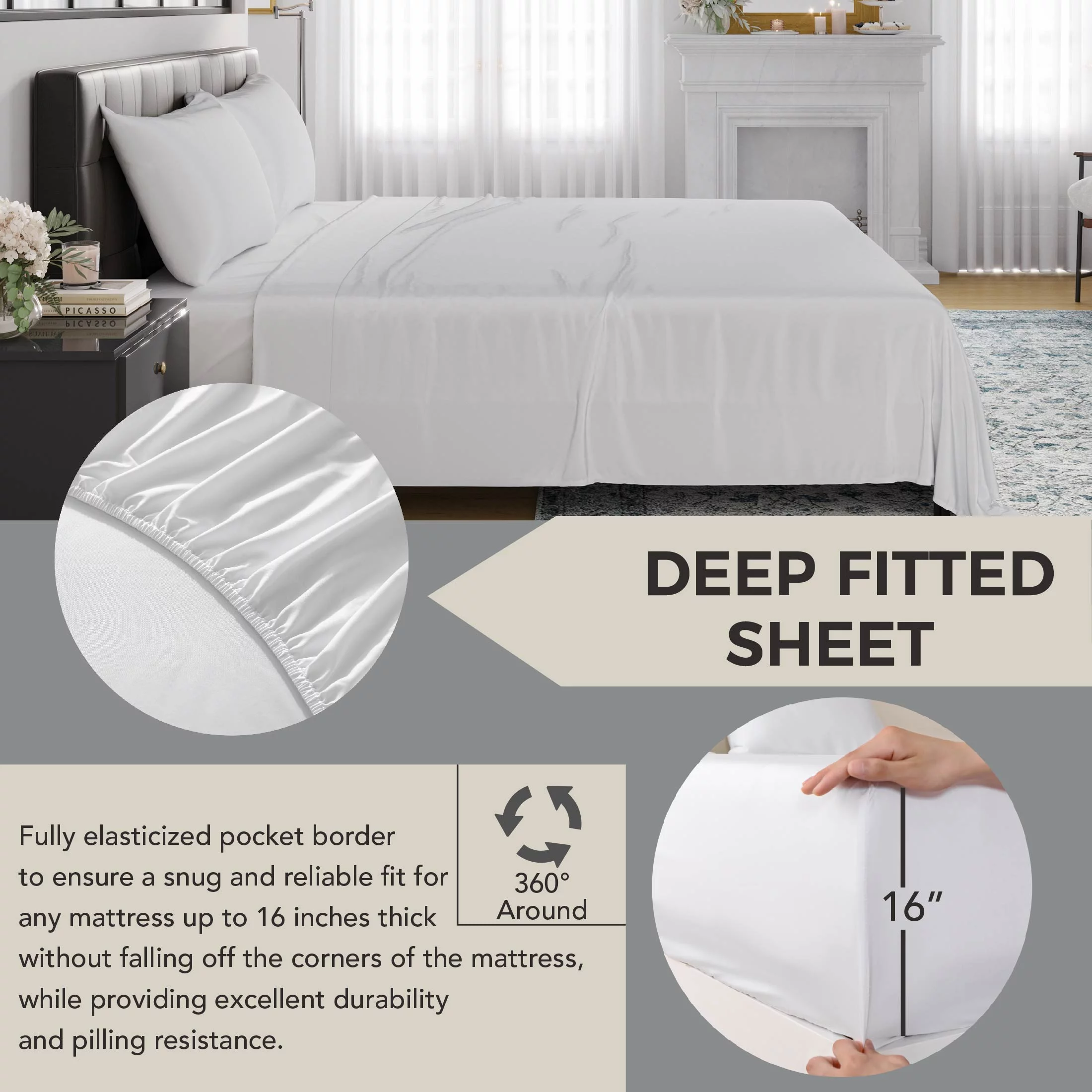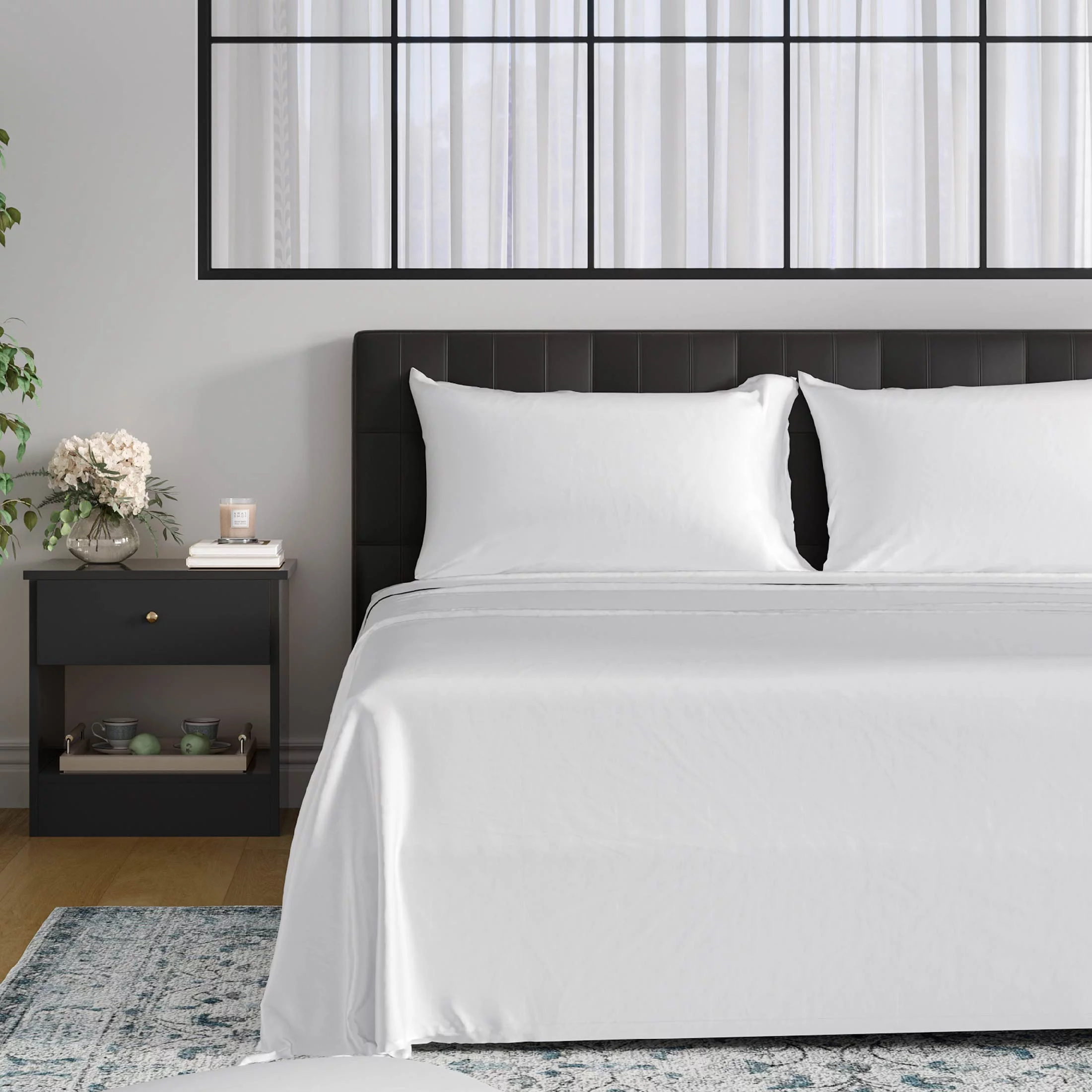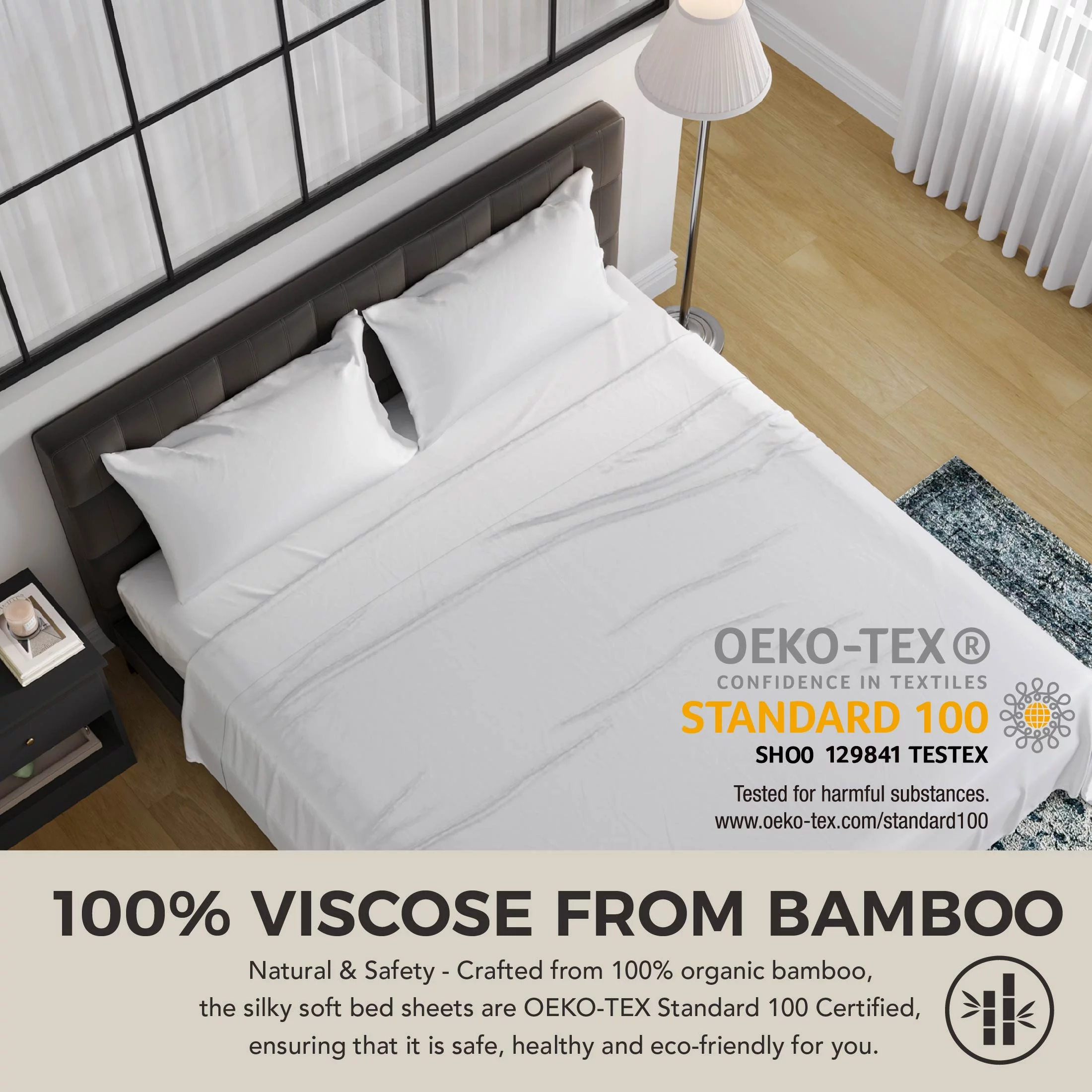 EGO 100% Viscose from Bamboo Bed Sheets Set, Wrinkle Resistant, Solid Sateen, Twin Size, White