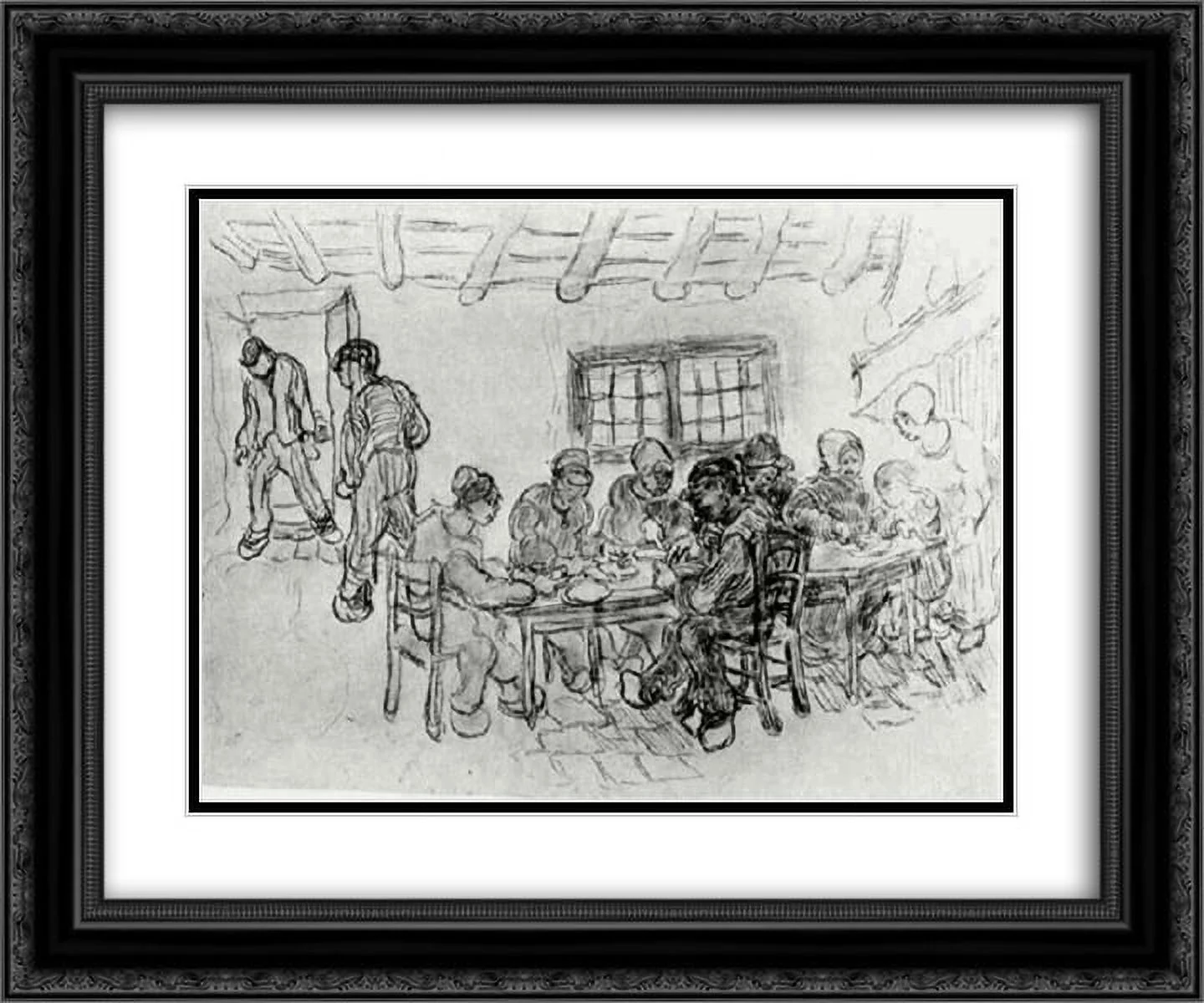 Vincent van Gogh 2x Matted 24x20 Black Ornate Framed Art Print 'Sheet with Two Groups of Peasants at a Meal'
