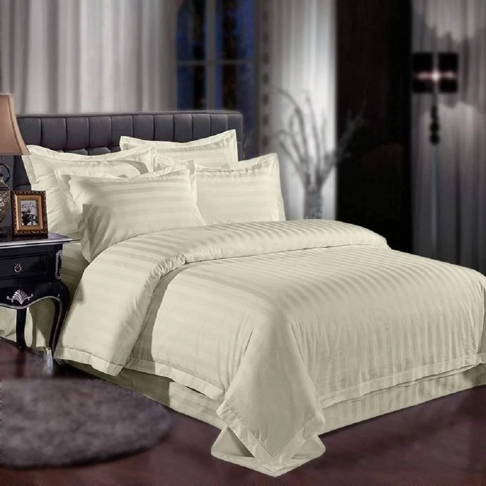 1000 Thread Count 4 Piece Quality Sheet Set 15 Inch Deep Pocket 100% Egyptian Cotton Color Ivory Stripe Size Twin