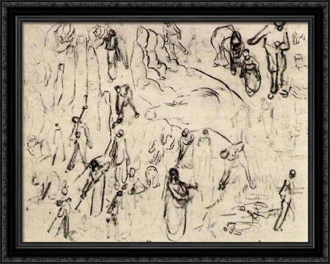 Sheet with Figures and Hands 36x28 Large Black Ornate Wood Framed Canvas Art by Vincent van Gogh