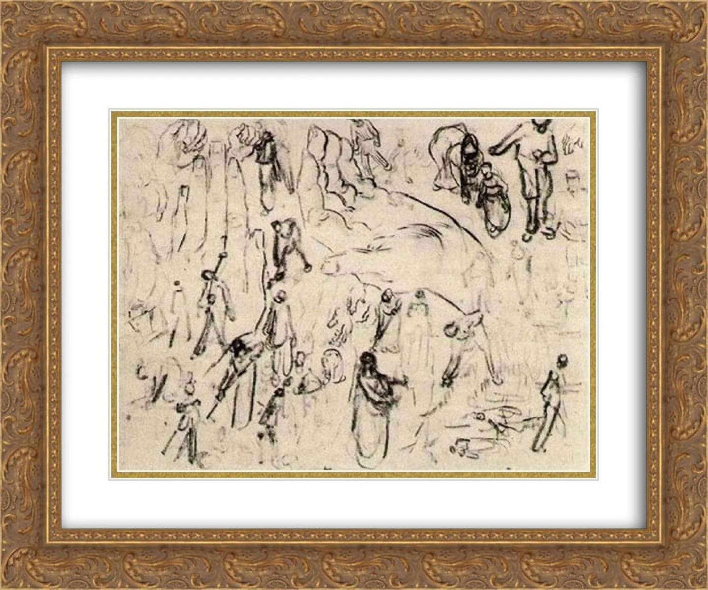 Vincent van Gogh 2x Matted 24x20 Gold Ornate Framed Art Print 'Sheet with Numerous Figure Sketches'