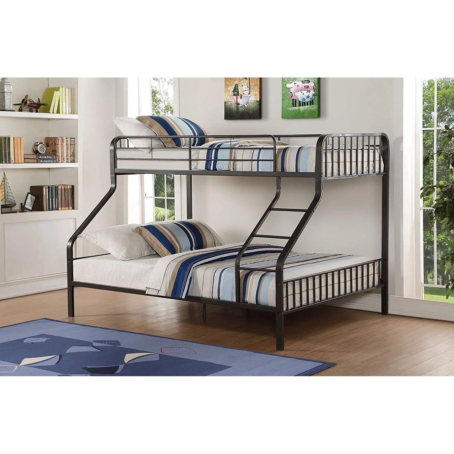 HomeStock Country Cottage Twin Xl/Queen Bunk Bed, Gunmetal (1Set/2Ctn)