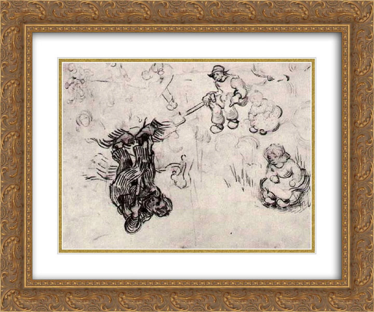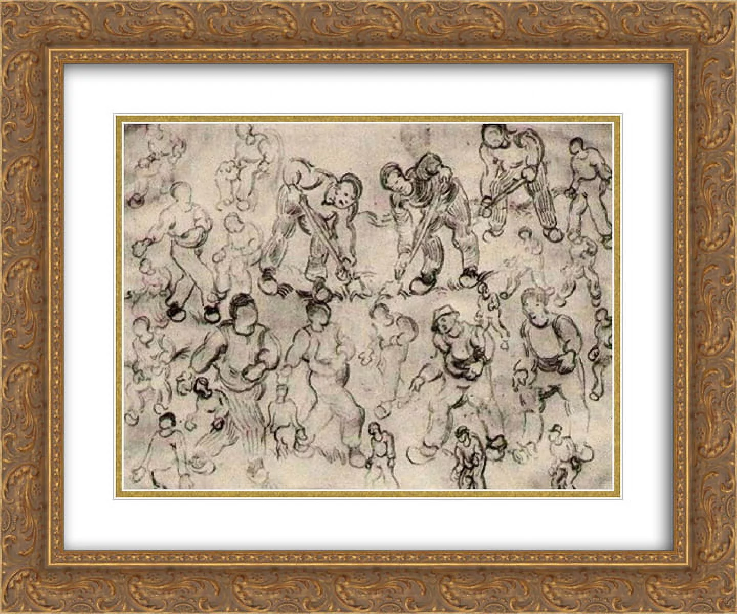 Vincent van Gogh 2x Matted 24x20 Gold Ornate Framed Art Print 'Sheet with Sketches of a Digger and Other Figures'