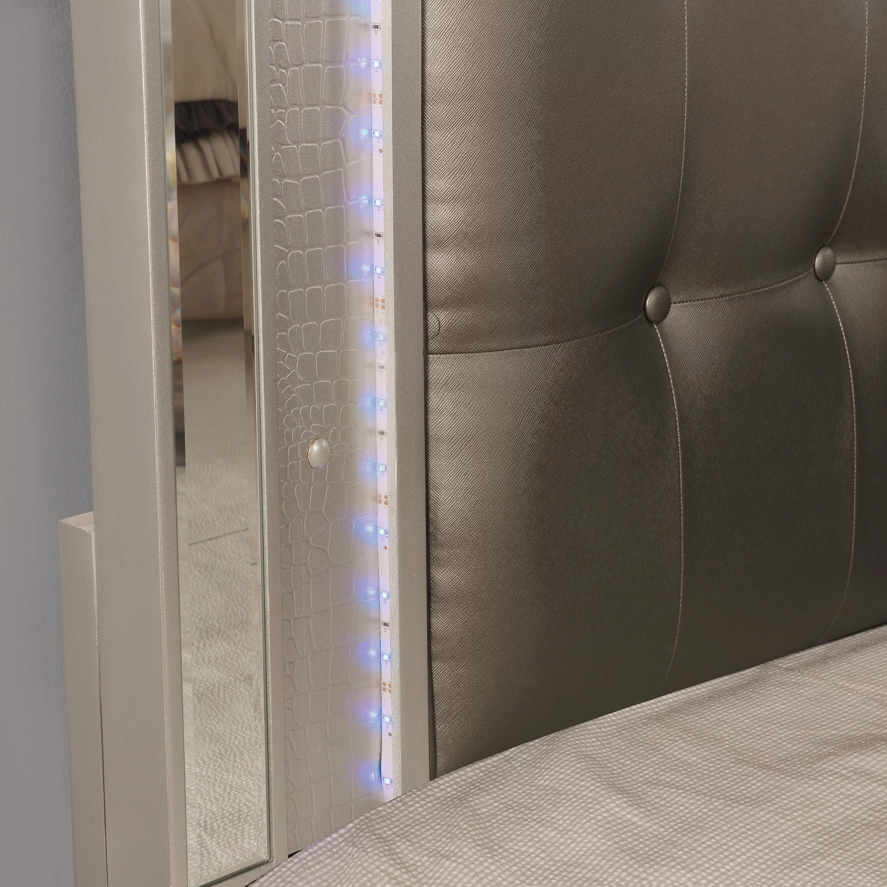 Furniture of America Xulu Contemporary Wood Queen Bed with LED in Silver