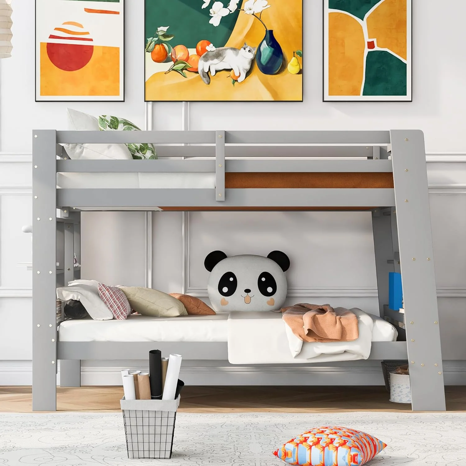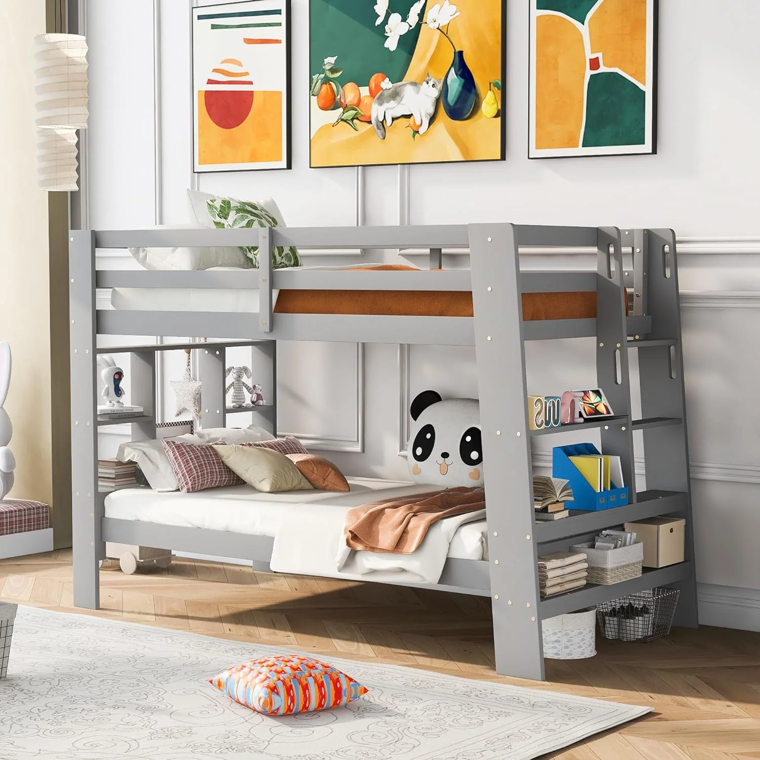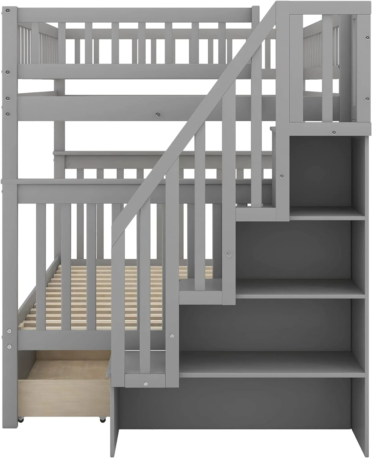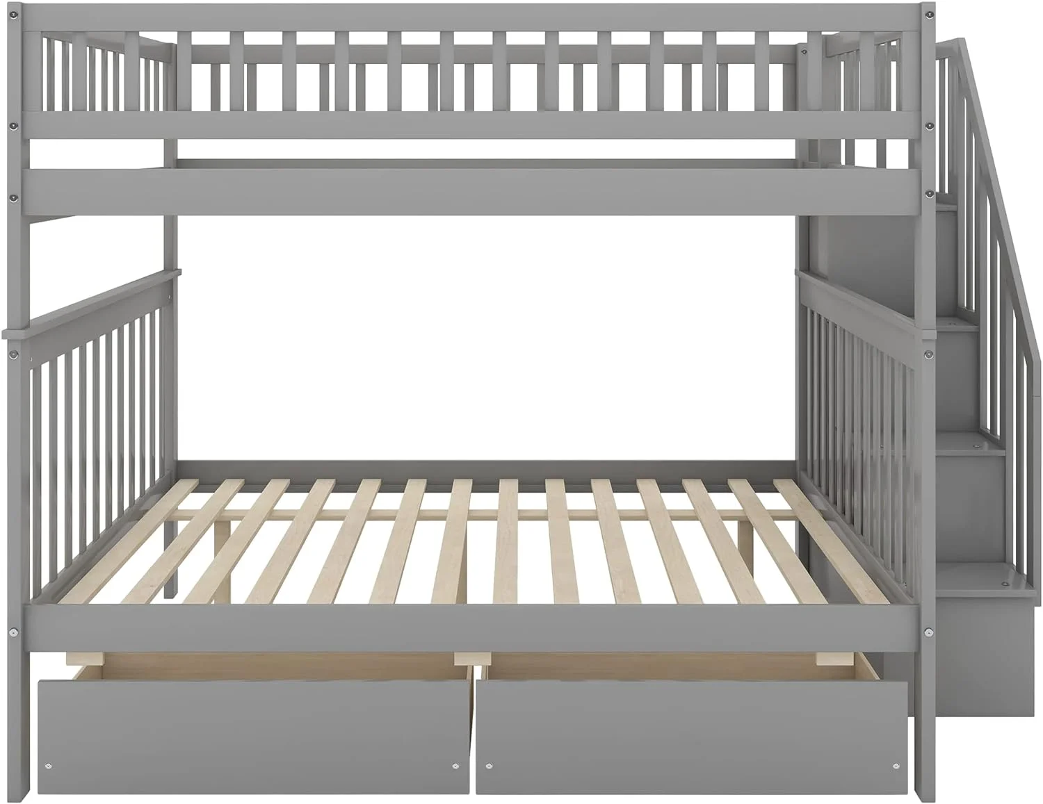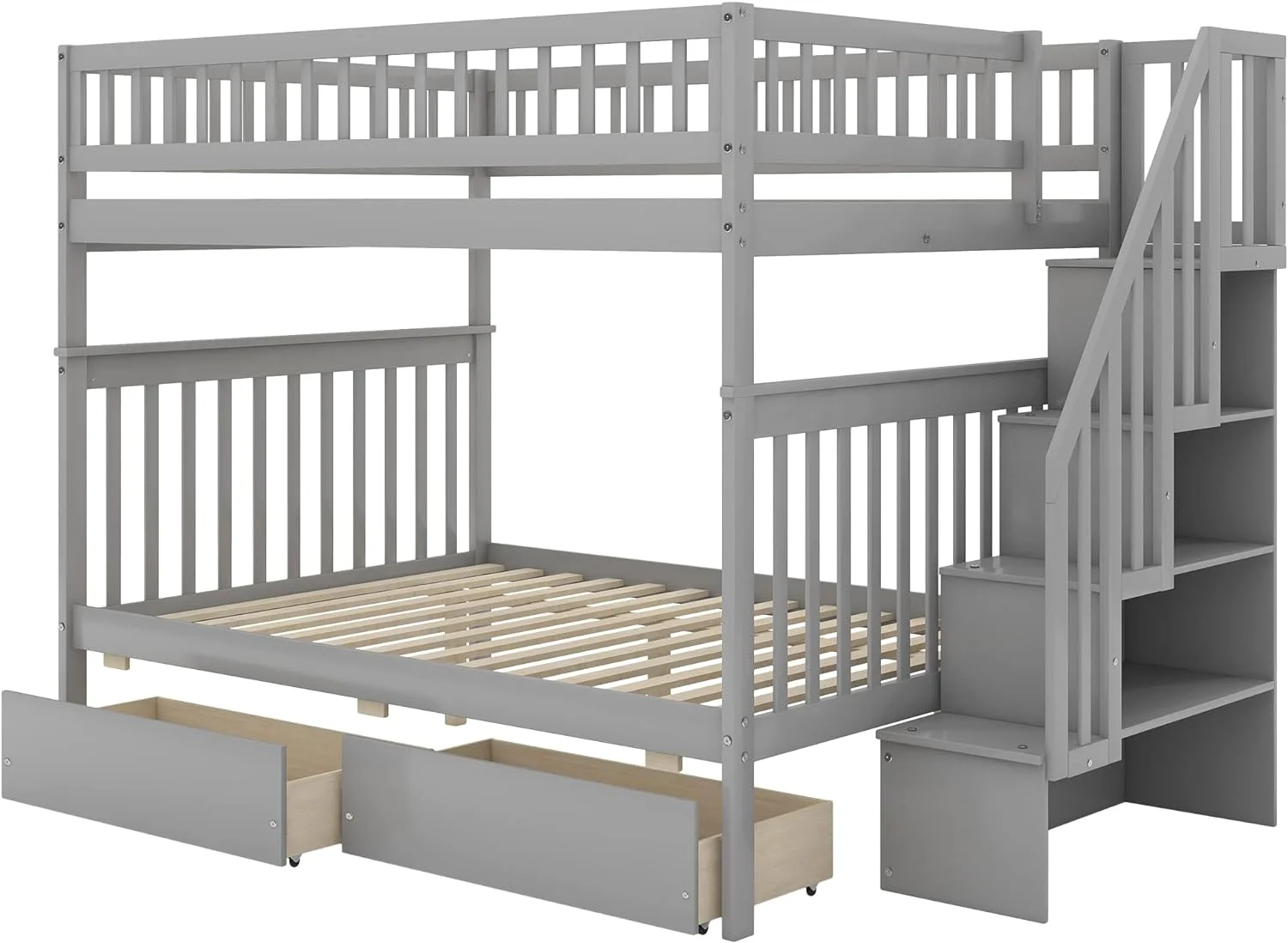 Over Full Bunk Bed With Slide, Solid Wood Bunk Bed Frame With Storage Shelves And 2 Drawers, For Kids Teens (White)