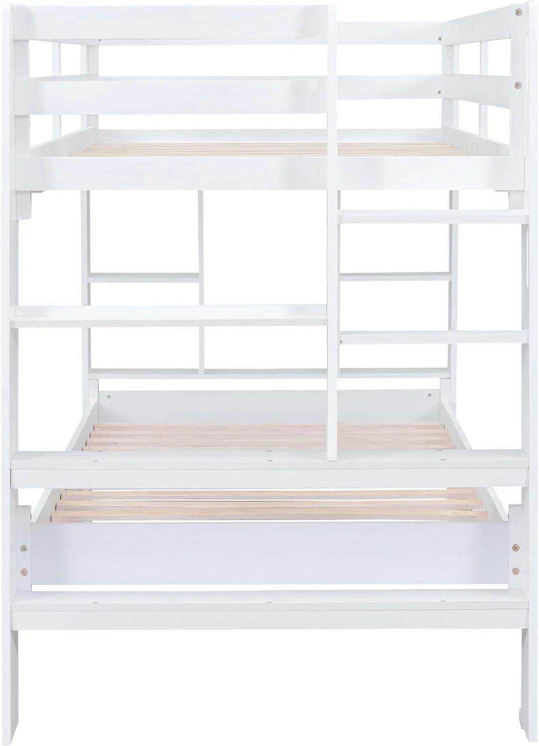 Over Bunk Bed With Shelves And Built-In Ladder,Safety Guardrail,White