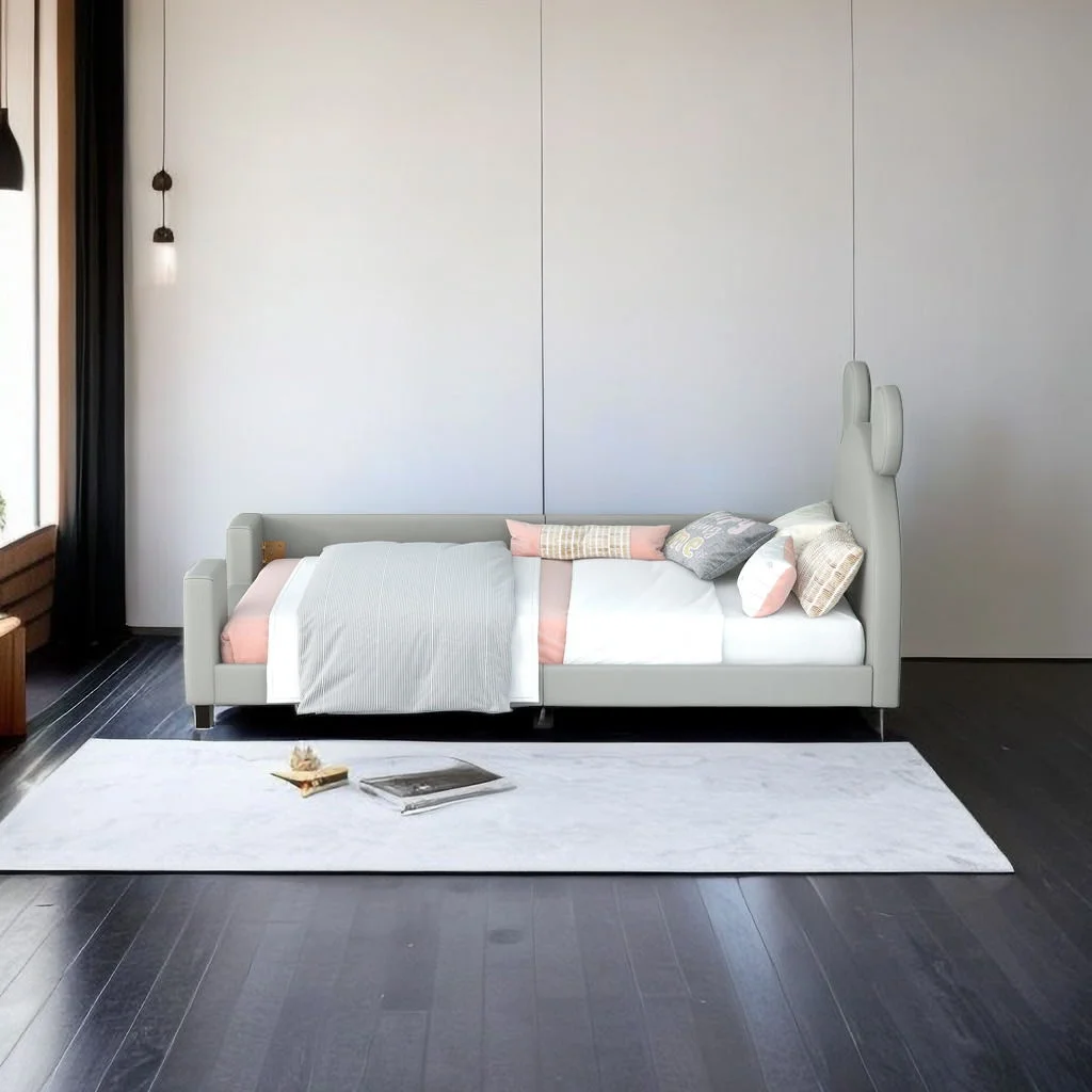 Bedroom furniture Gray Polyfiber Queen Size bed 1pc Bed Set Plywood HB FB Bedframe.