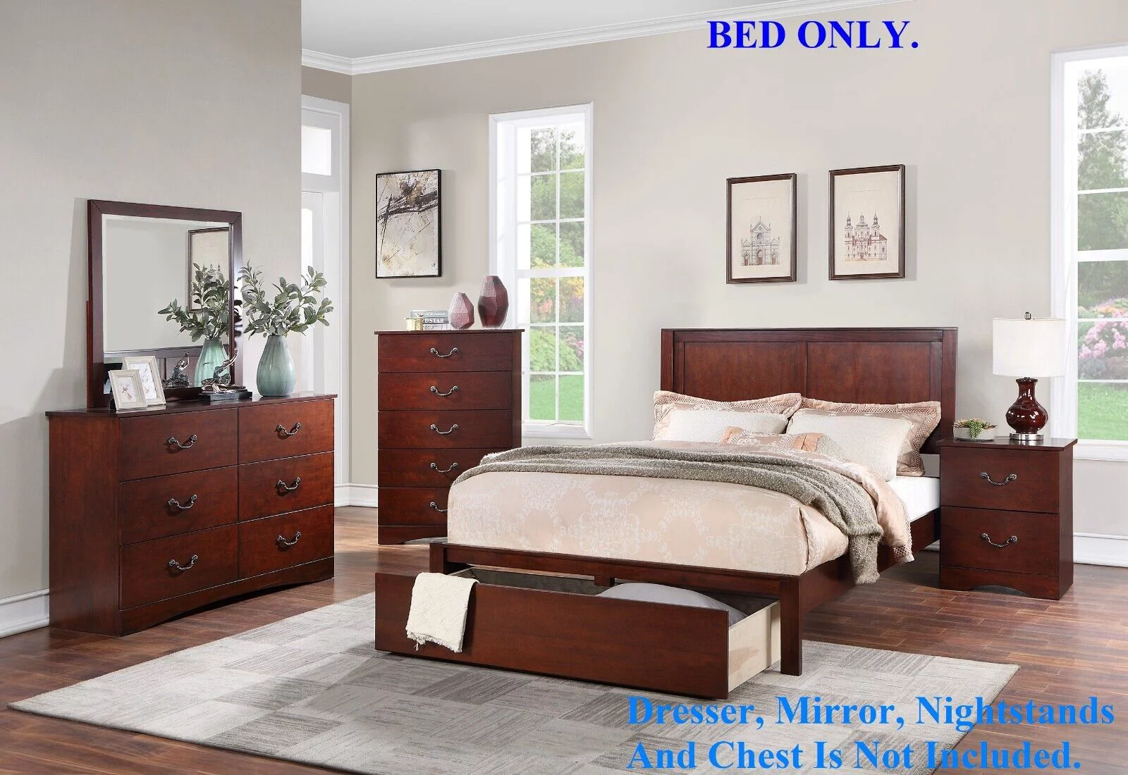 Transitional 1pc Queen Size Bed w Storage underbed Drawer Brown Finish Beautiful Bedframe Bedroom Furniture