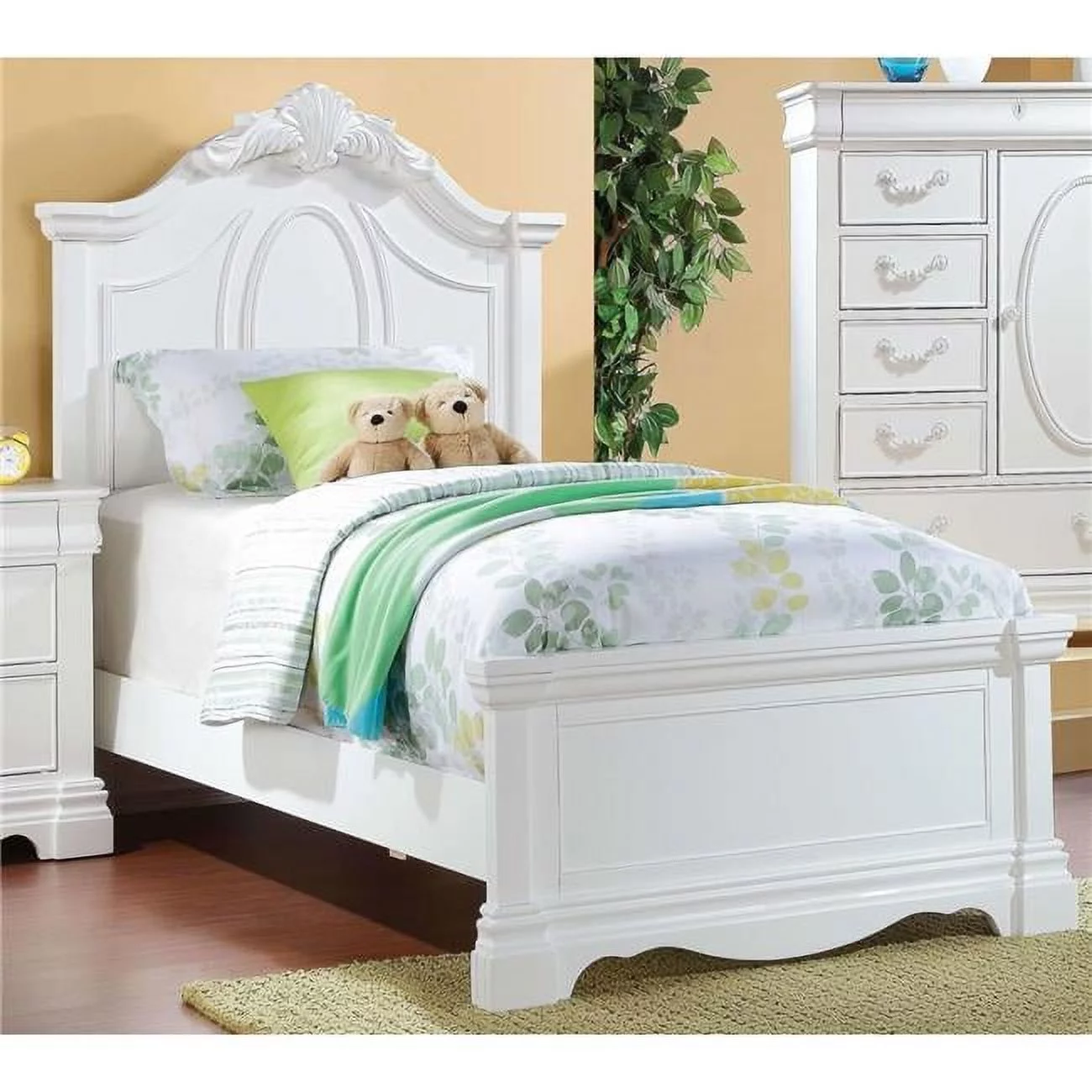Traditional Style Queen Size Bed 1pc Antique White Posts Design Bedframe Unique Pattern Beds