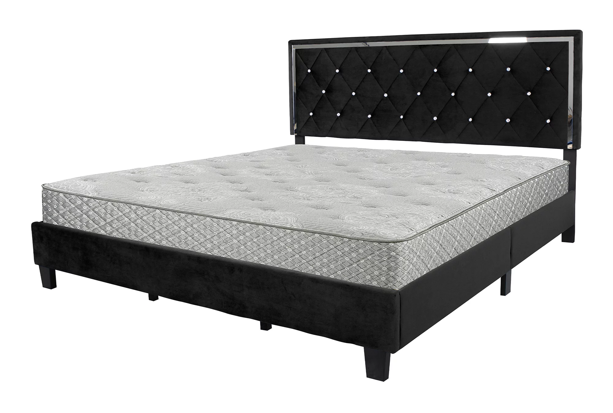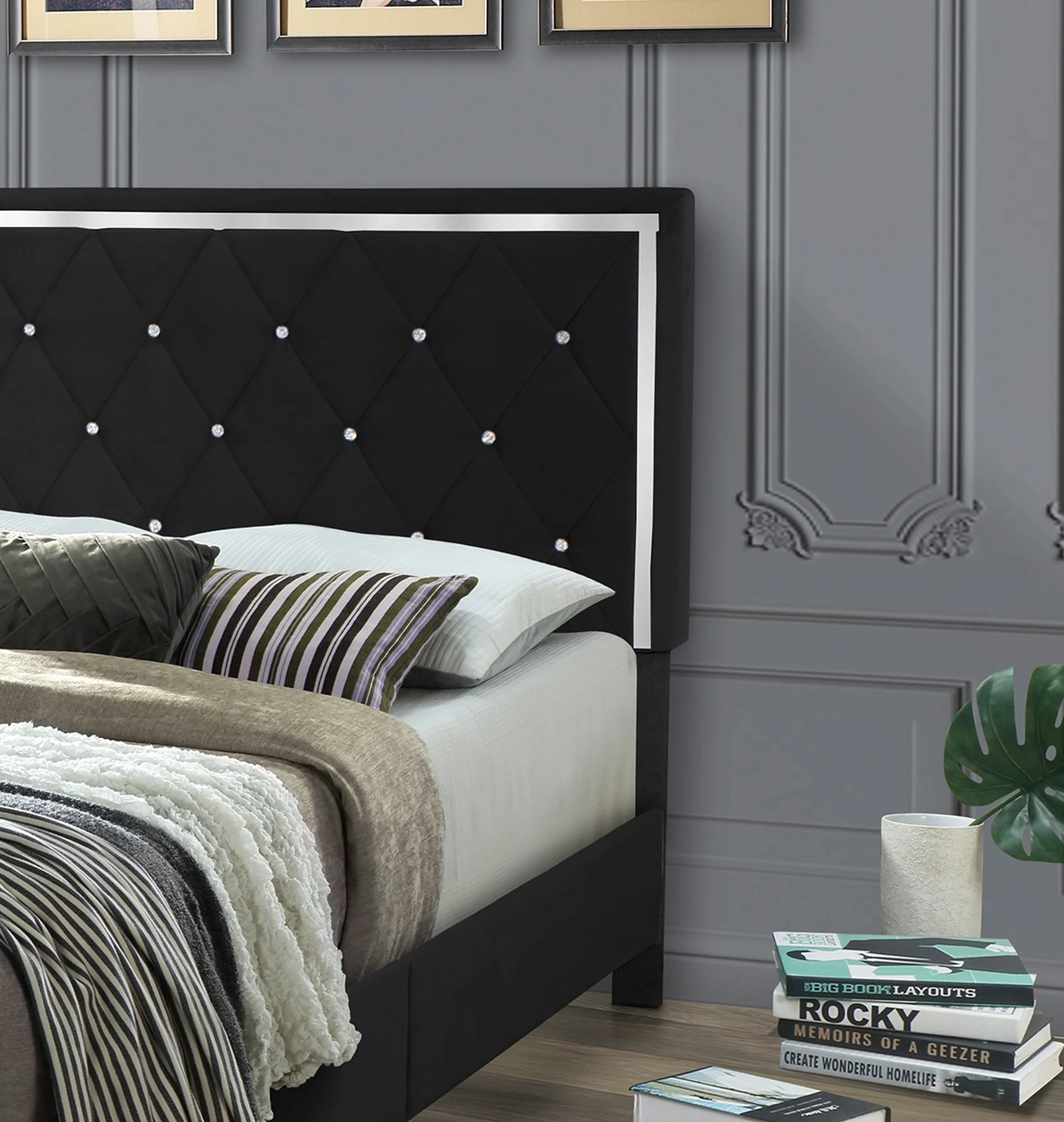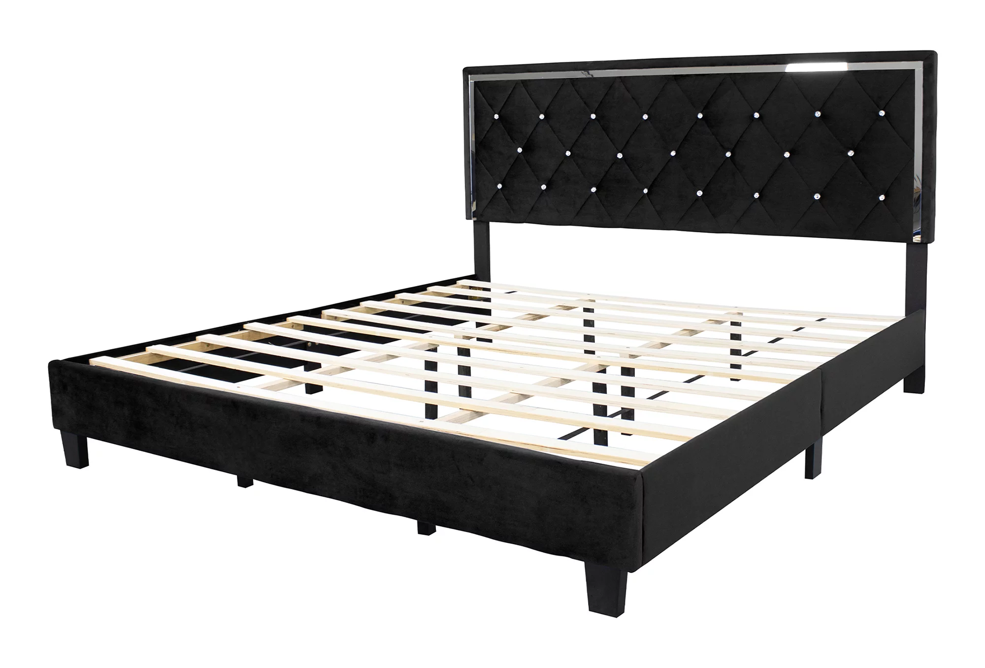 Home Bedroom Furniture Monica Velvet Upholstered King Platform Bed - Black