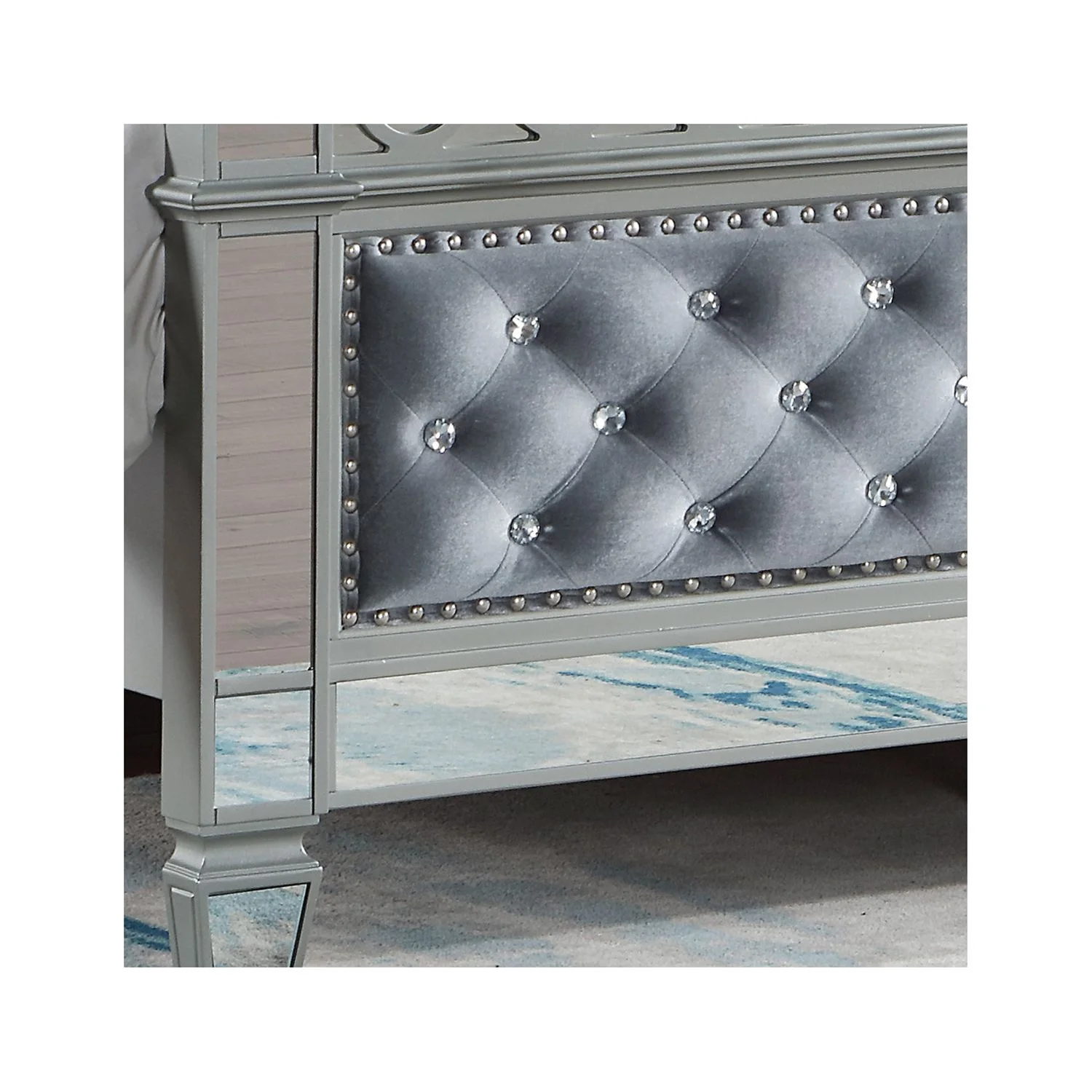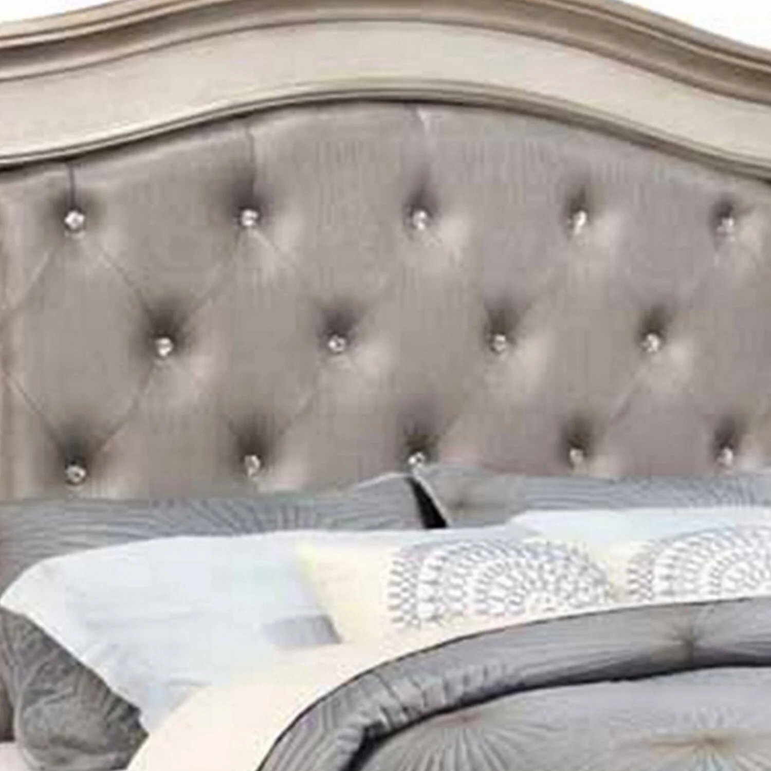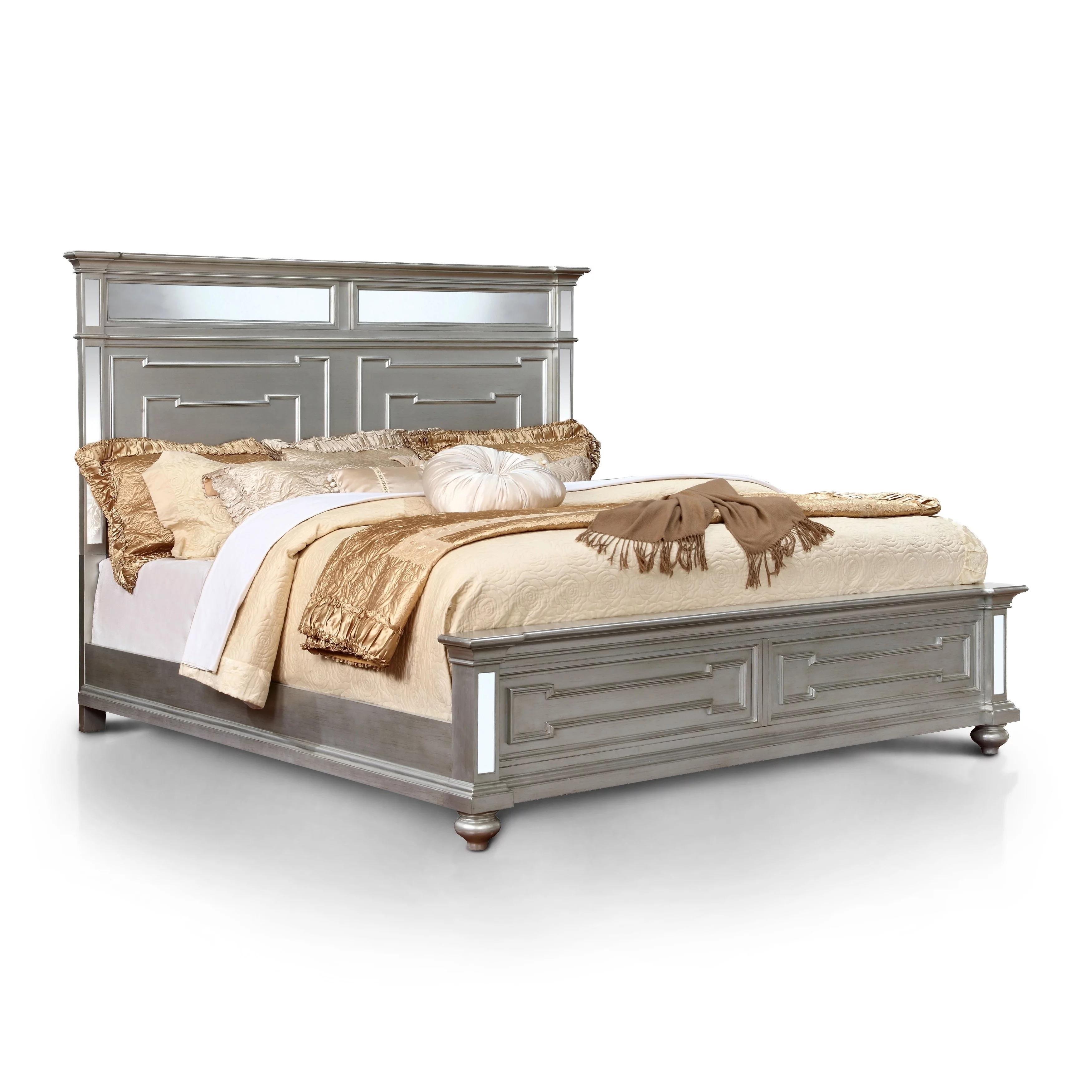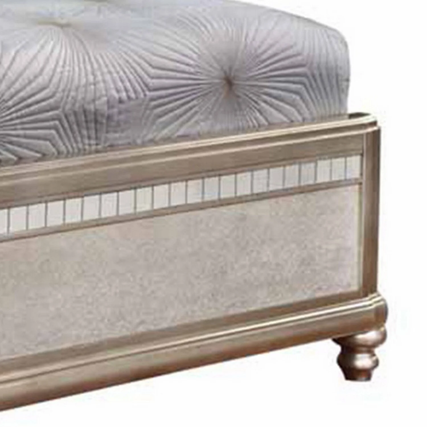 BenJara Deco Tufted King Bed in Metallic Finish, Mirrored Trim, Muted Gold, Silver