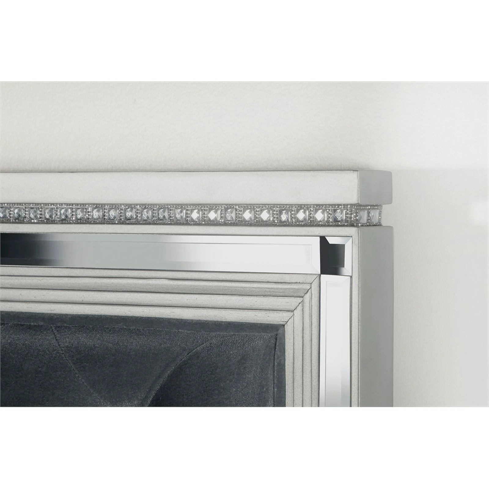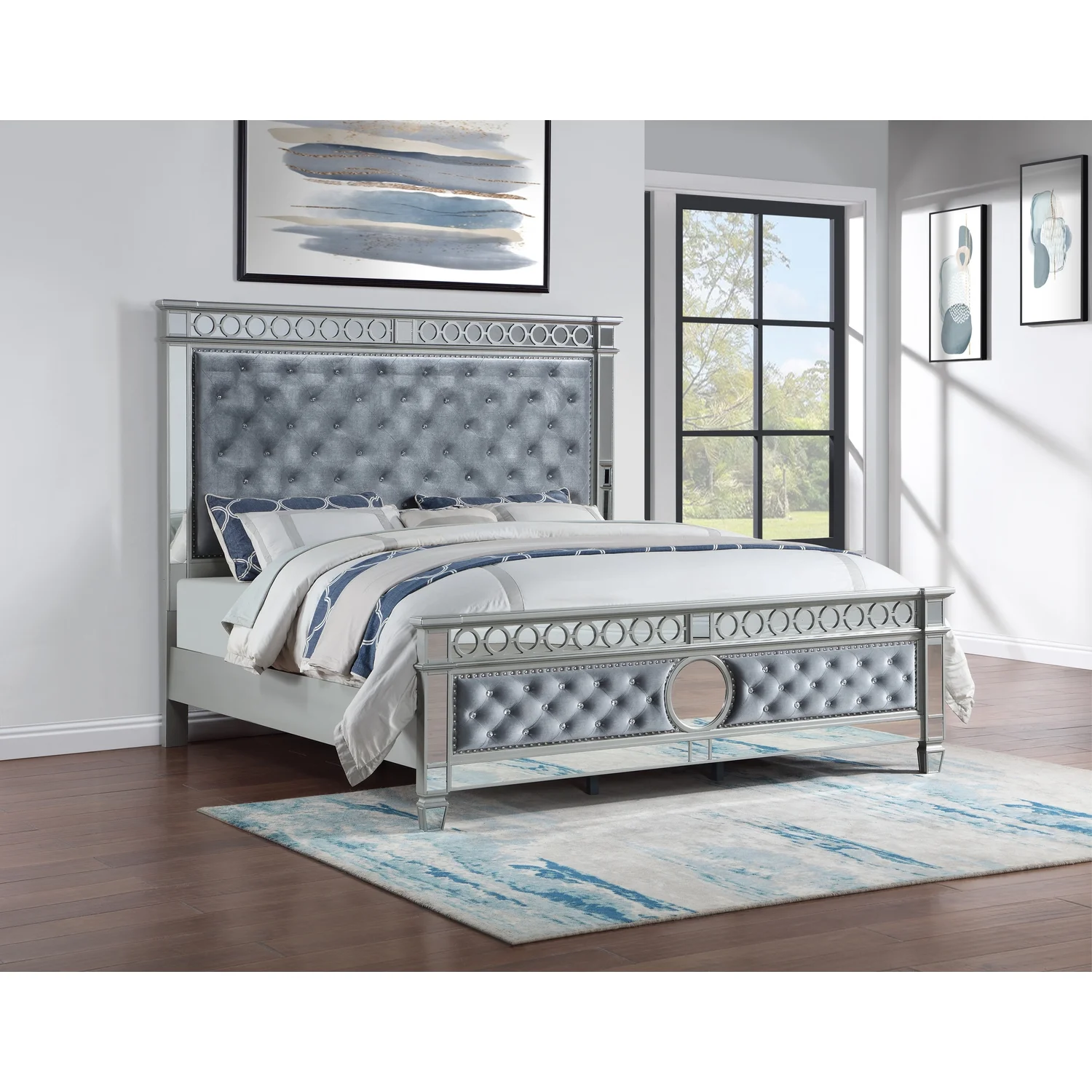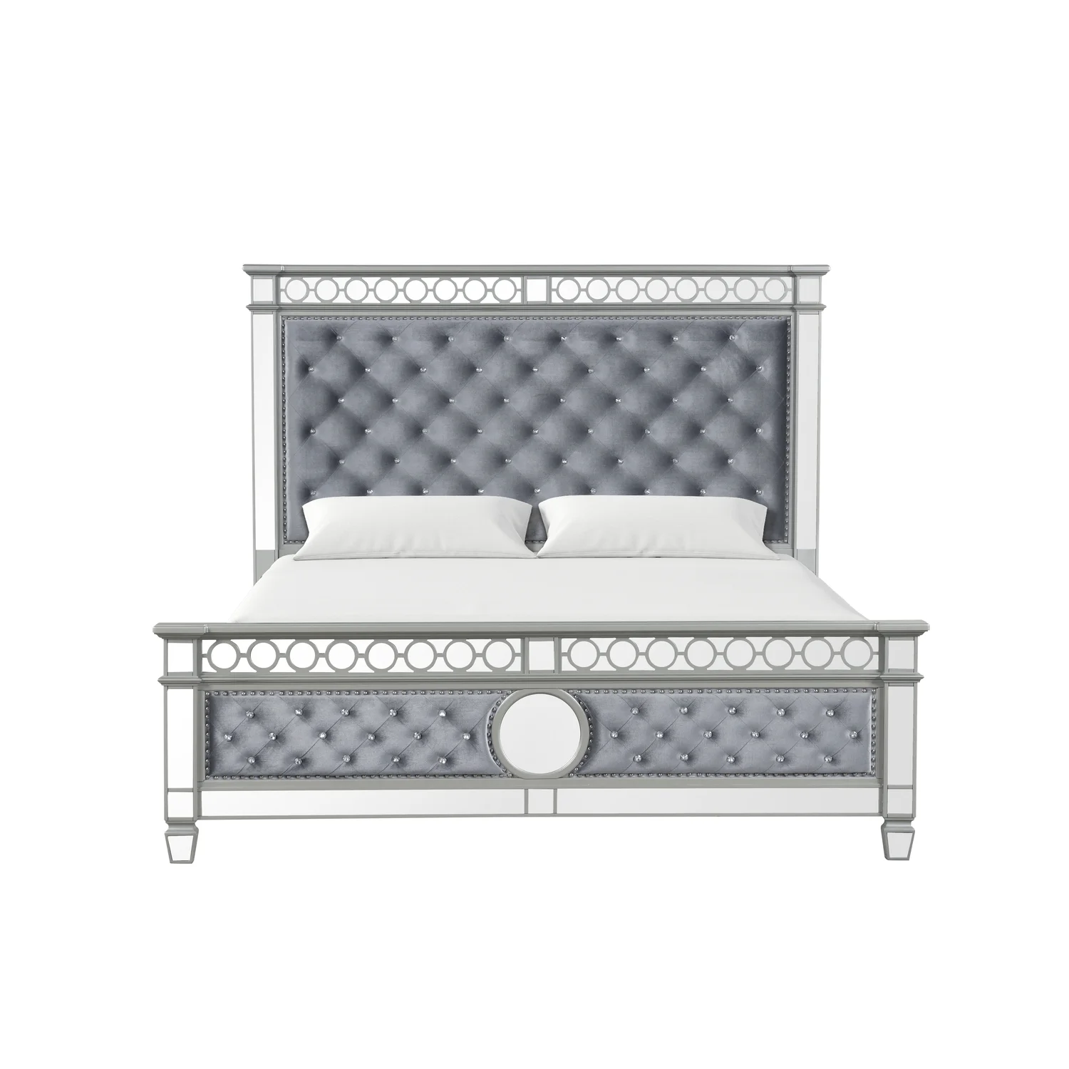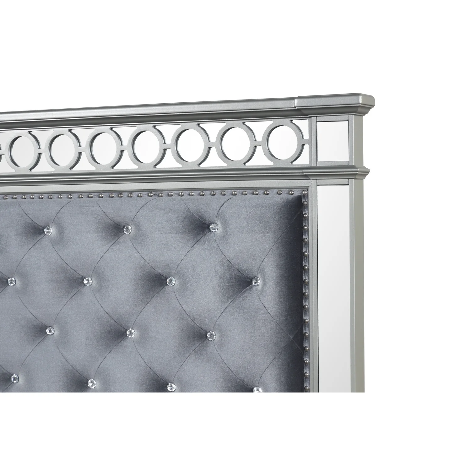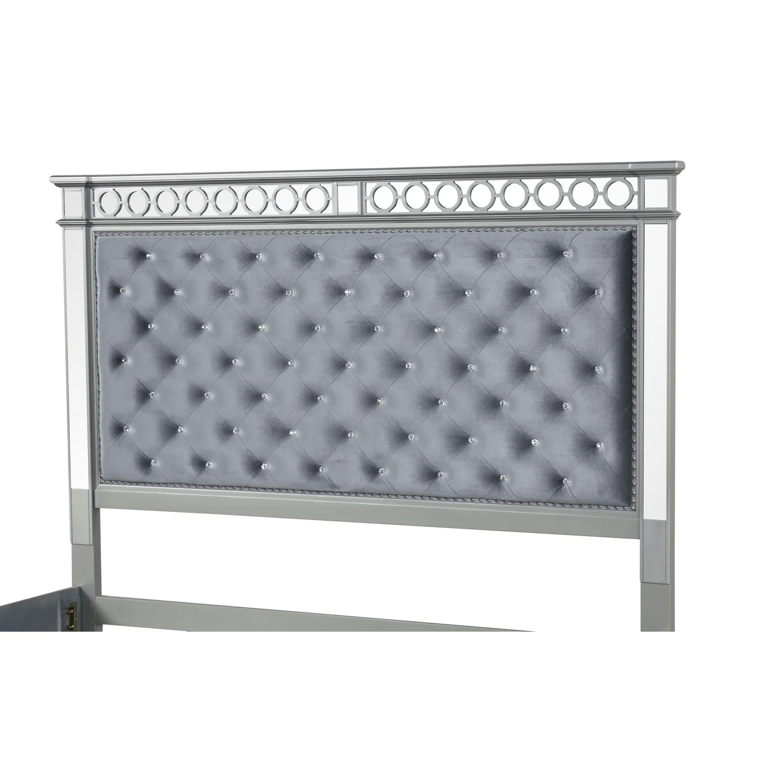 BenJara Deco Tufted King Bed in Metallic Finish, Mirrored Trim, Muted Gold, Silver