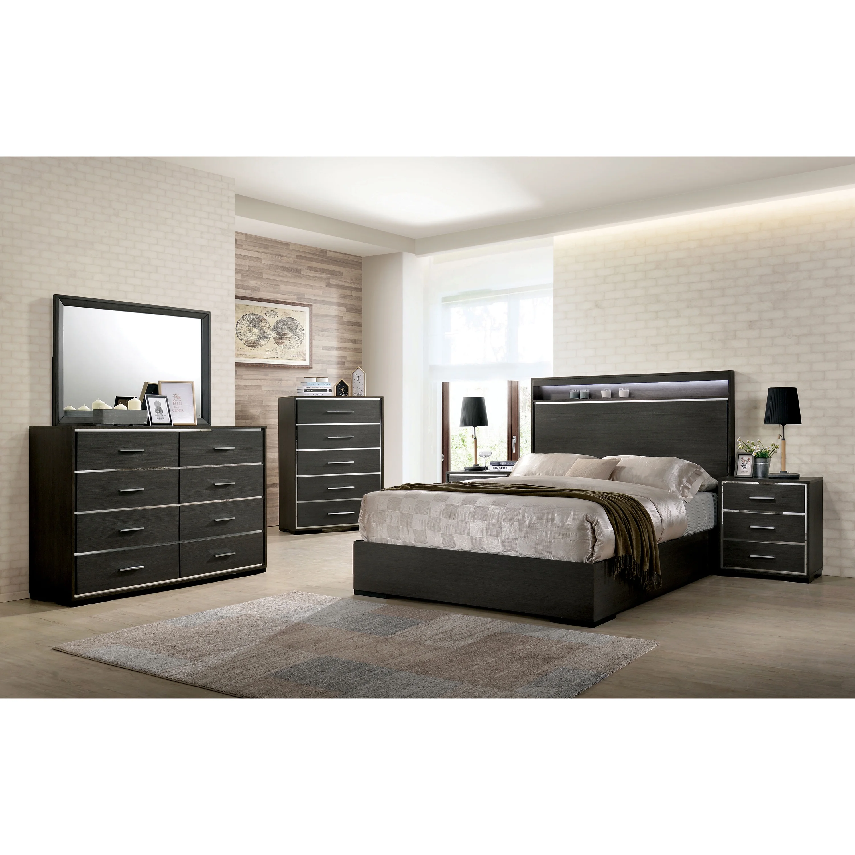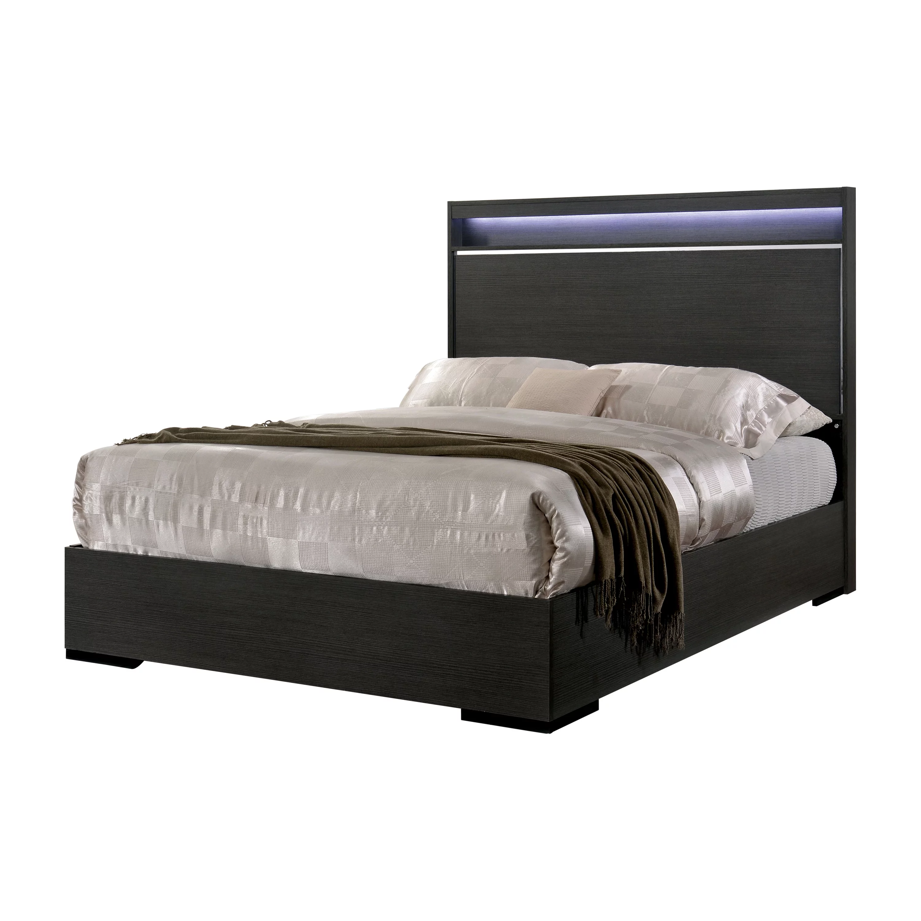 Gray Finish L.E.D Lights Queen Size Platform Bedroom Set 3Pcs Modern J&M Porto
