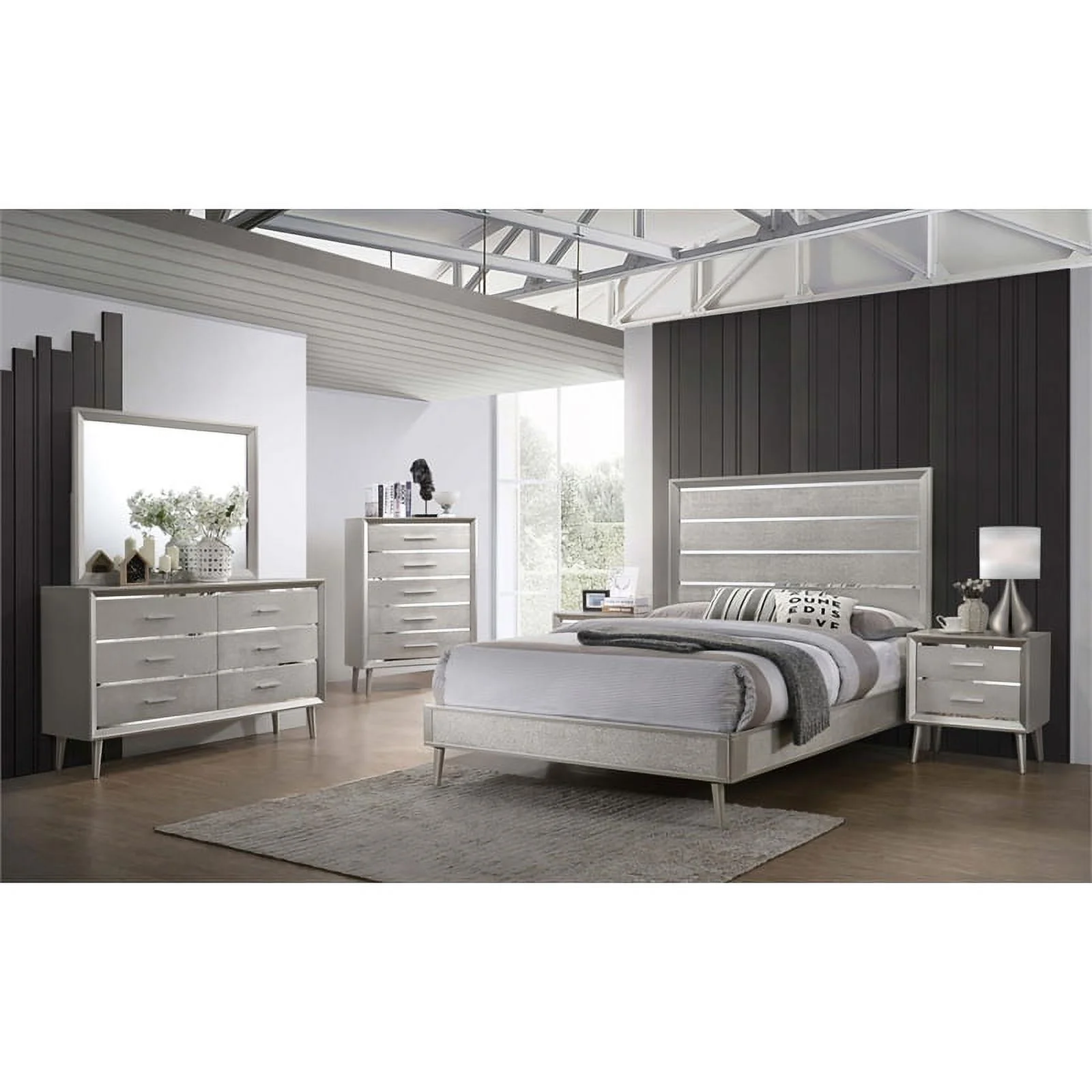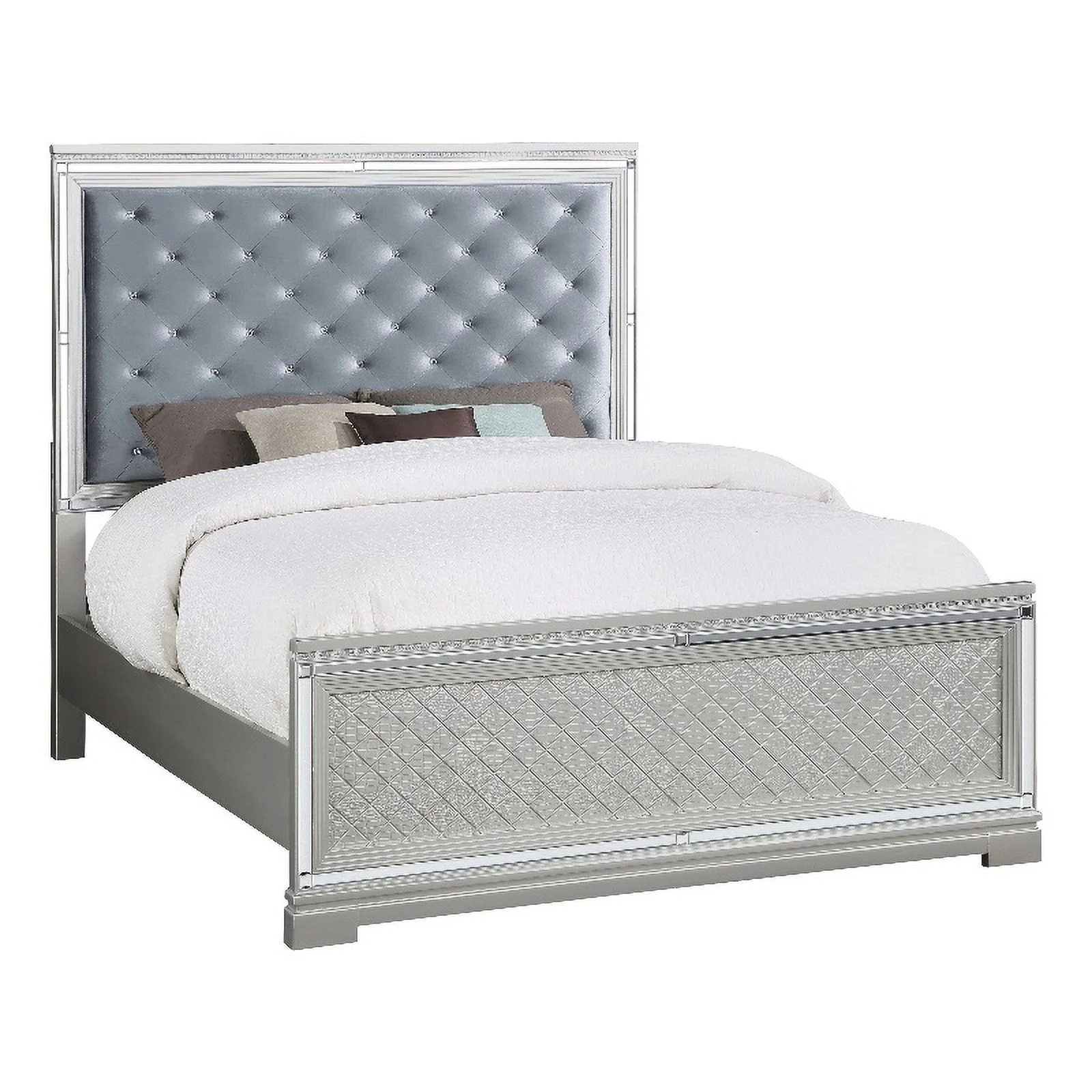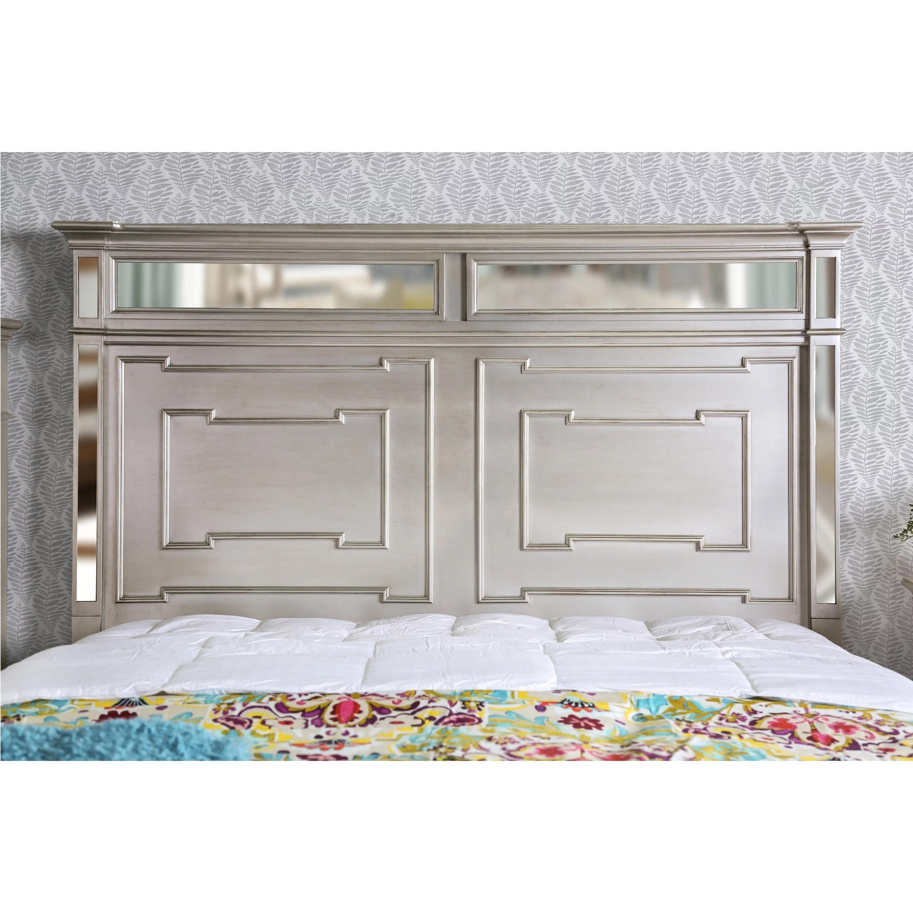 Pemberly Row Contemporary Wood Eastern King Panel Bed Metallic Silver