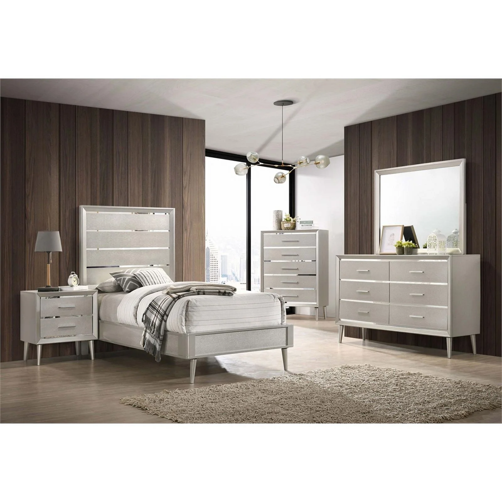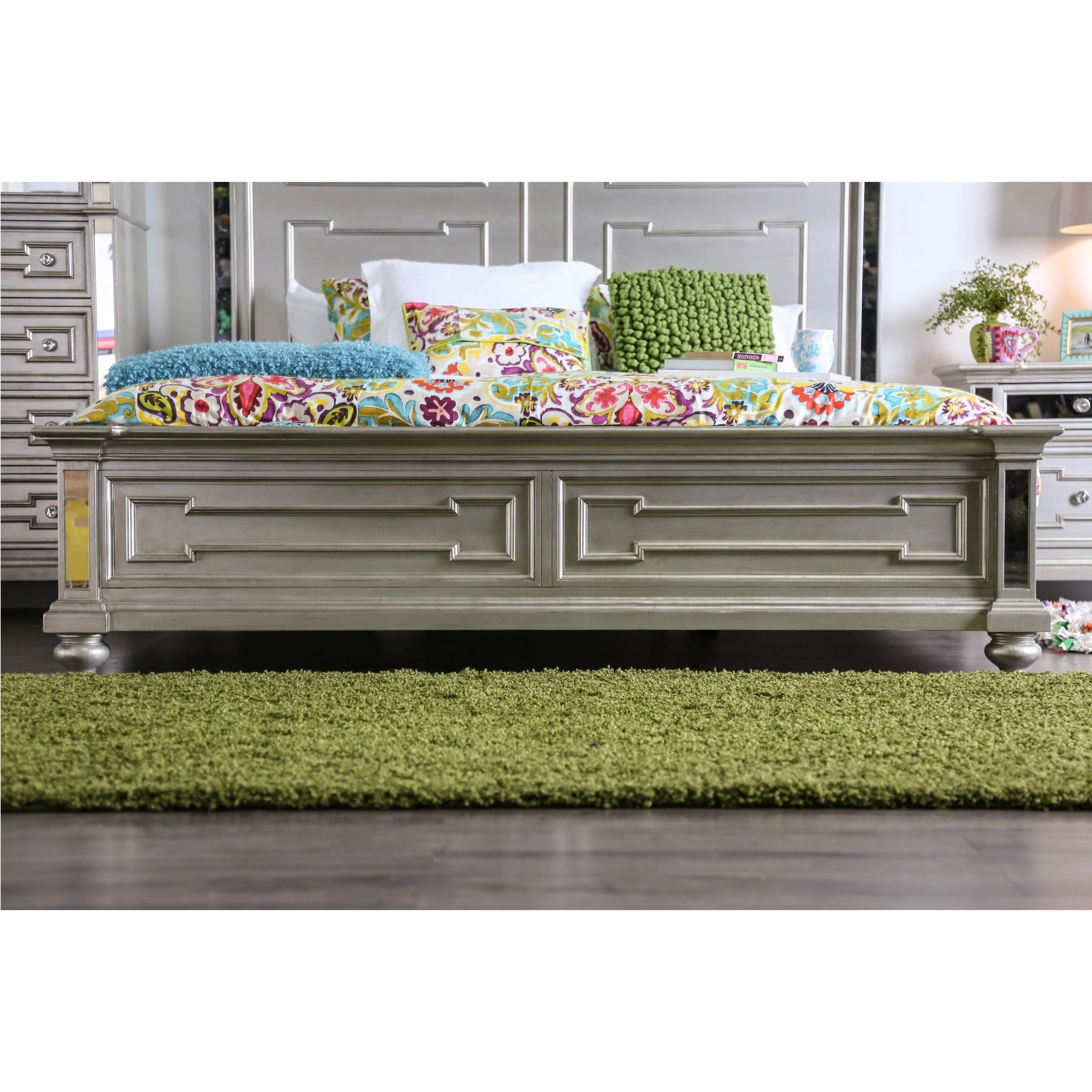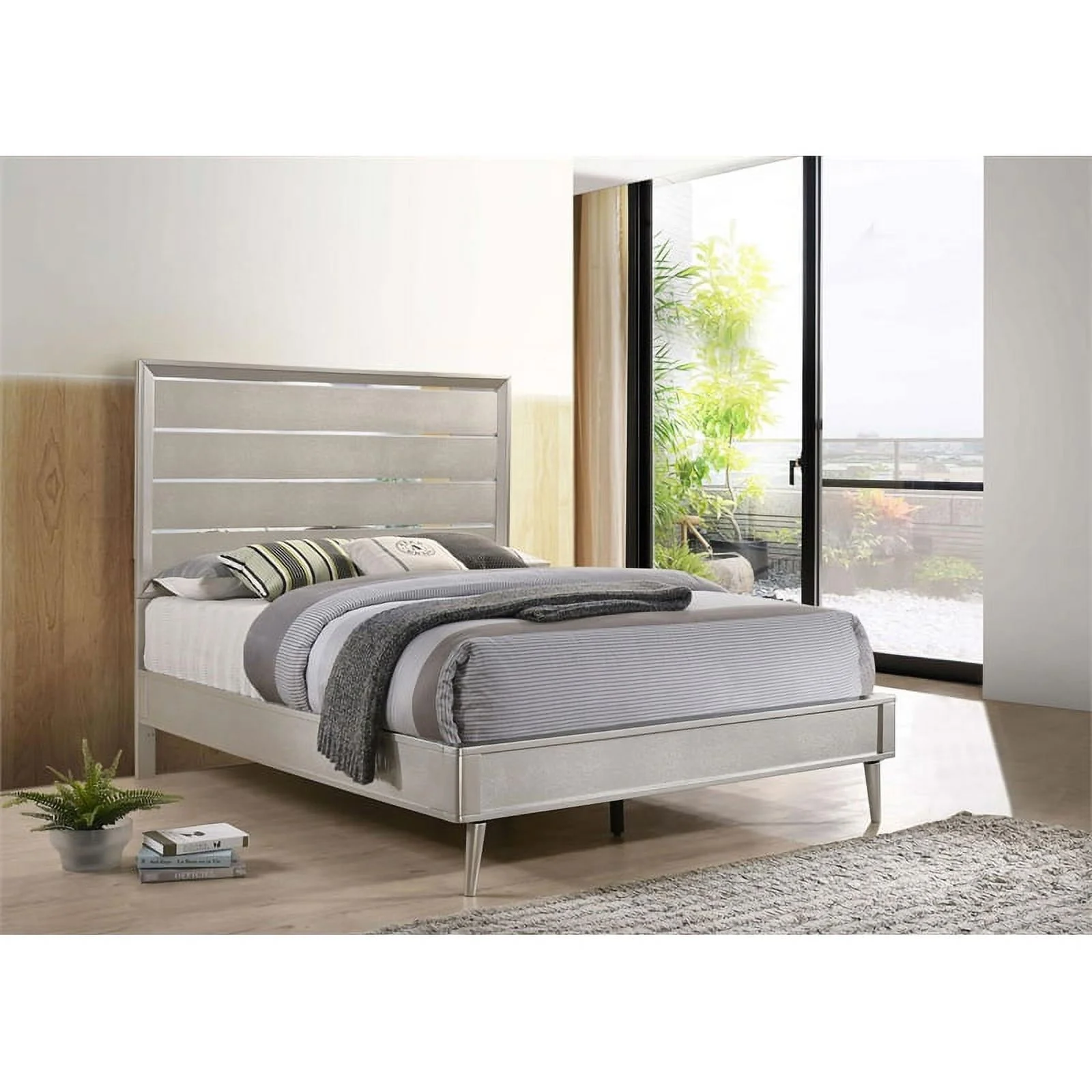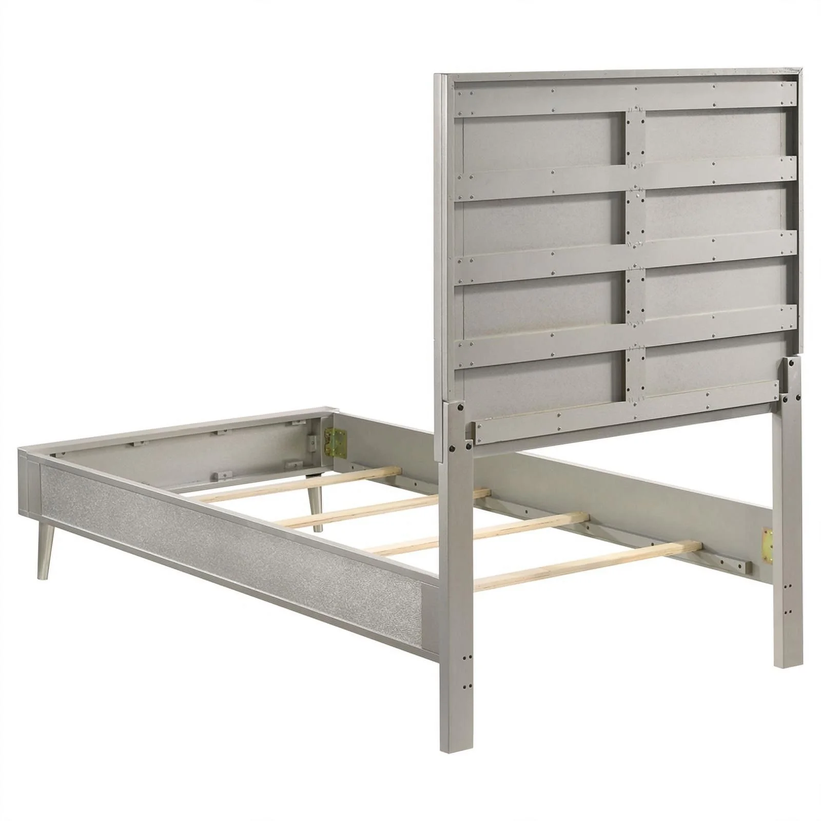 Pemberly Row Contemporary Wood Eastern King Panel Bed Metallic Silver