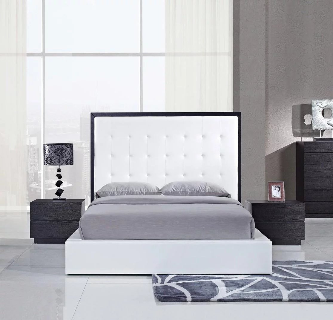 White/Wenge Finish Queen Bed & 2 Nightstands Contemporary Global United Metro