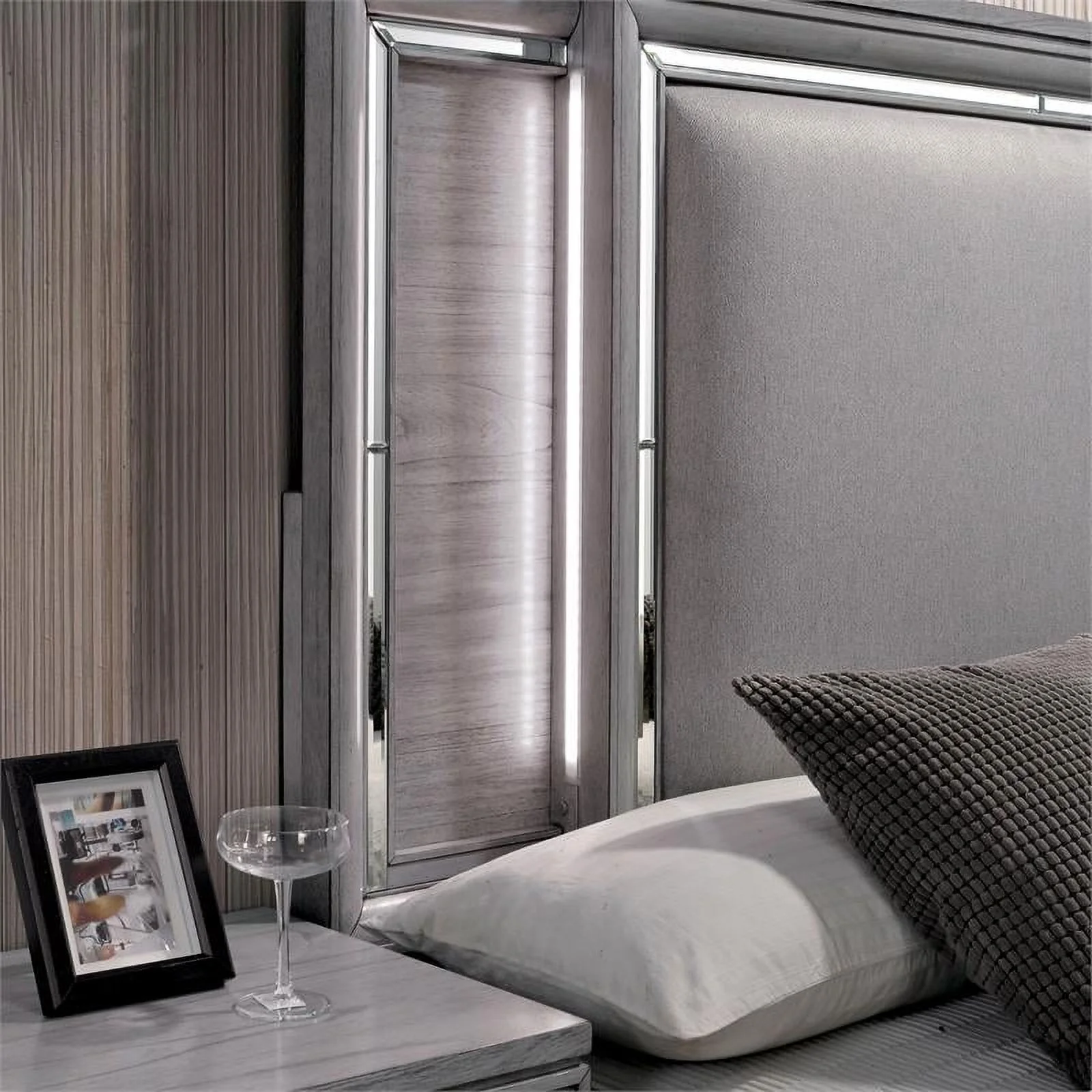 Furniture of America Hariston Wood Cal King Bed with LED Lights in Light Gray