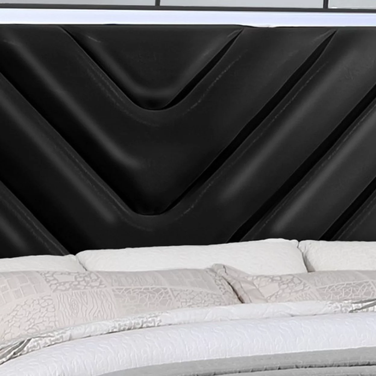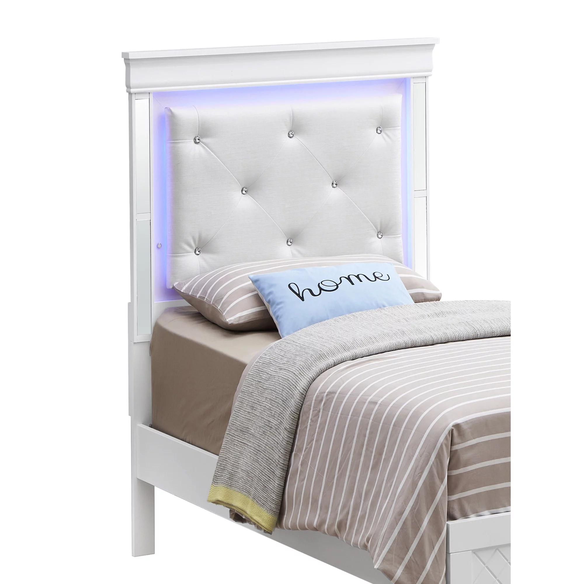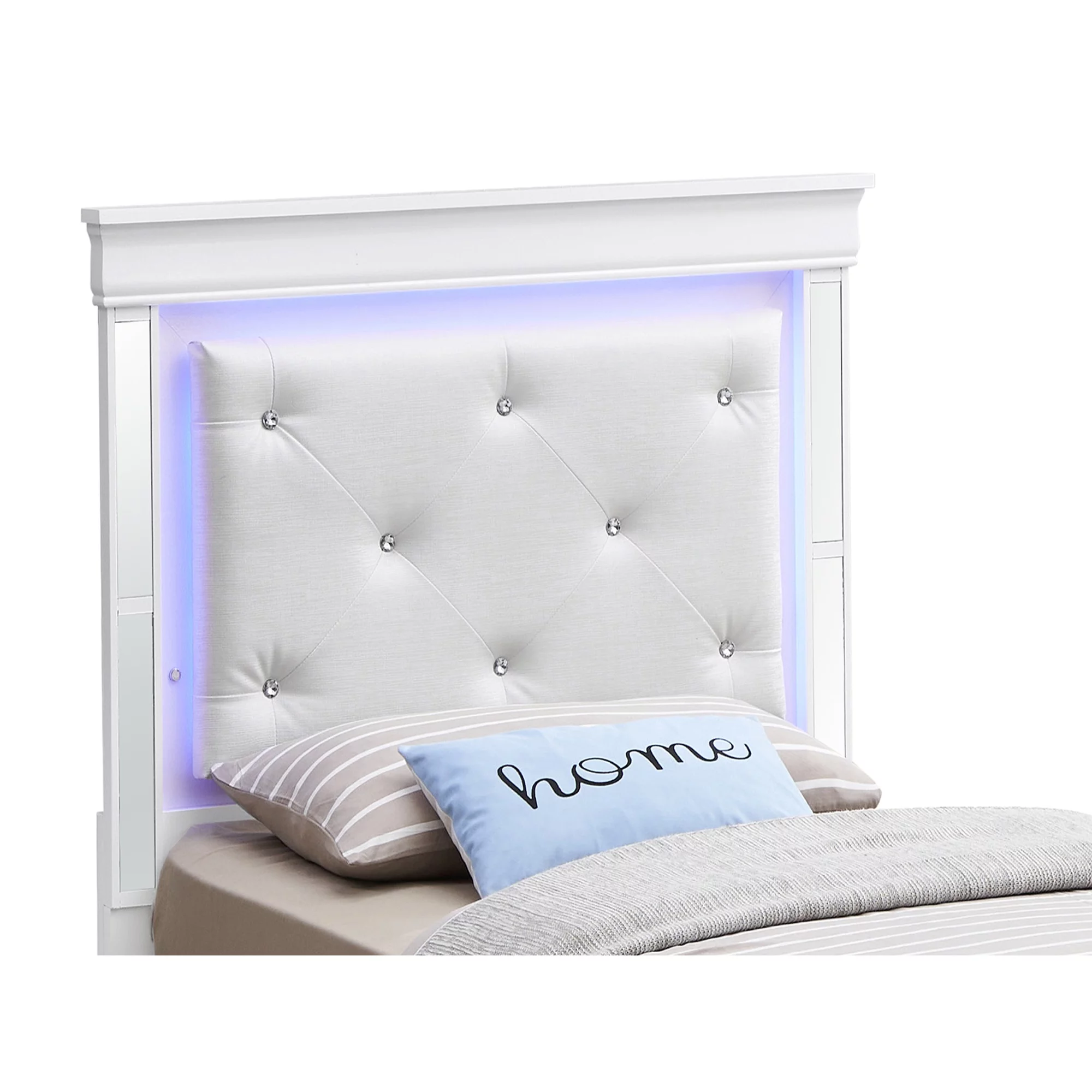 Contemporary Bellanova 1pc Queen Size Bed Bedroom Furniture Leatherette Tufted HB w LED Silver Texture Bedframe